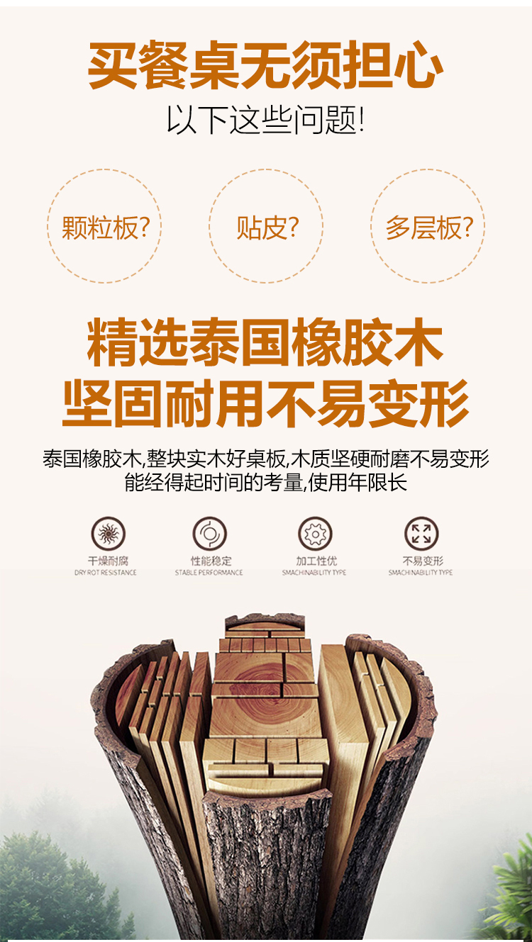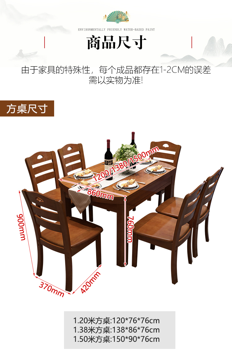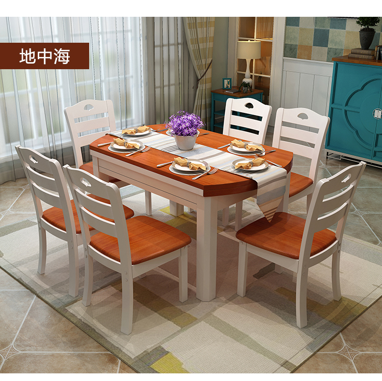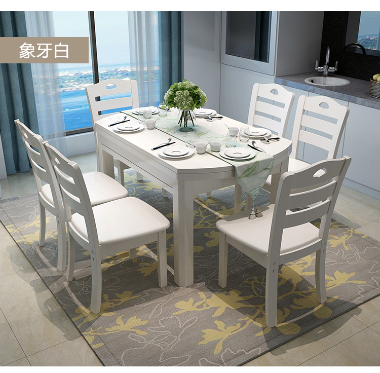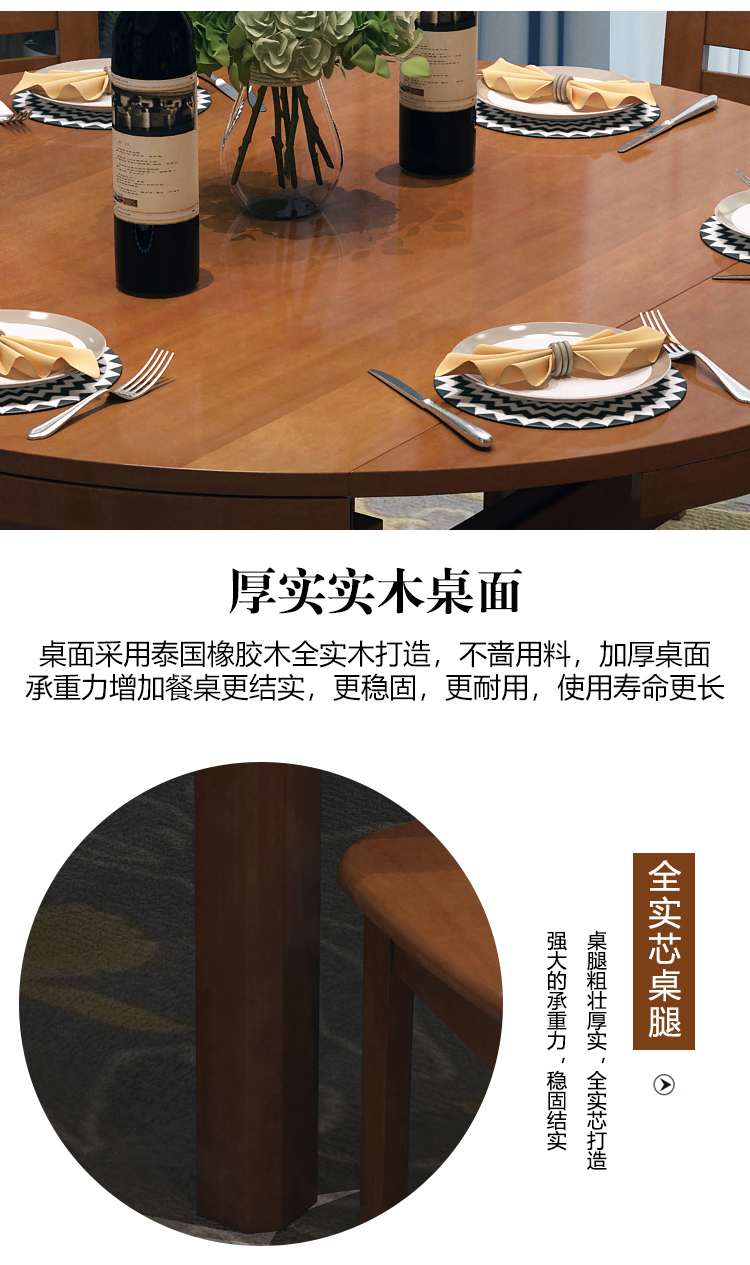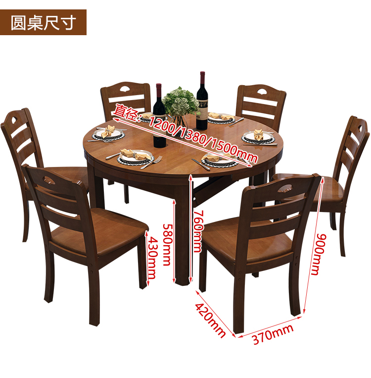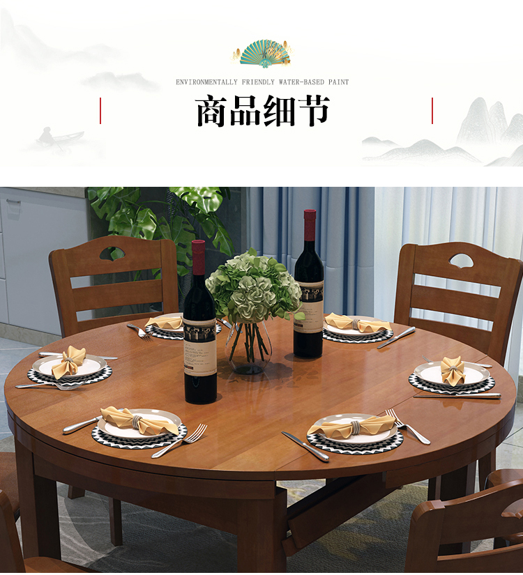 全实木餐桌椅组合家用可伸缩折叠桌饭桌方圆两用小户型可变圆桌子