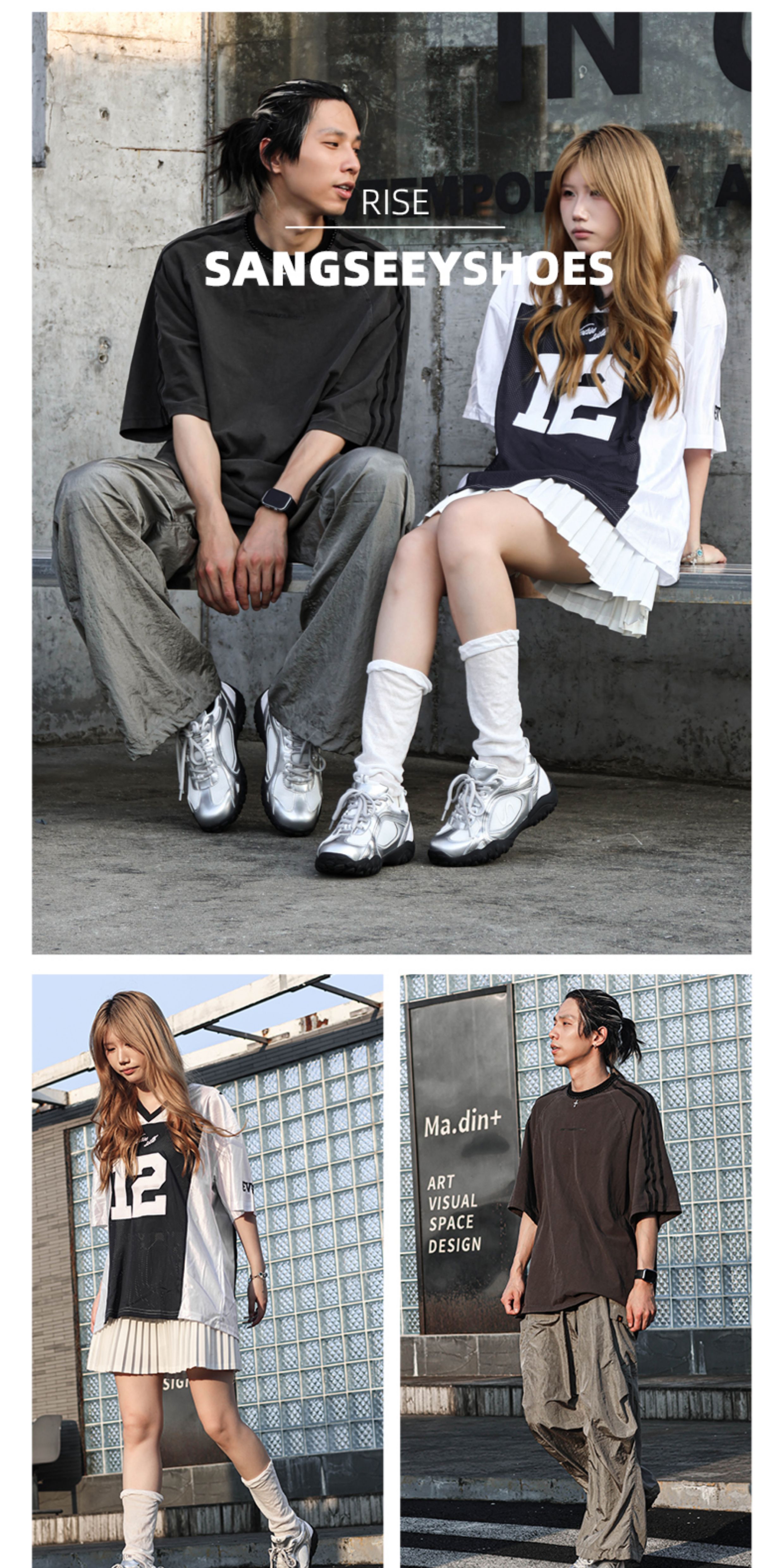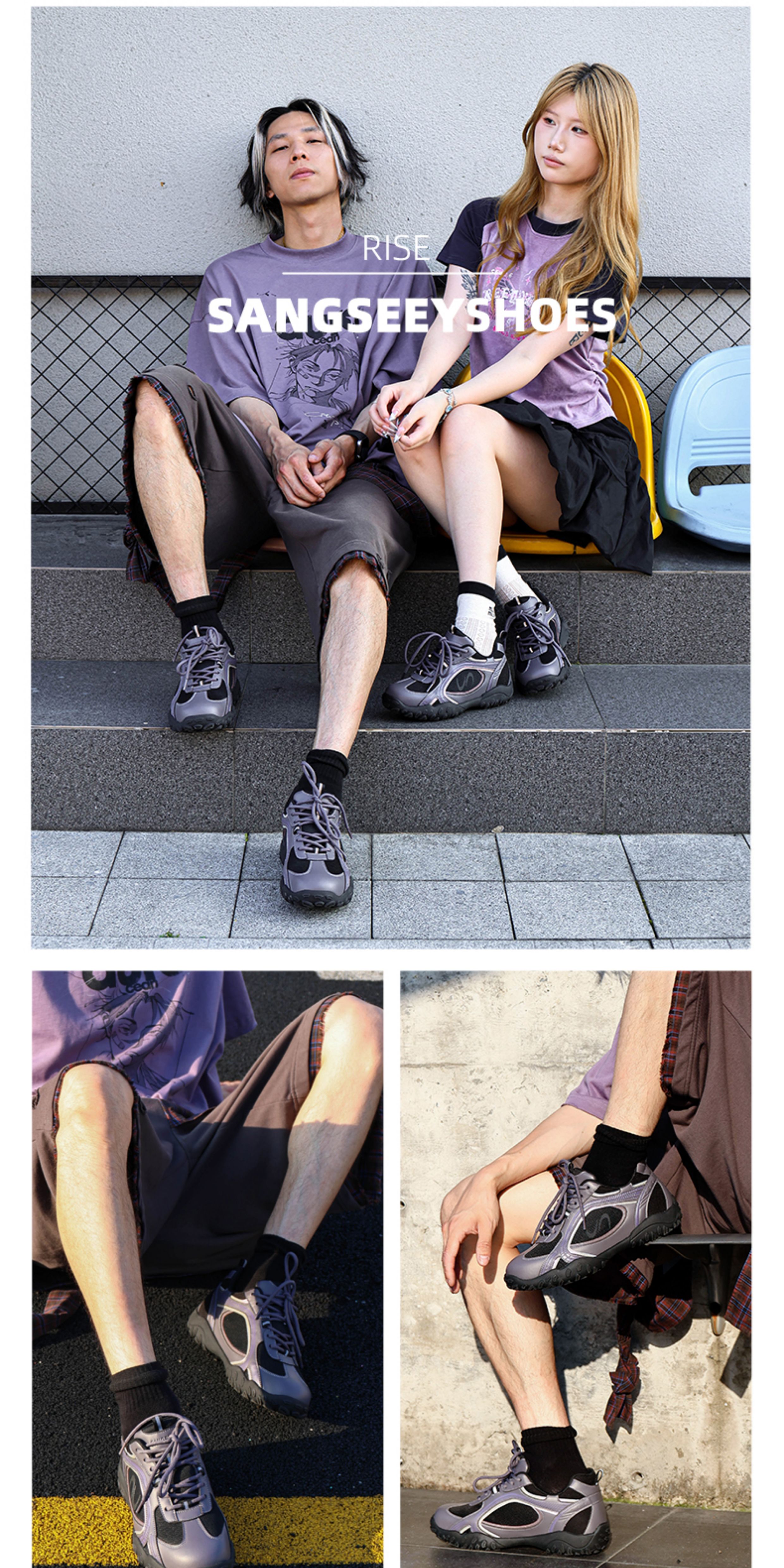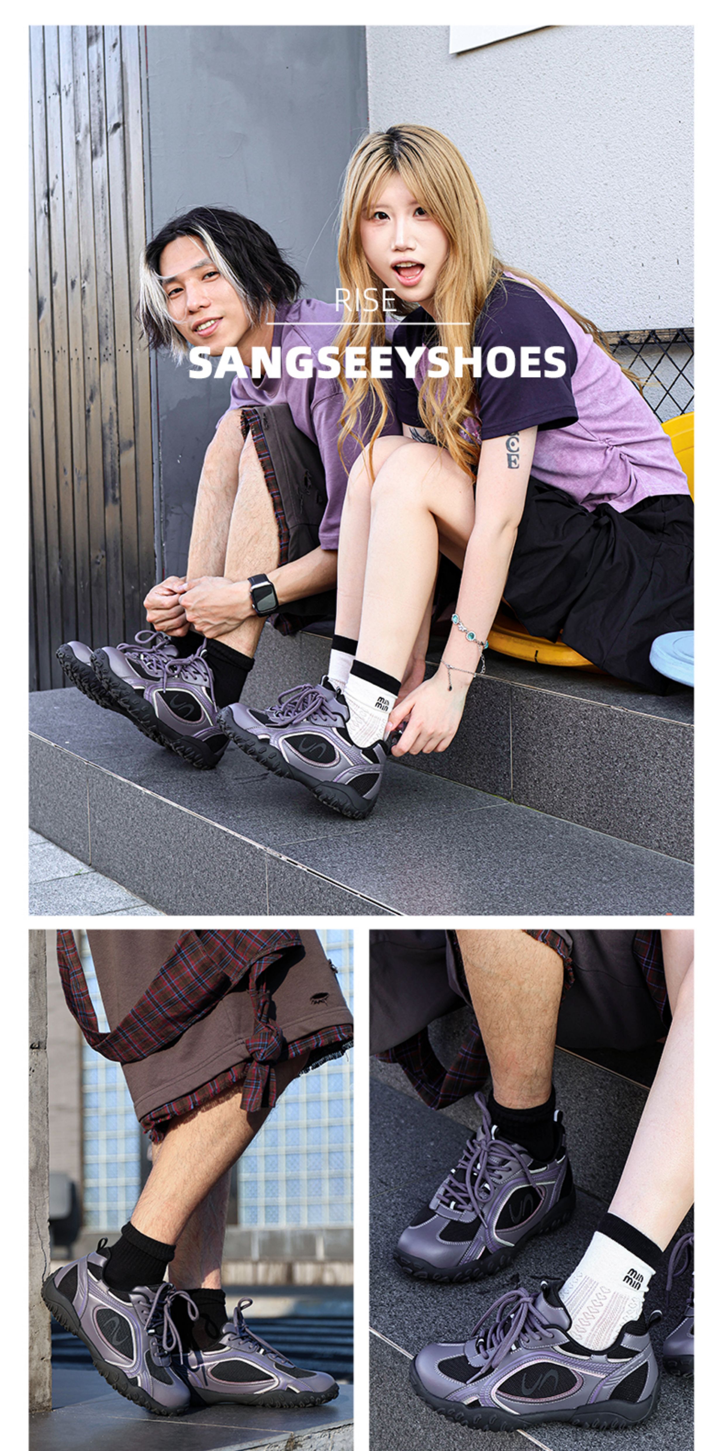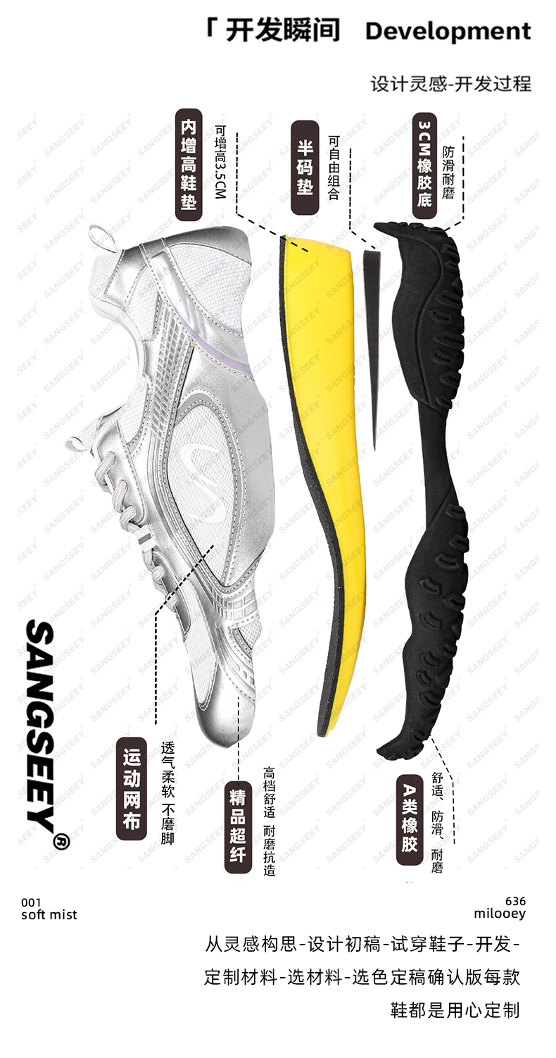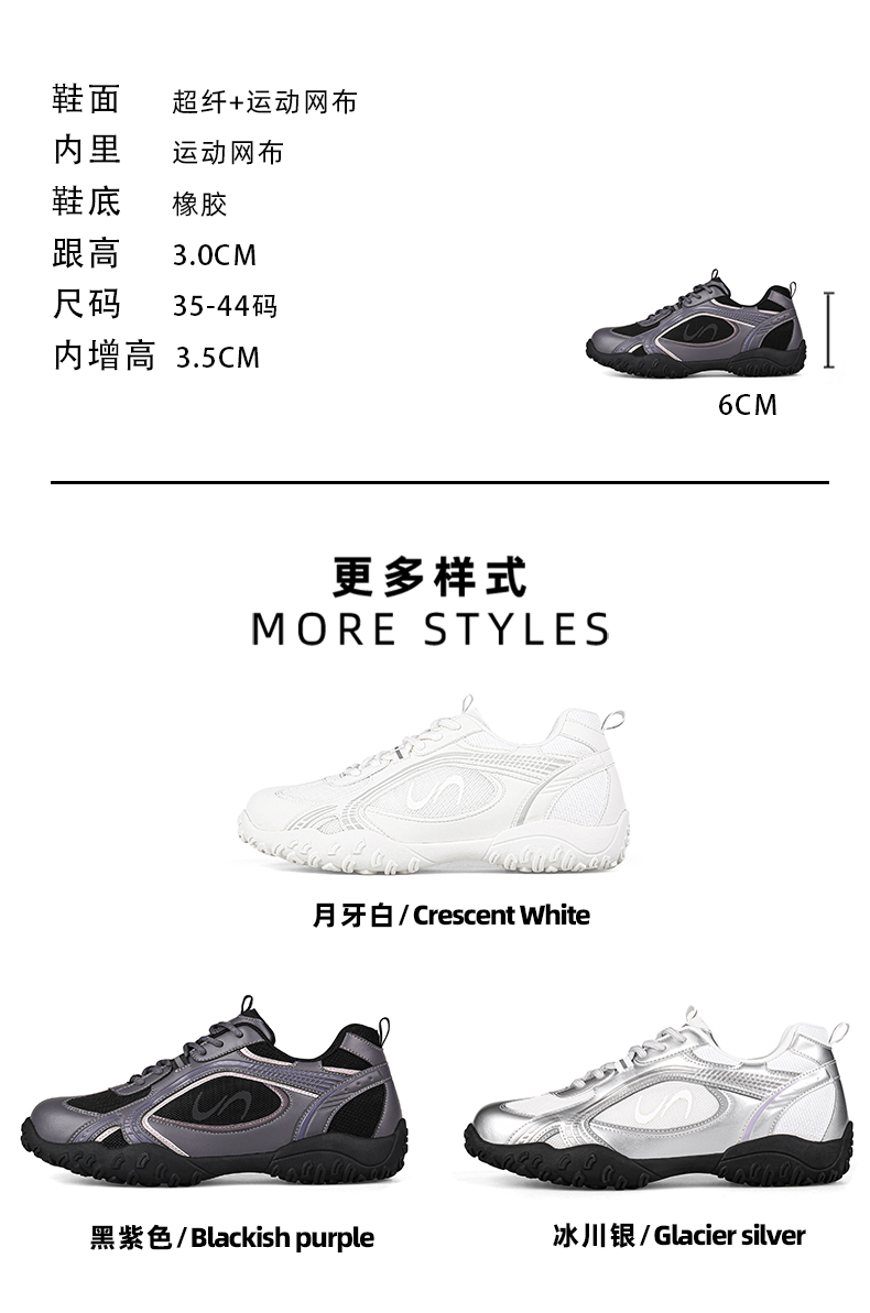 sangseey赛车鞋6cm隐形内增高男女夏季透气德训厚底运动休闲板鞋