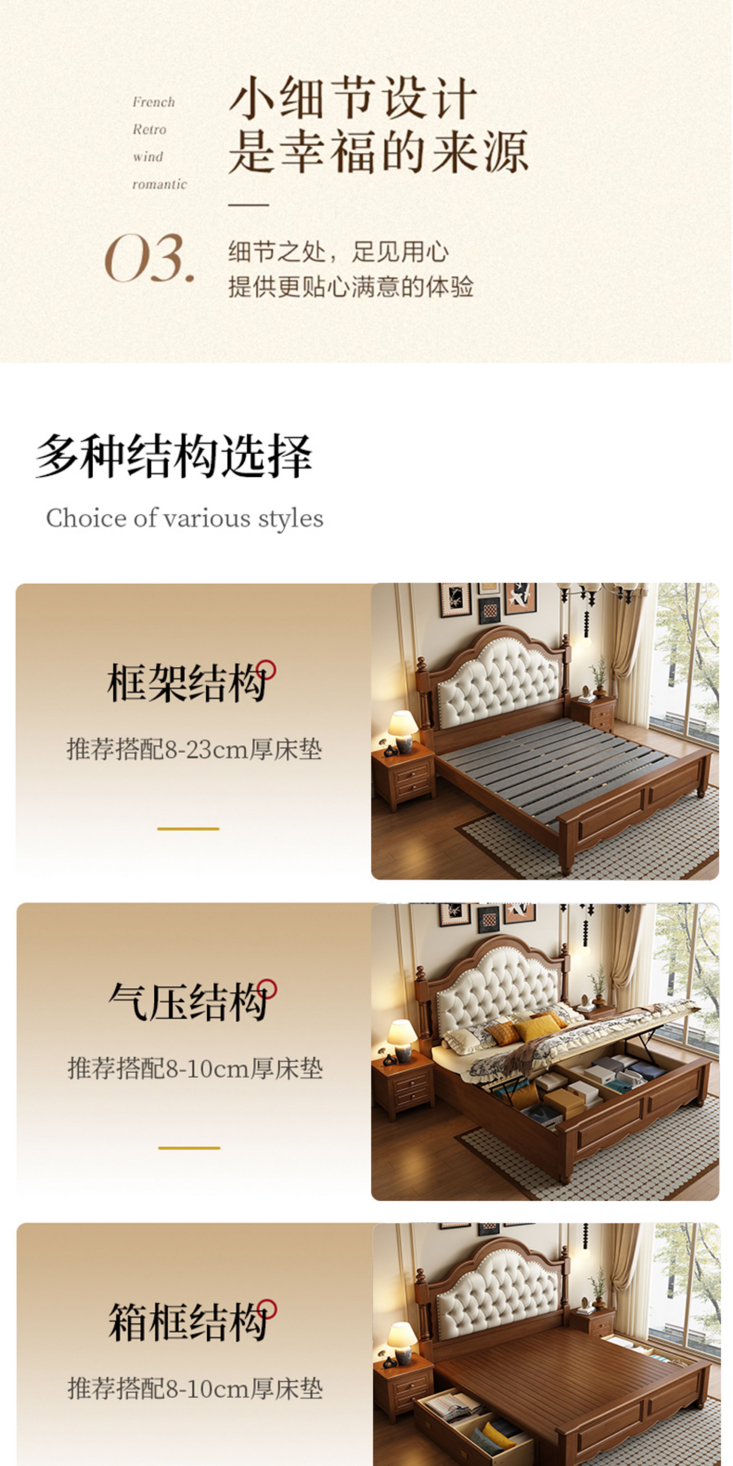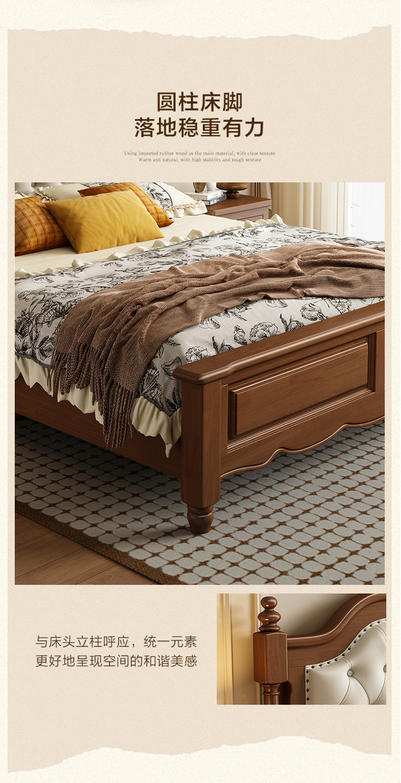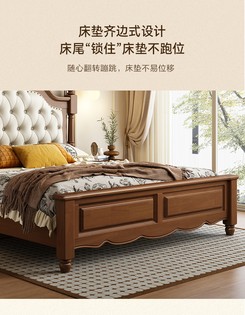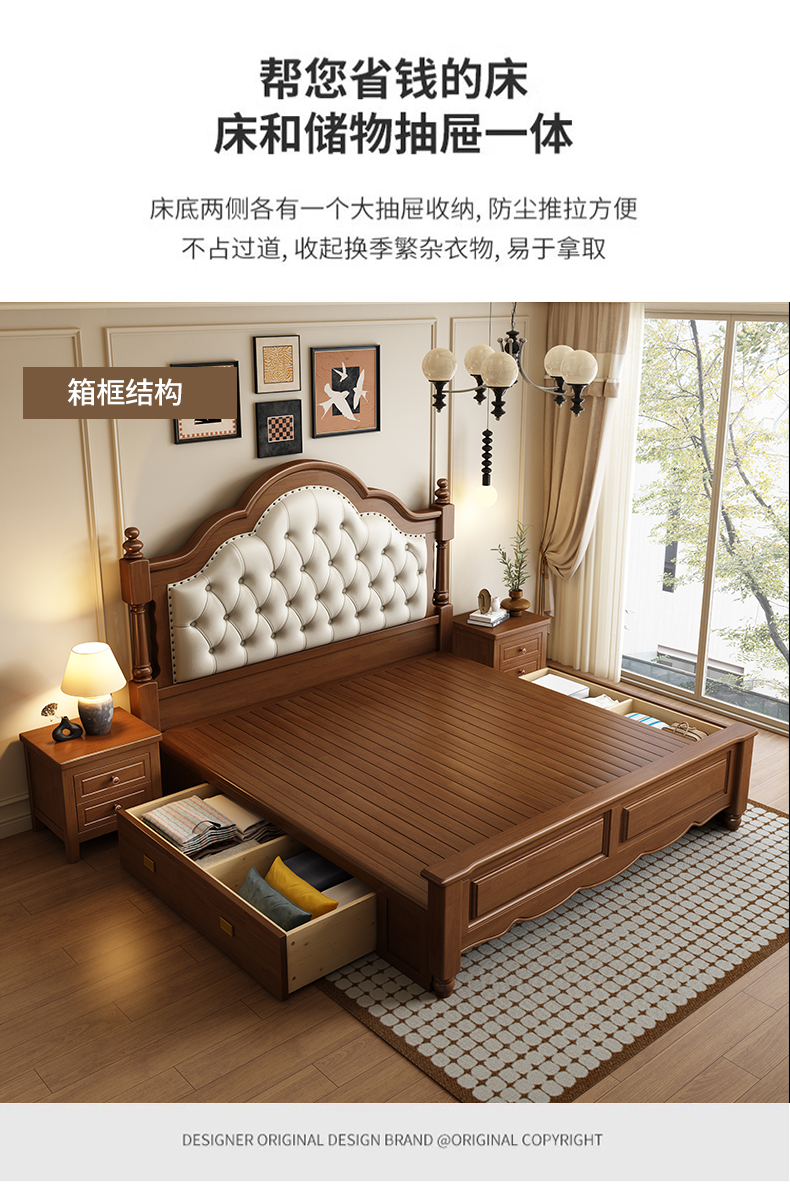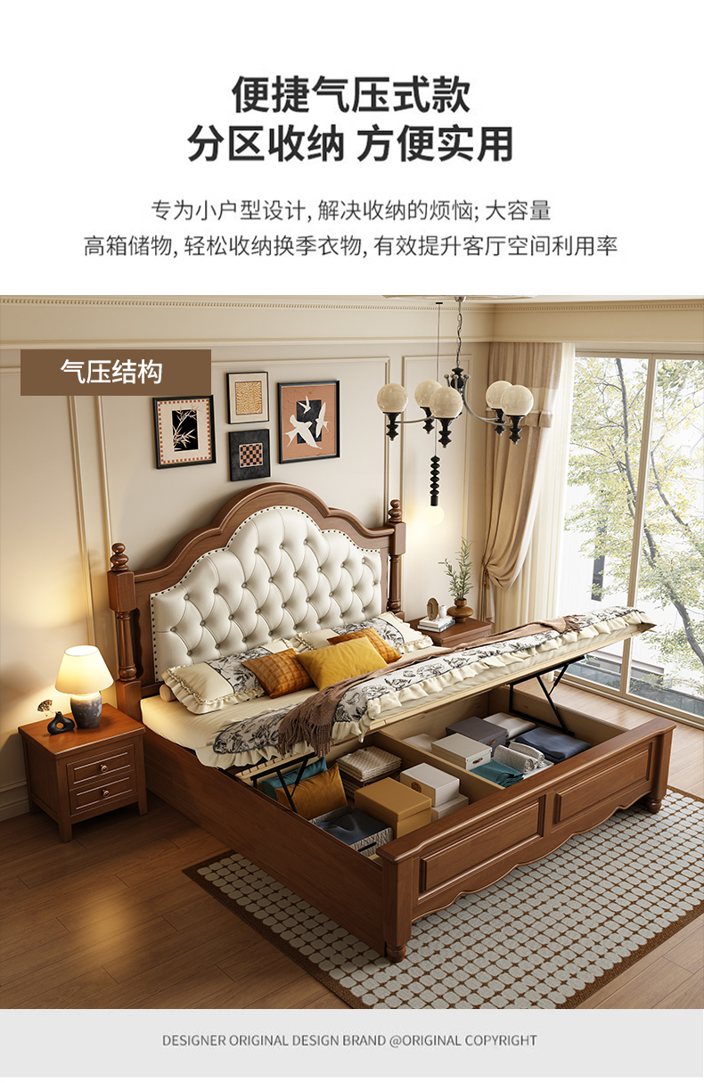 国补美式胡桃木色实木床1.5米单人次卧1.8米双人床气压婚床储物床
