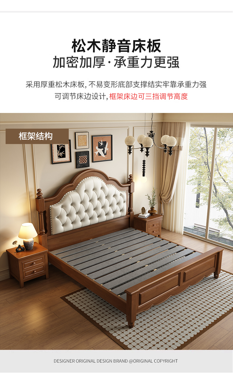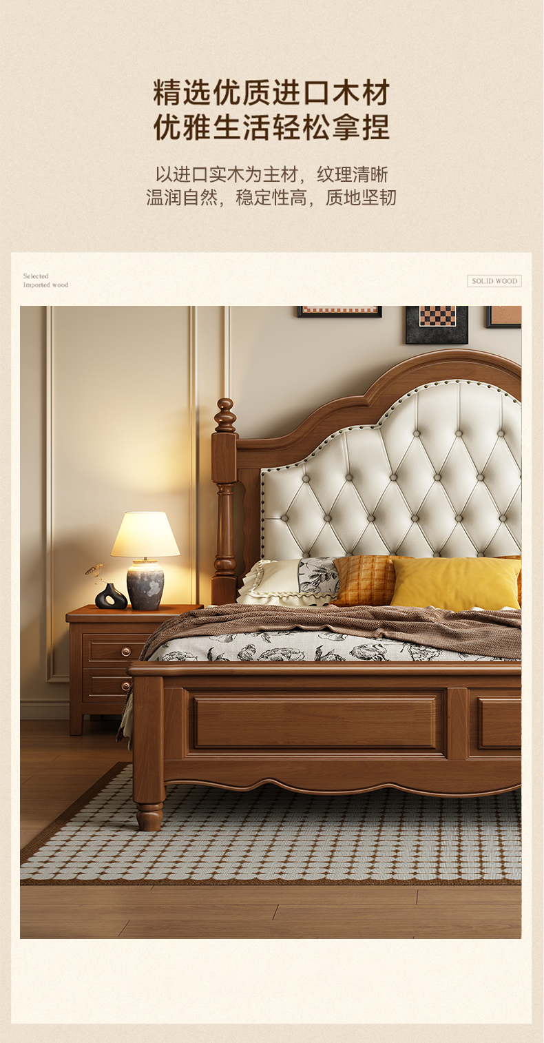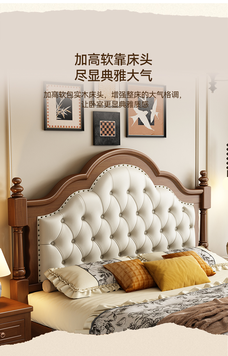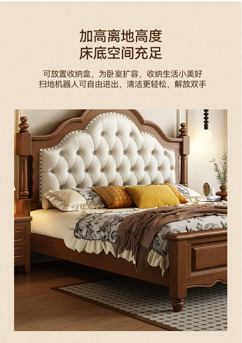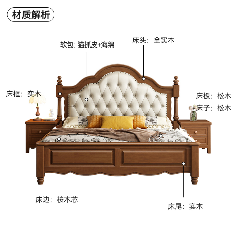 国补美式胡桃木色实木床1.5米单人次卧1.8米双人床气压婚床储物床