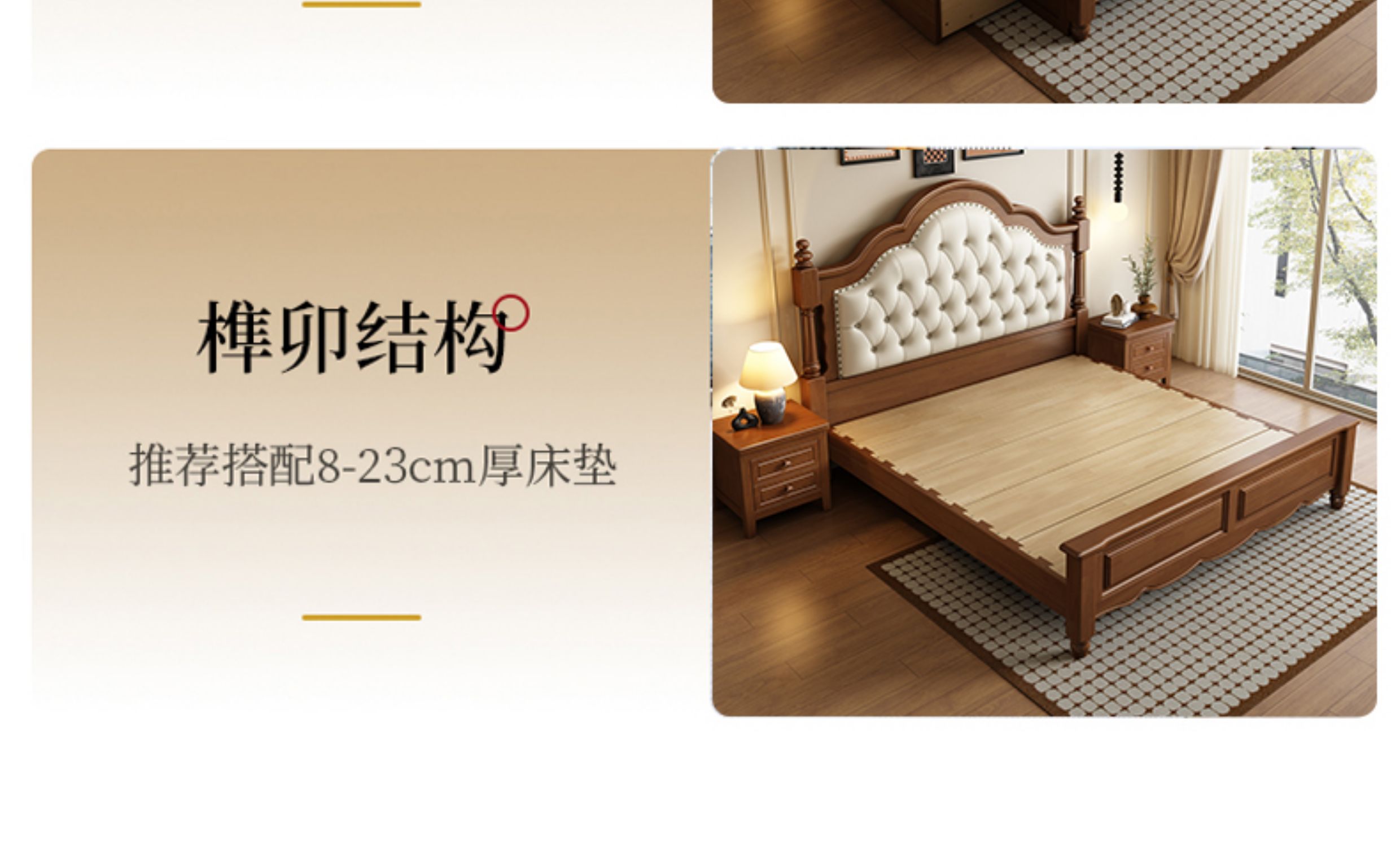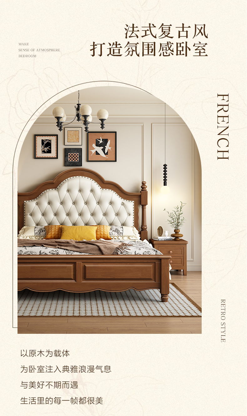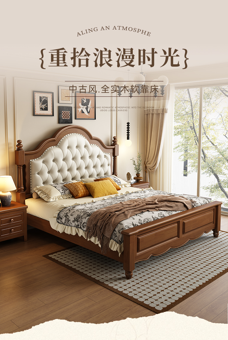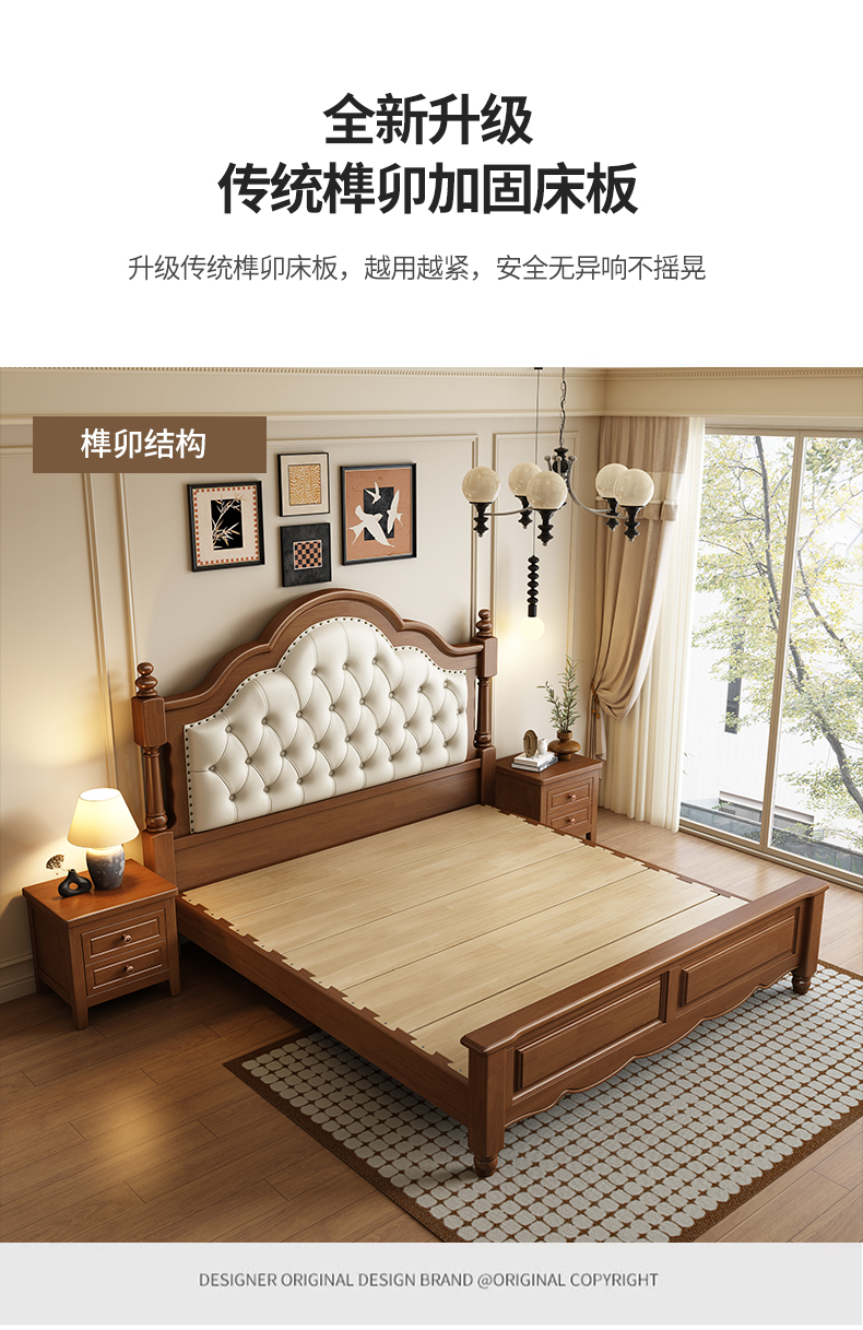 国补美式胡桃木色实木床1.5米单人次卧1.8米双人床气压婚床储物床