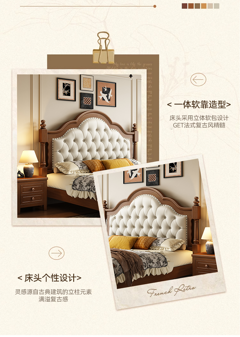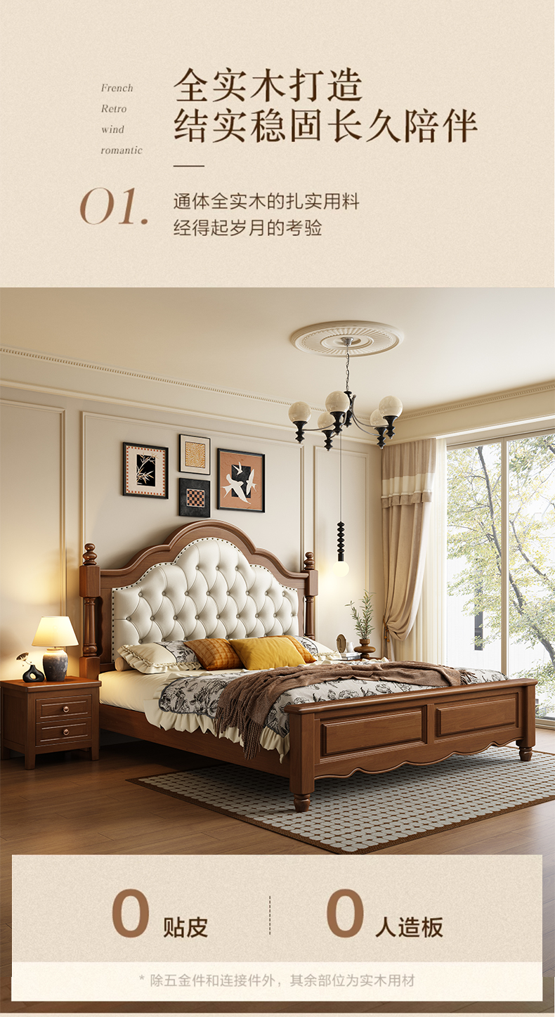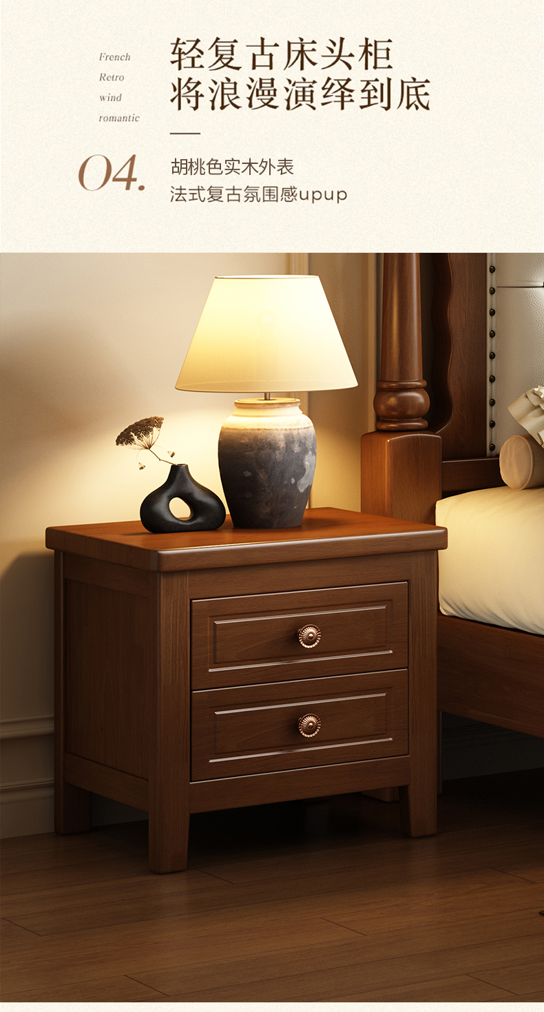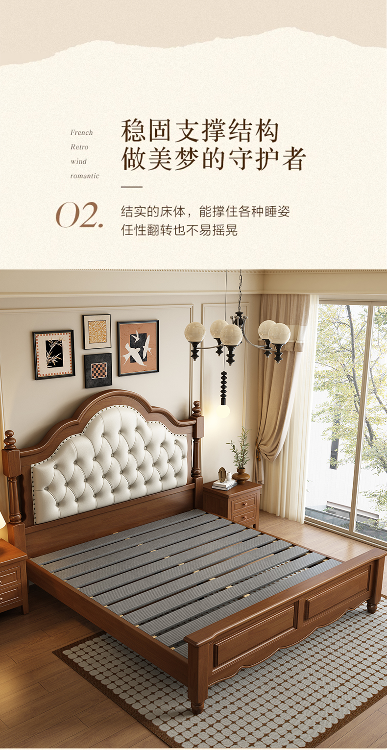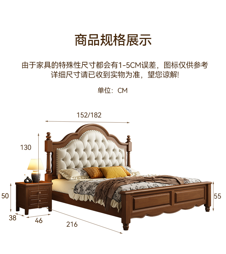 国补美式胡桃木色实木床1.5米单人次卧1.8米双人床气压婚床储物床
