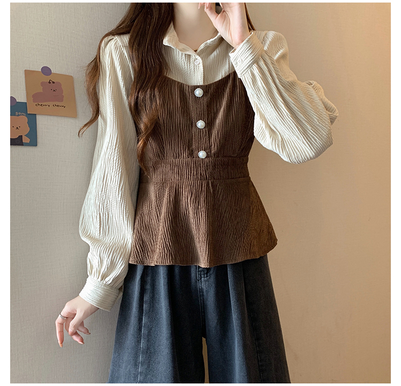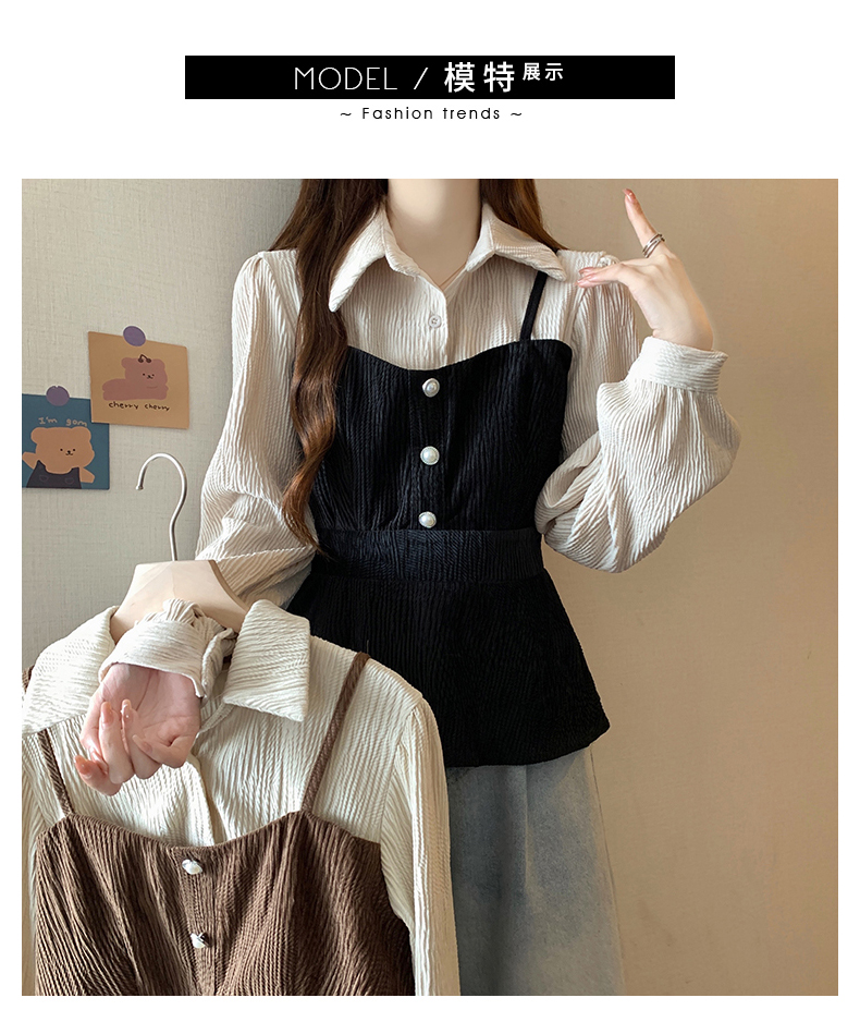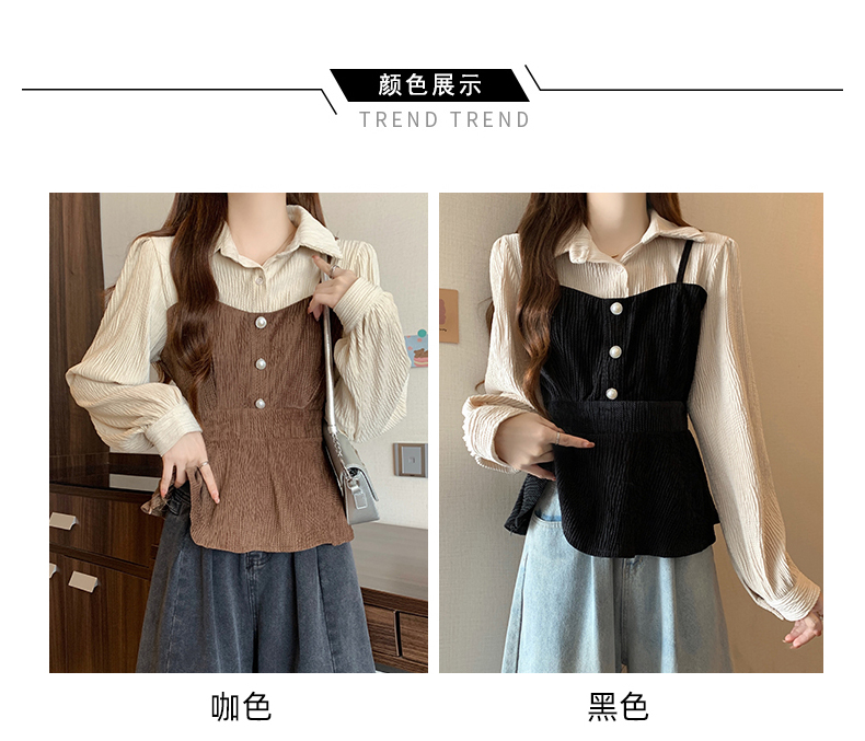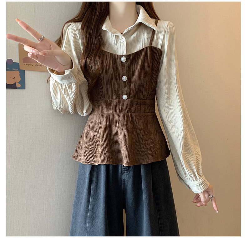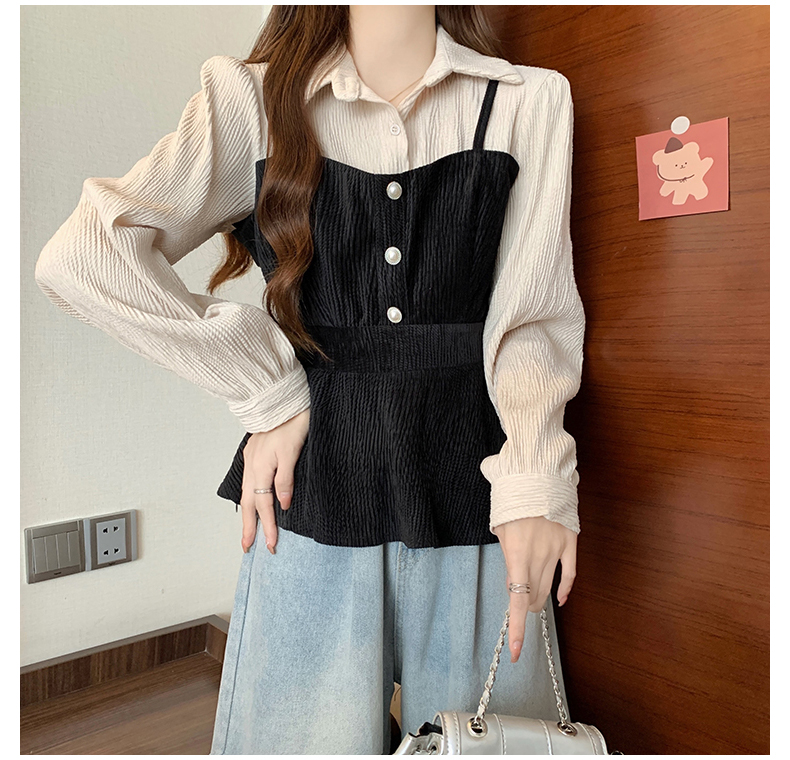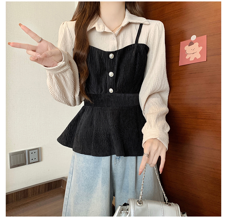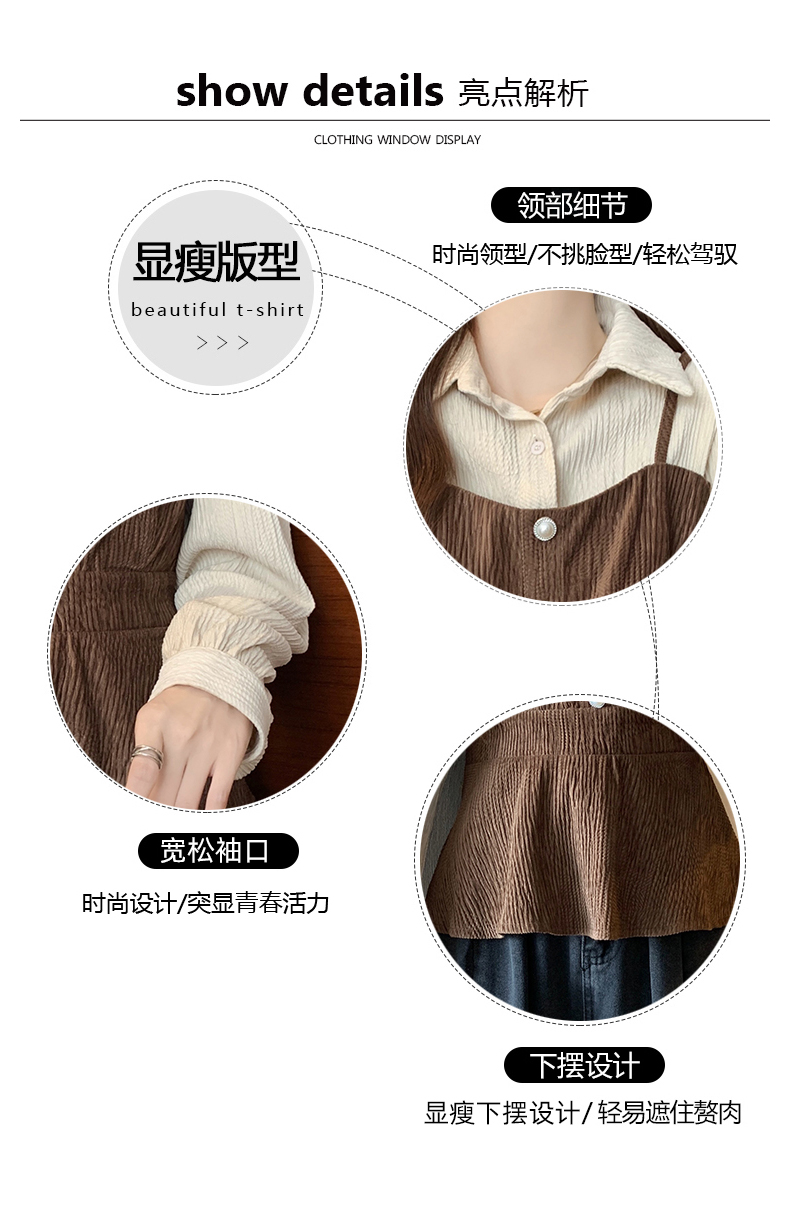 大码小众不撞款设计感拼接假两件收腰T恤女秋装胖mm显瘦长袖上衣
