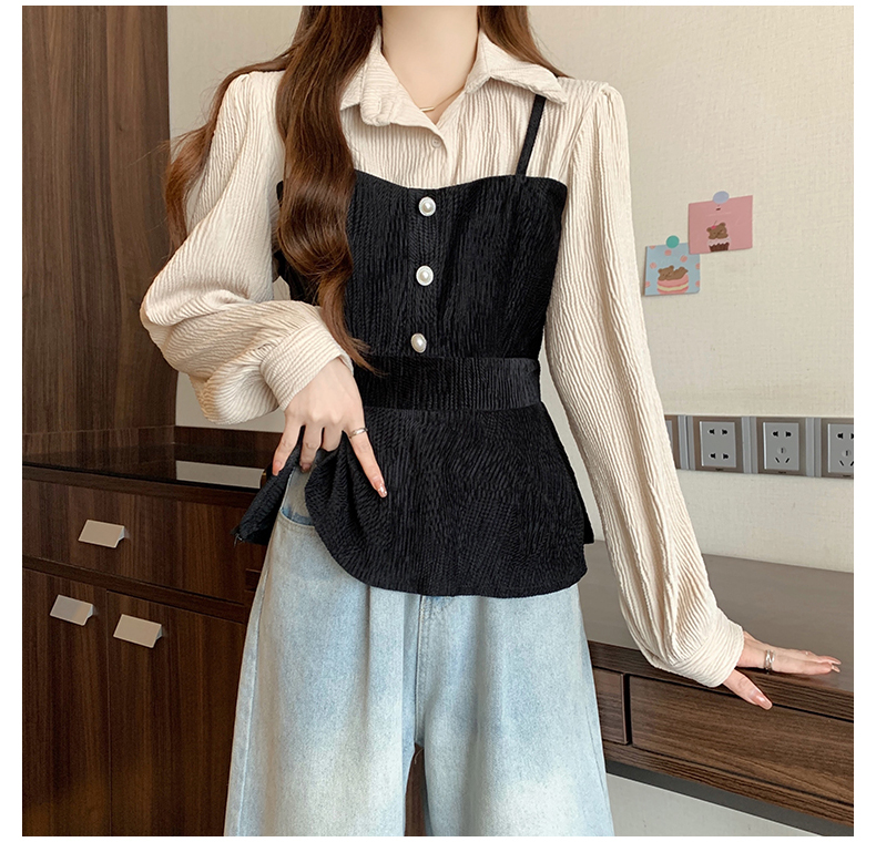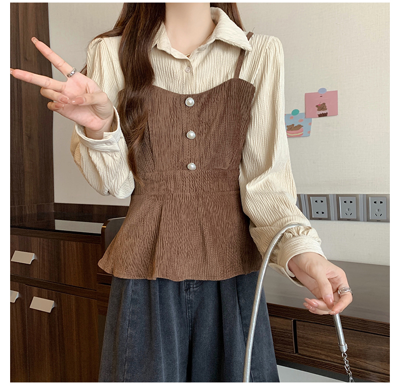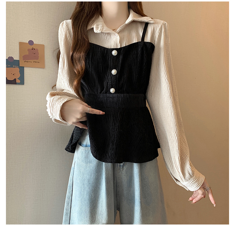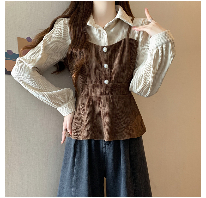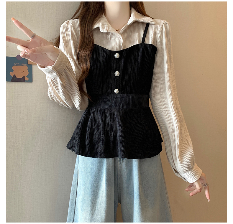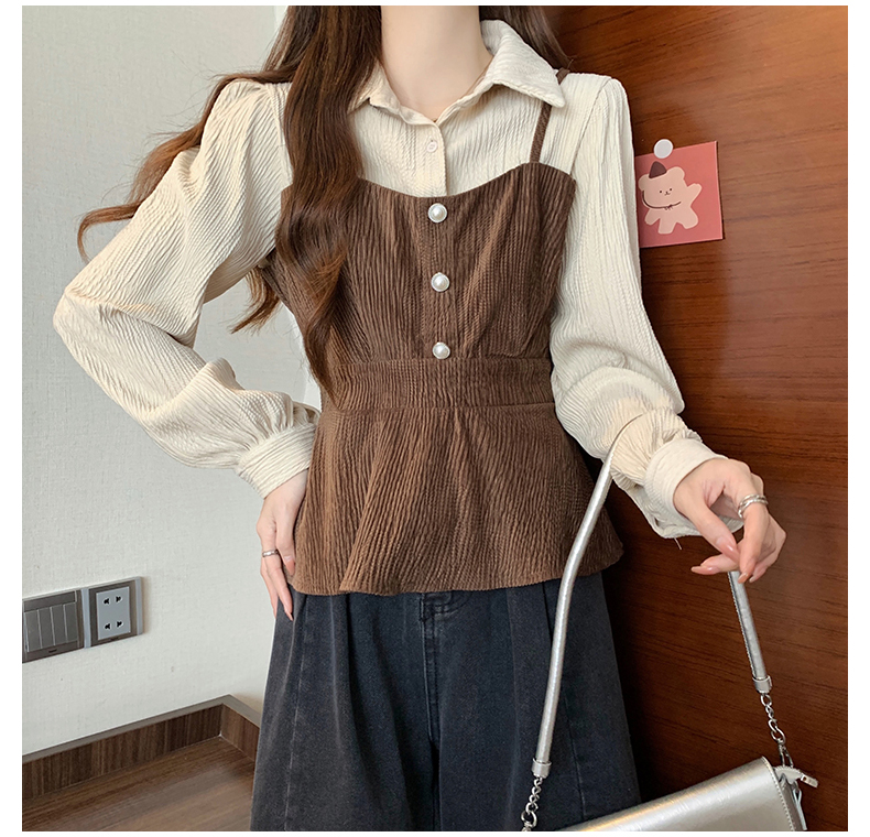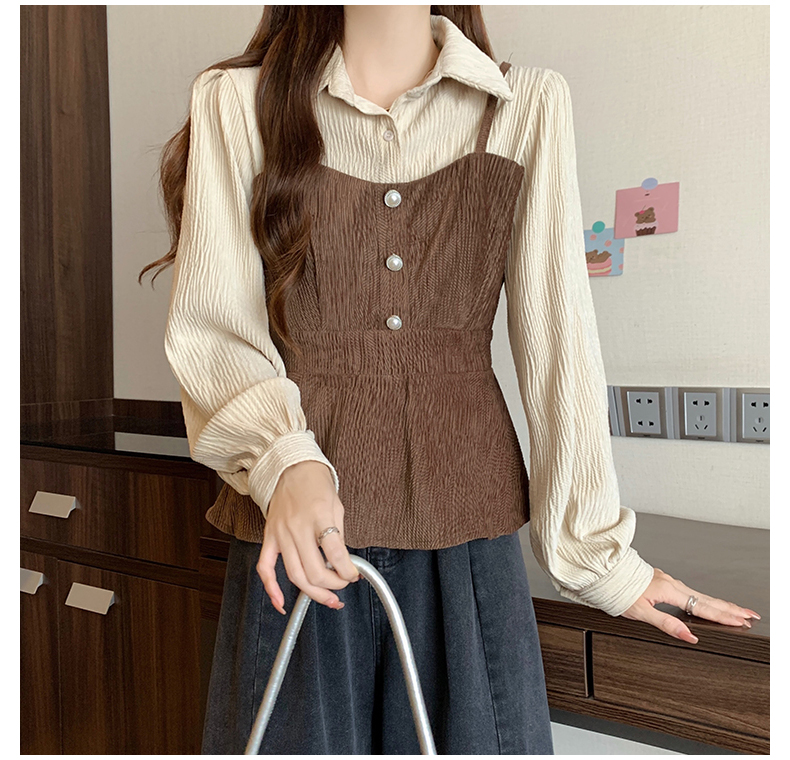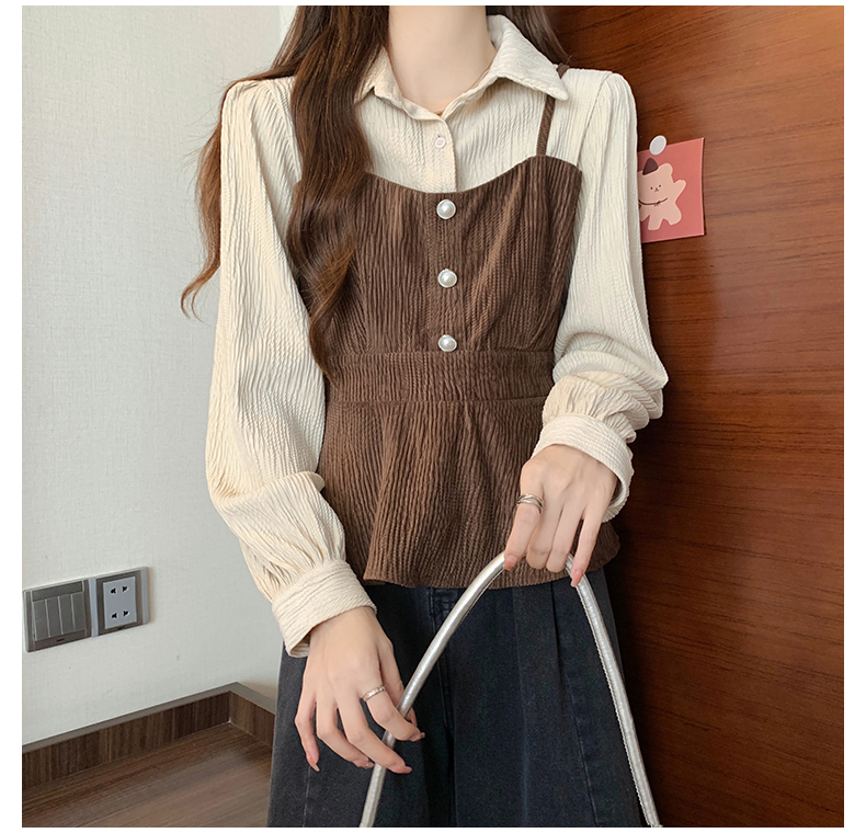 大码小众不撞款设计感拼接假两件收腰T恤女秋装胖mm显瘦长袖上衣