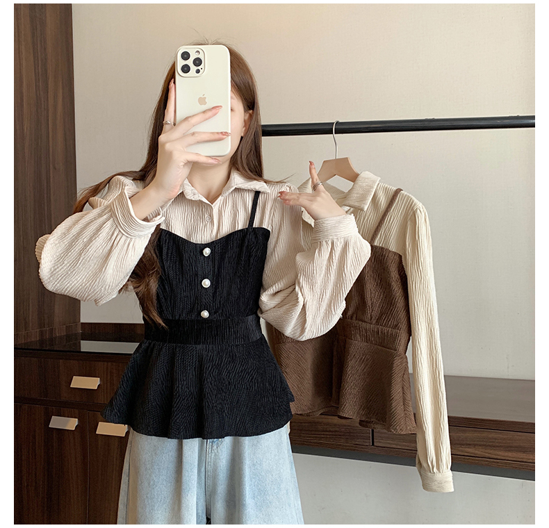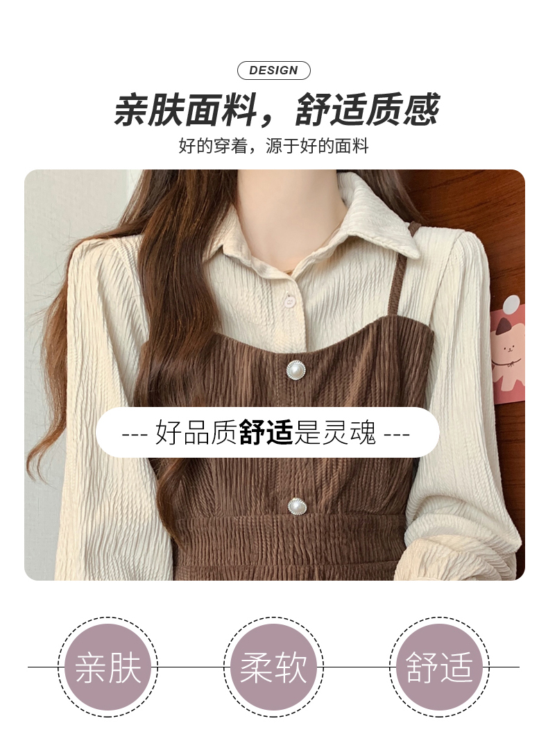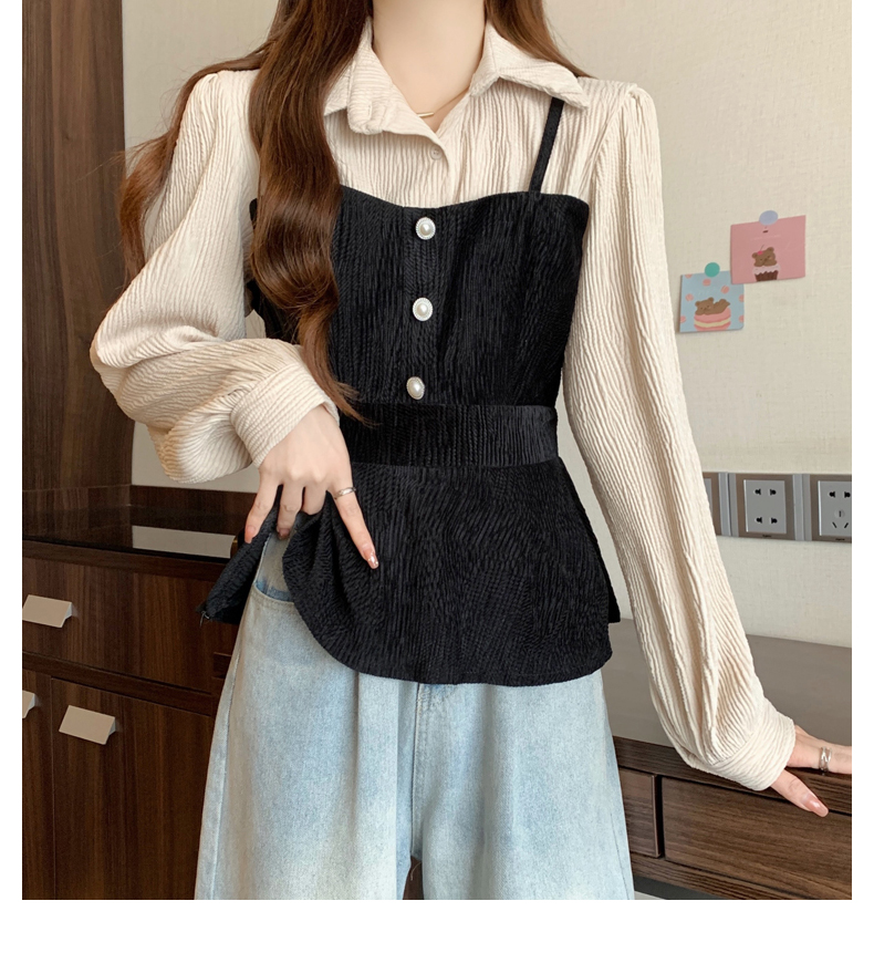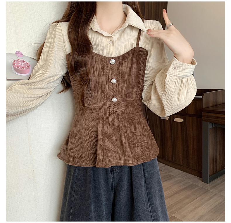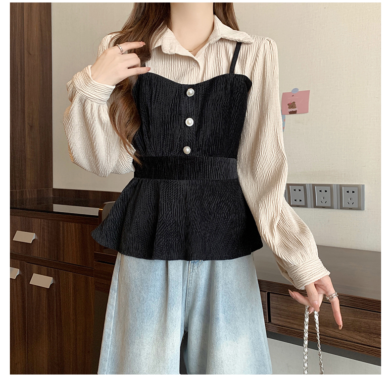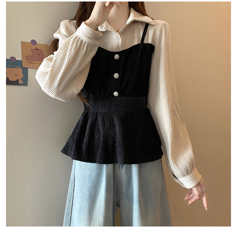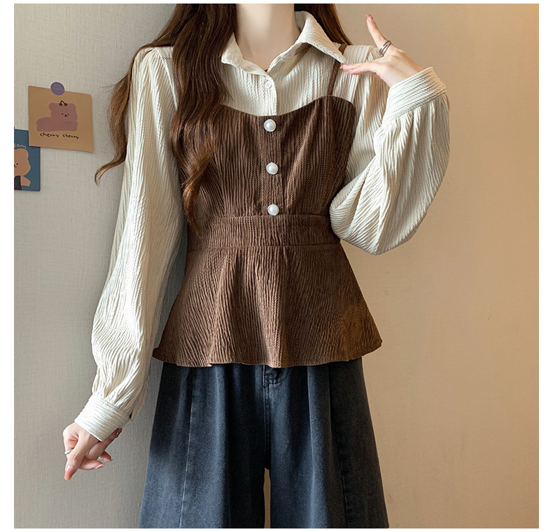 大码小众不撞款设计感拼接假两件收腰T恤女秋装胖mm显瘦长袖上衣