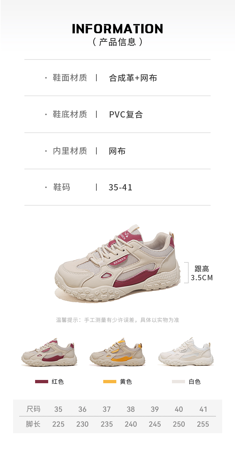 人本德训鞋女2025秋季新款时尚气质休闲鞋爆款百搭厚底运动鞋子女