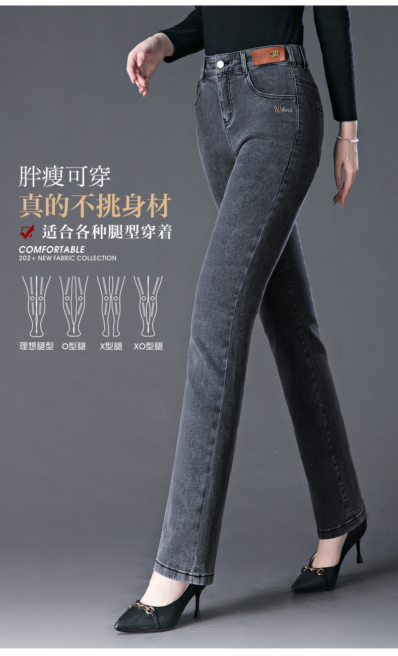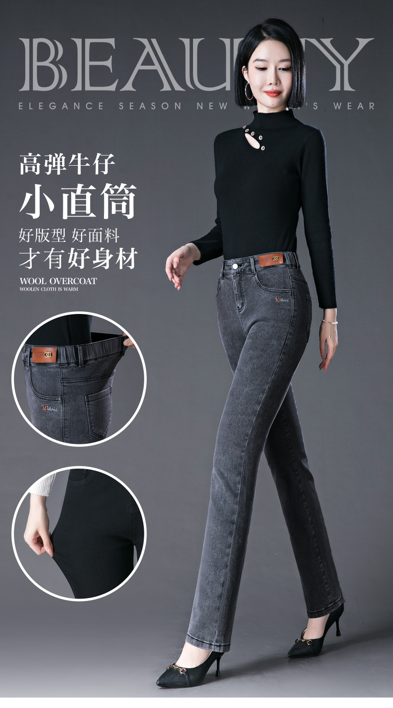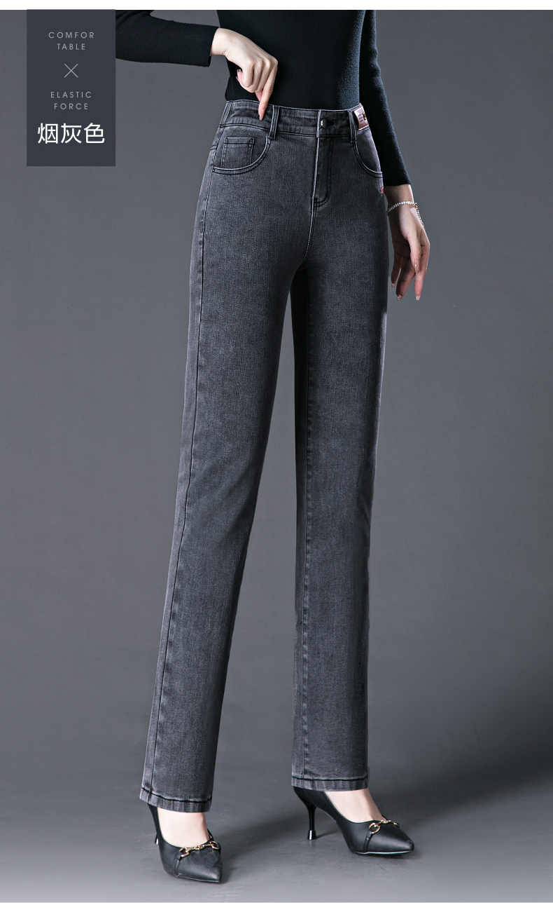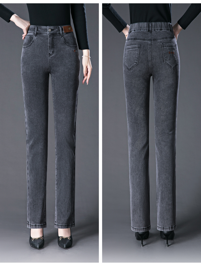 烟灰色牛仔裤女直筒春秋2025新款女士妈妈裤弹力高腰中老年裤加绒