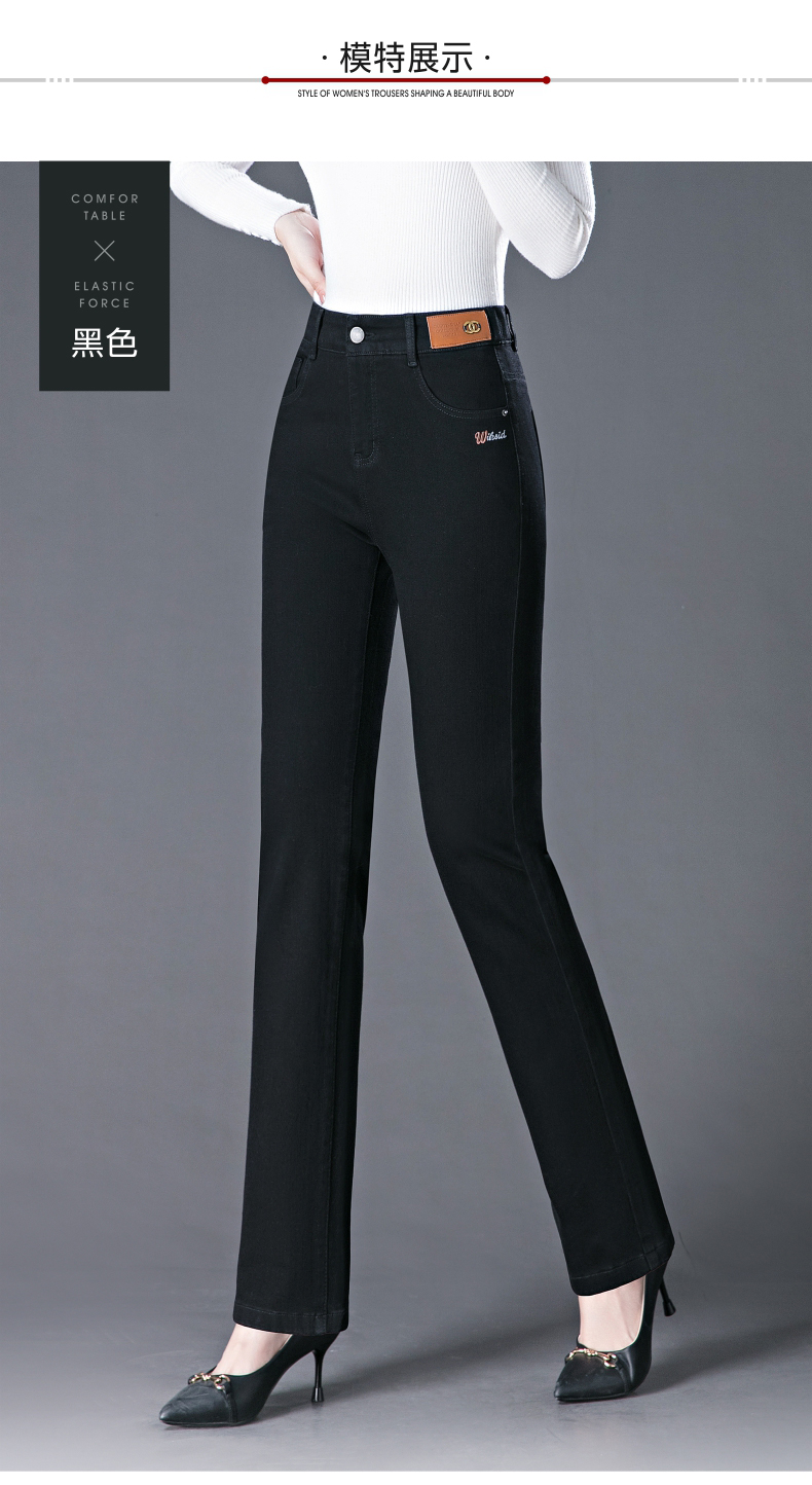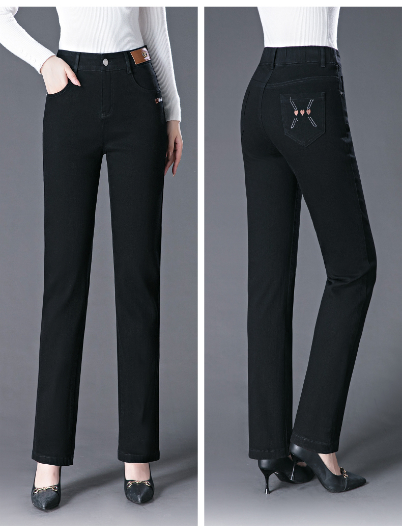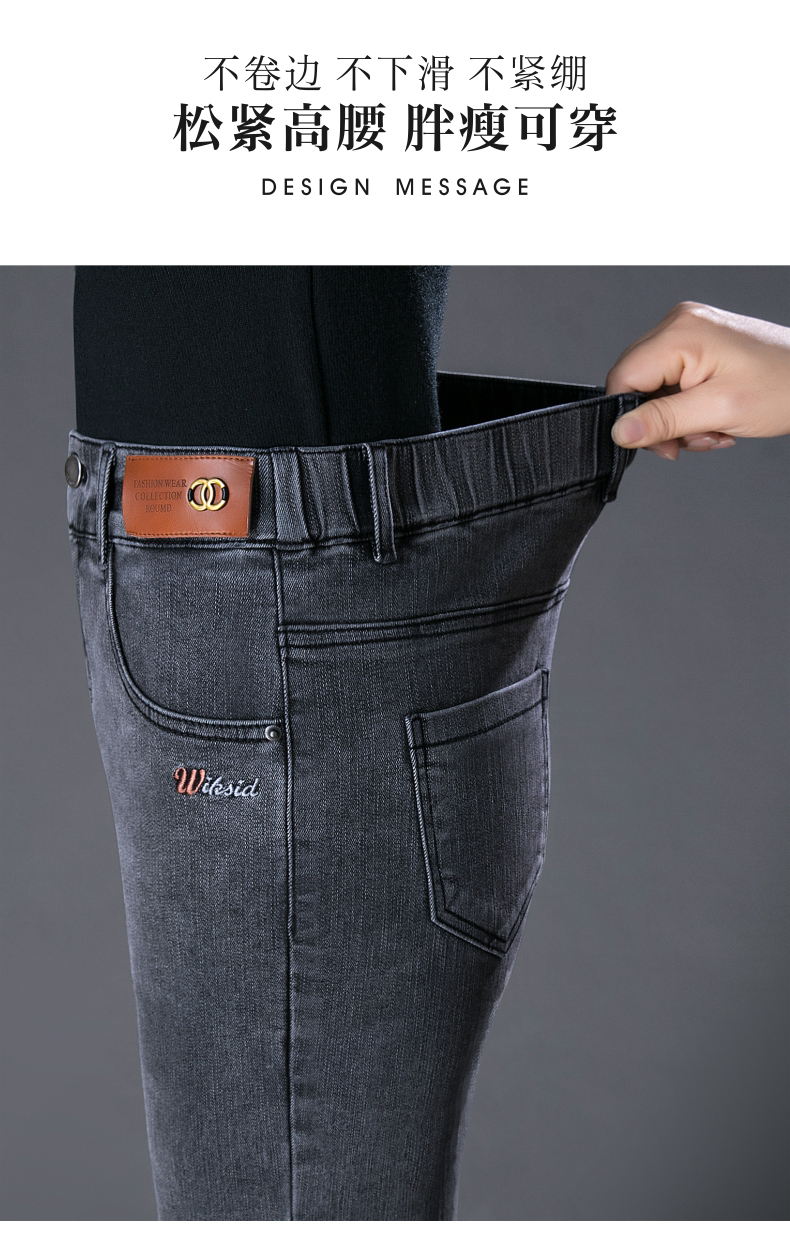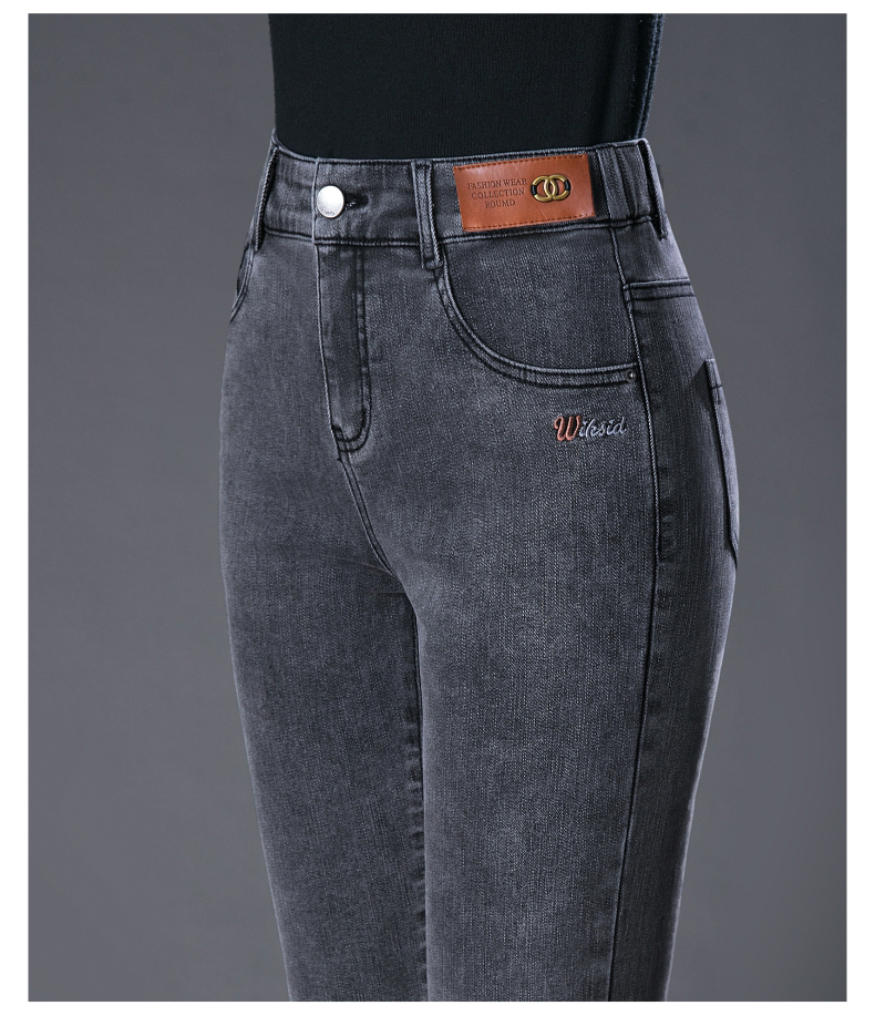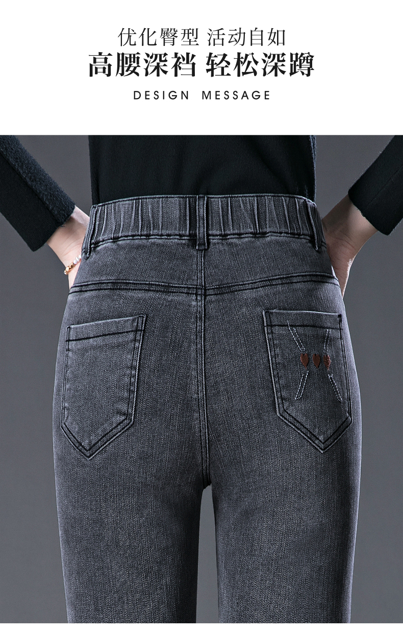 烟灰色牛仔裤女直筒春秋2025新款女士妈妈裤弹力高腰中老年裤加绒