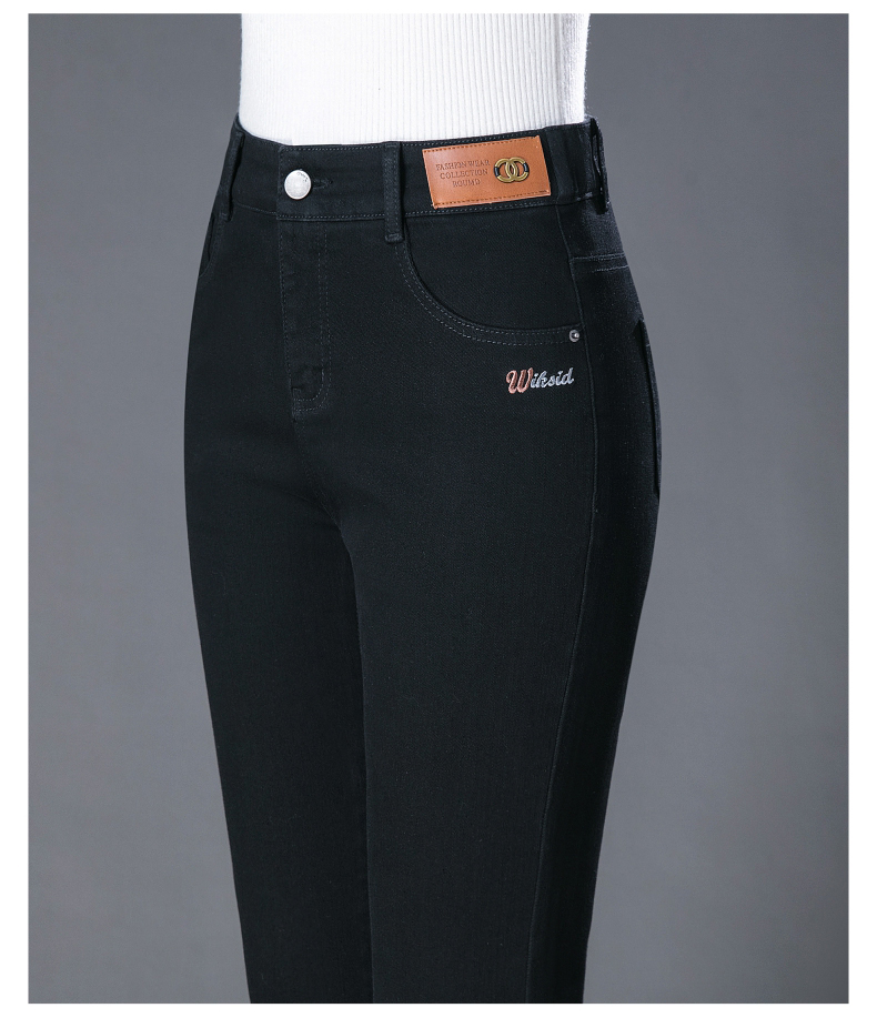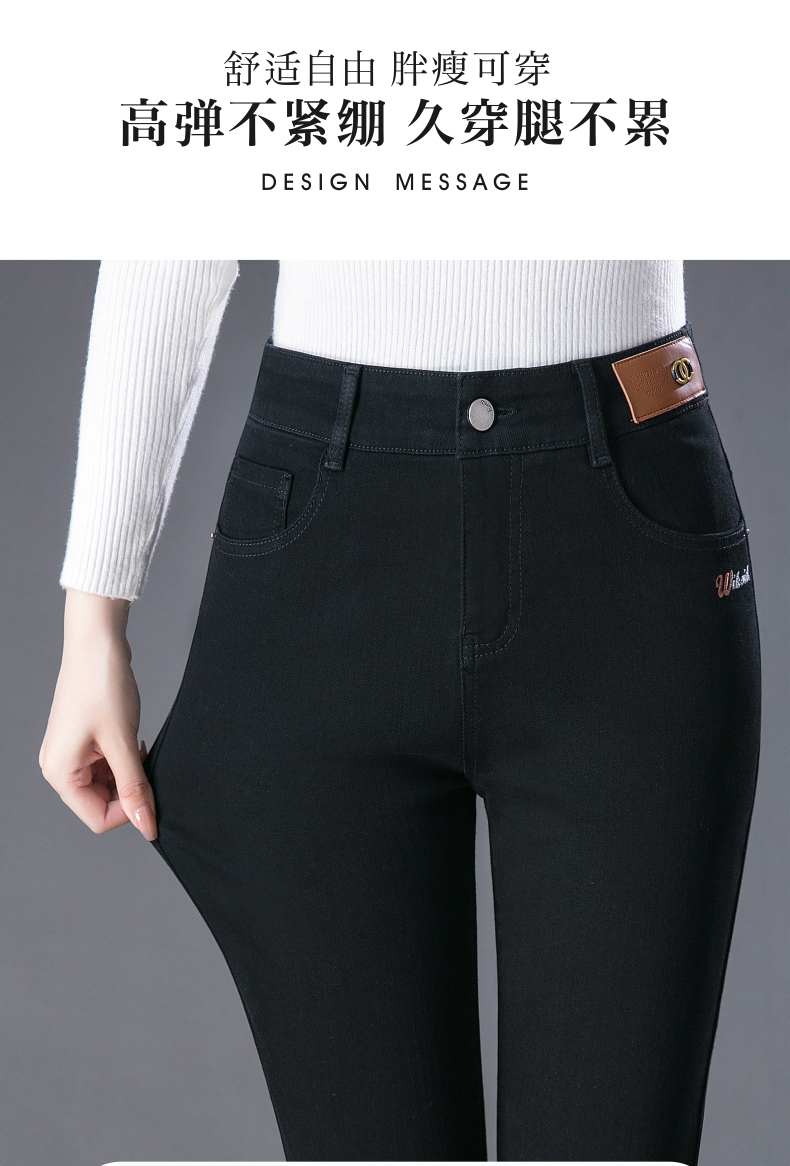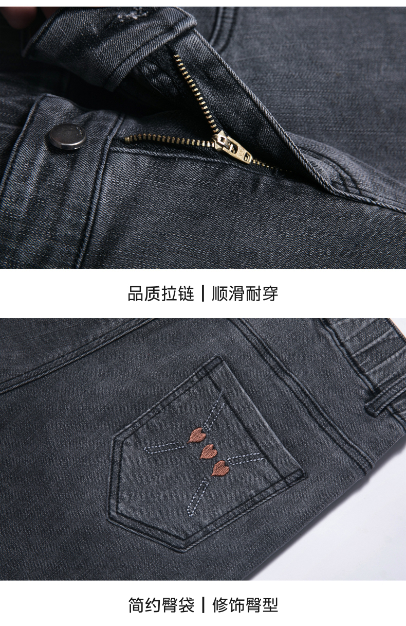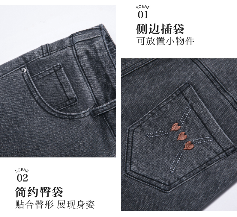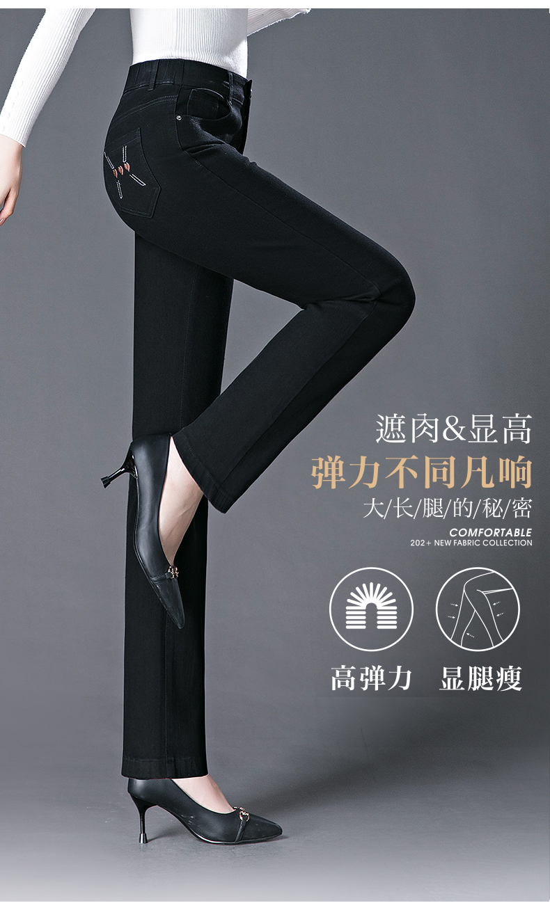烟灰色牛仔裤女直筒春秋2025新款女士妈妈裤弹力高腰中老年裤加绒