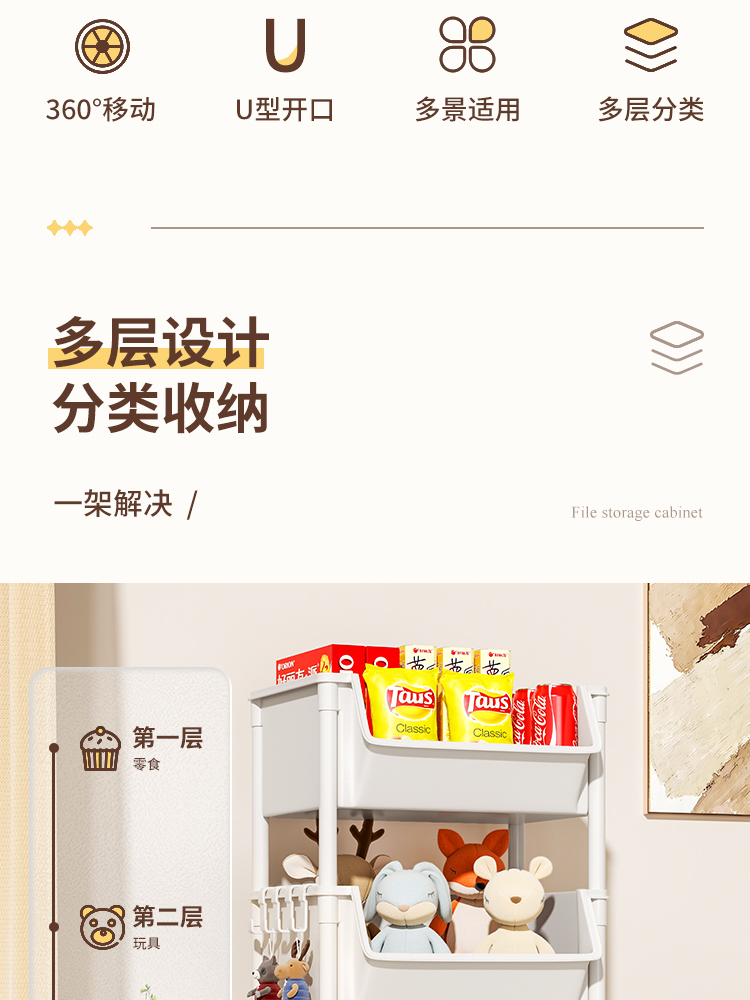 零食小推车玩具置物架子家用床边落地宿舍收纳必备好物厨房收纳架