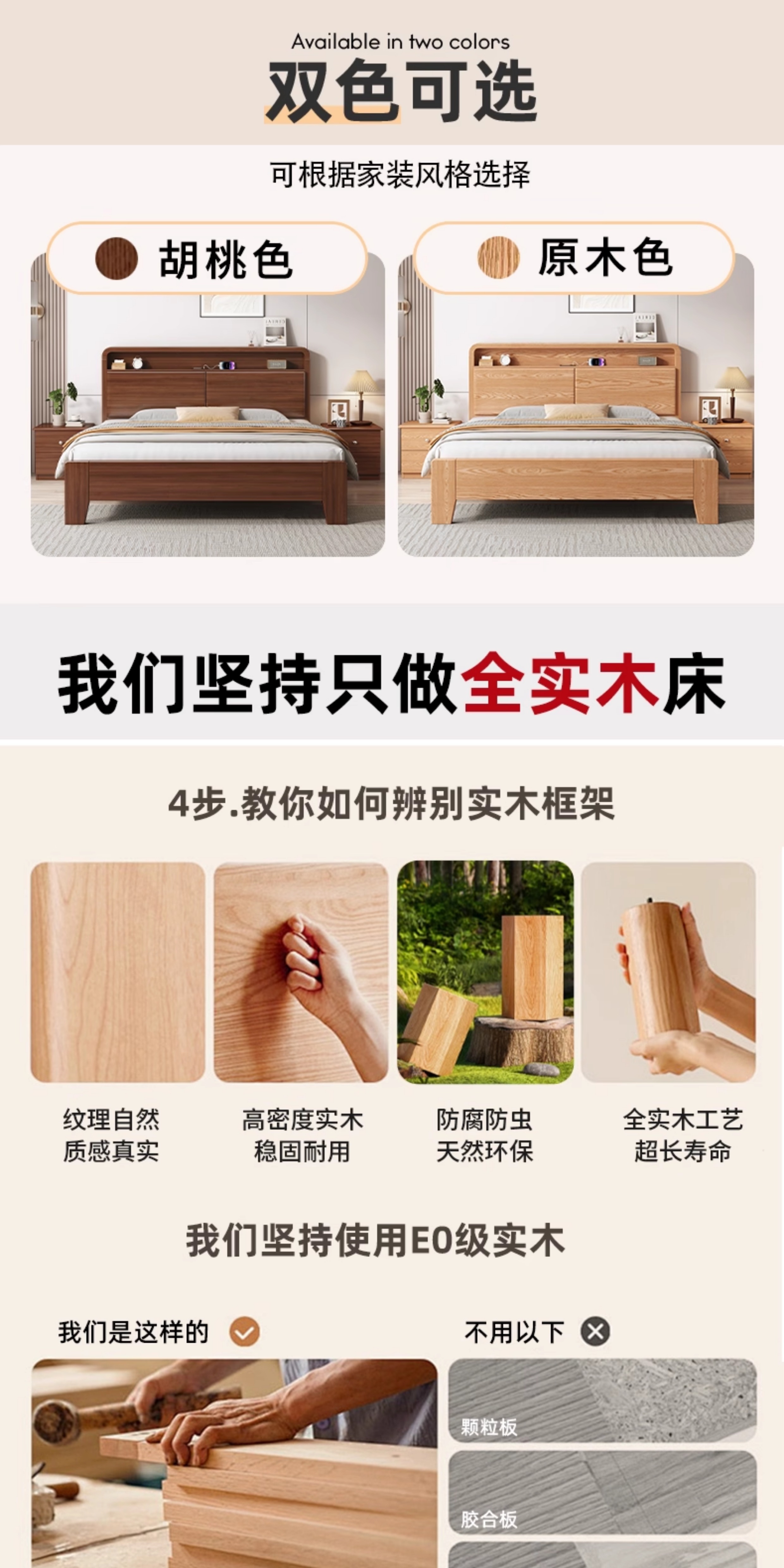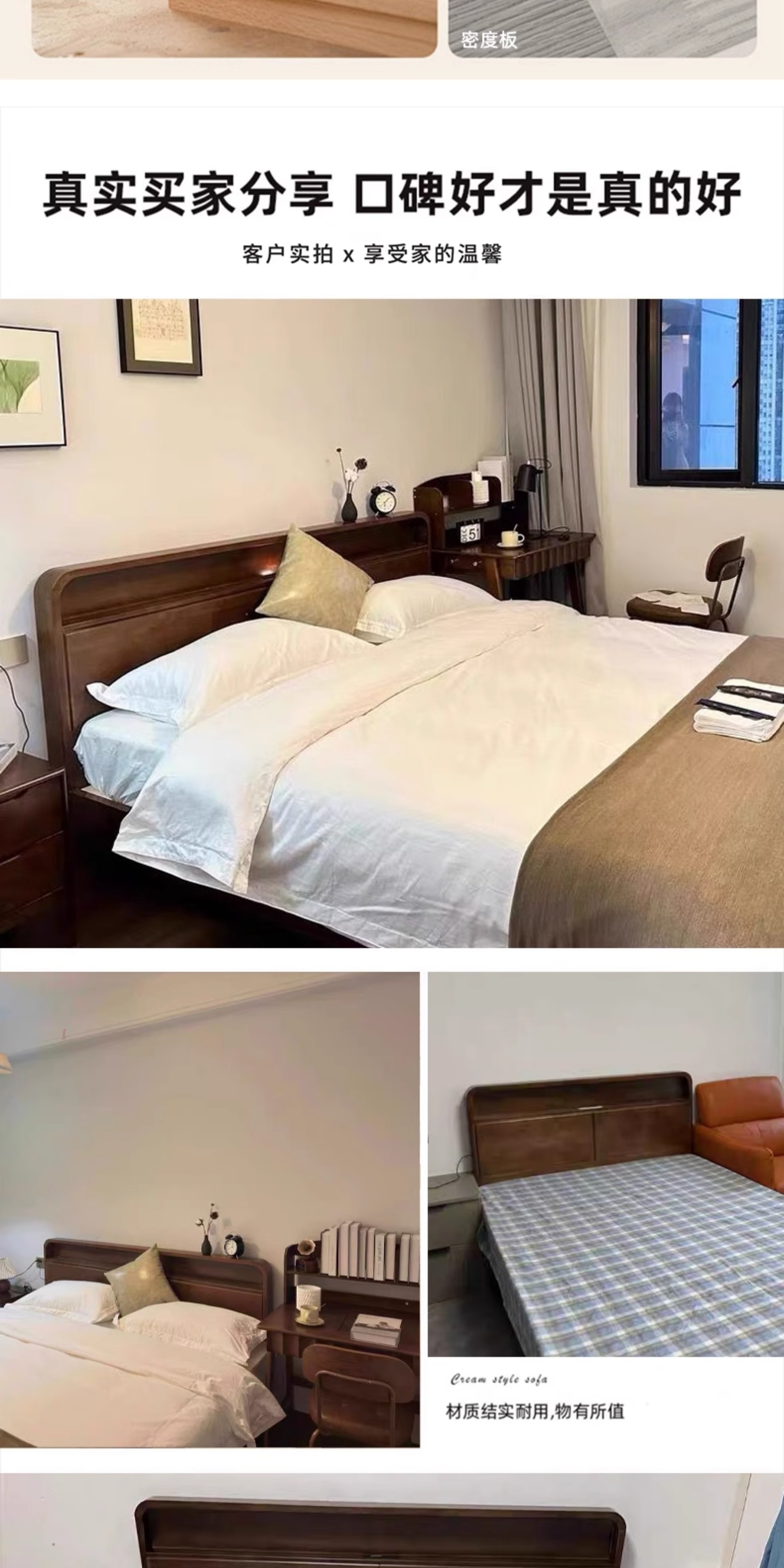 北欧全实木床现代简约胡桃色1.8米床1.5米软靠双人床家用主卧大床