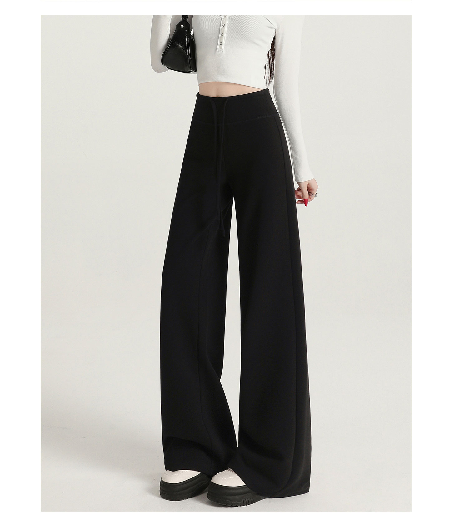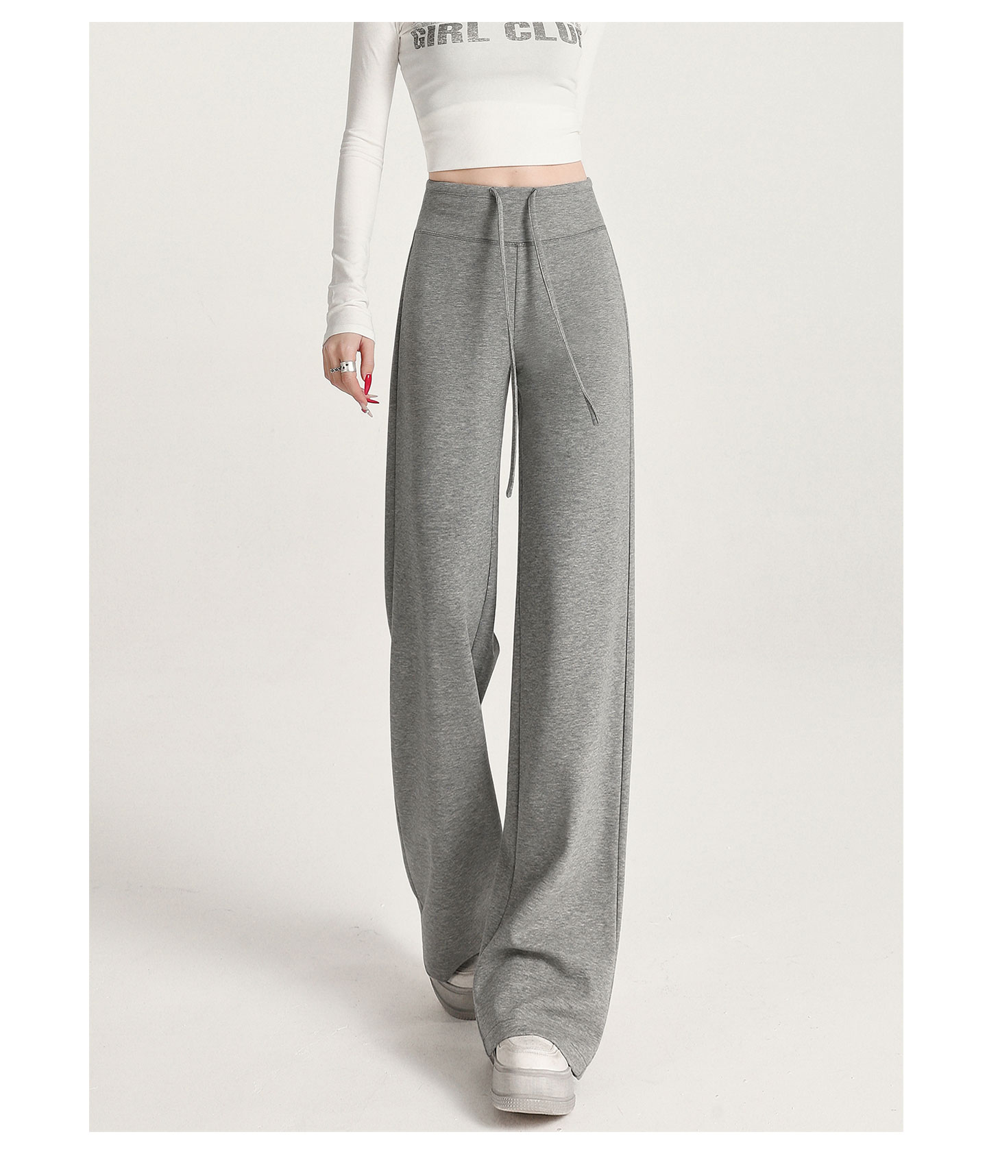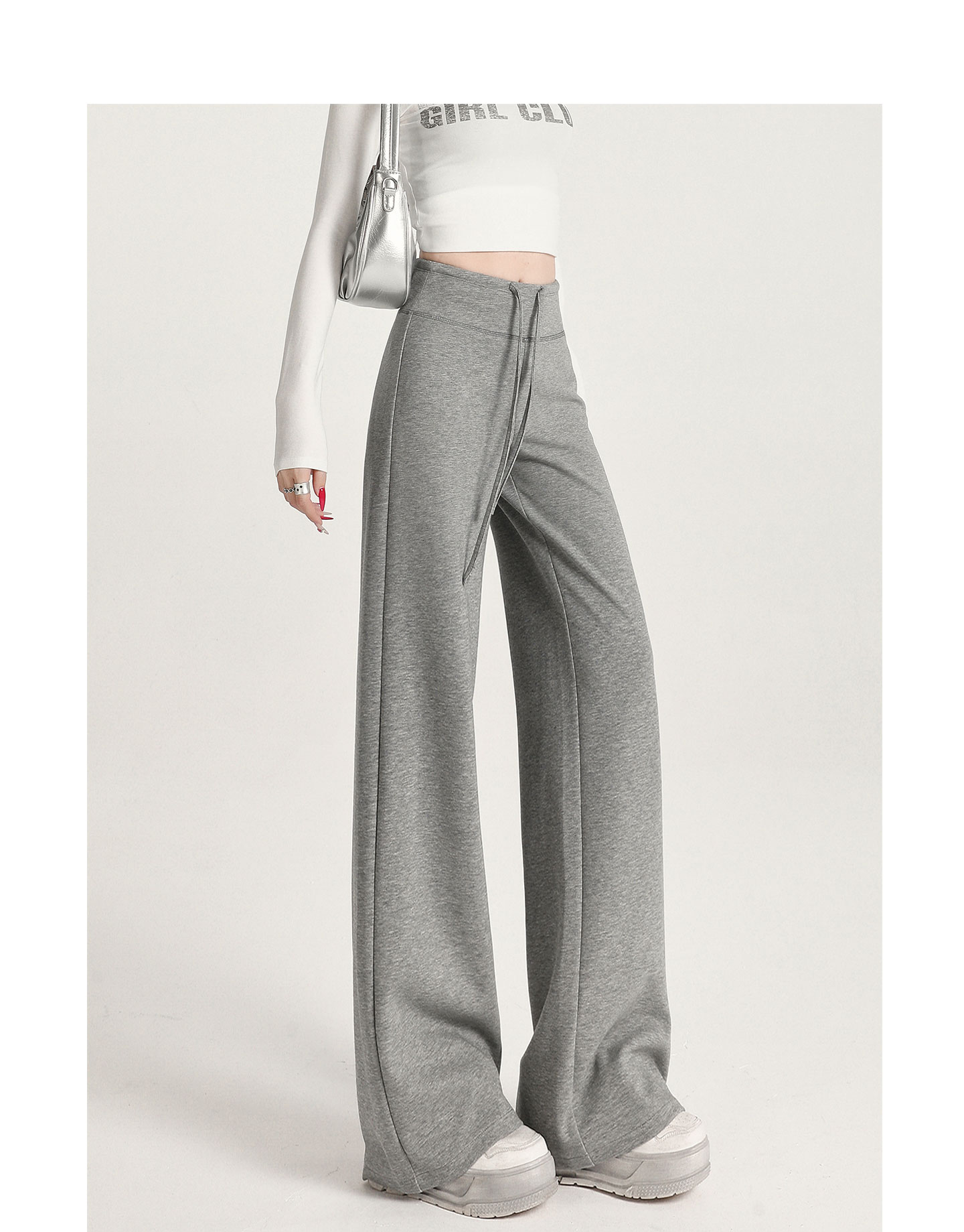 运动阔腿裤女秋季2025新款宽松直筒卫裤窄版休闲微喇瑜伽白色裤子
