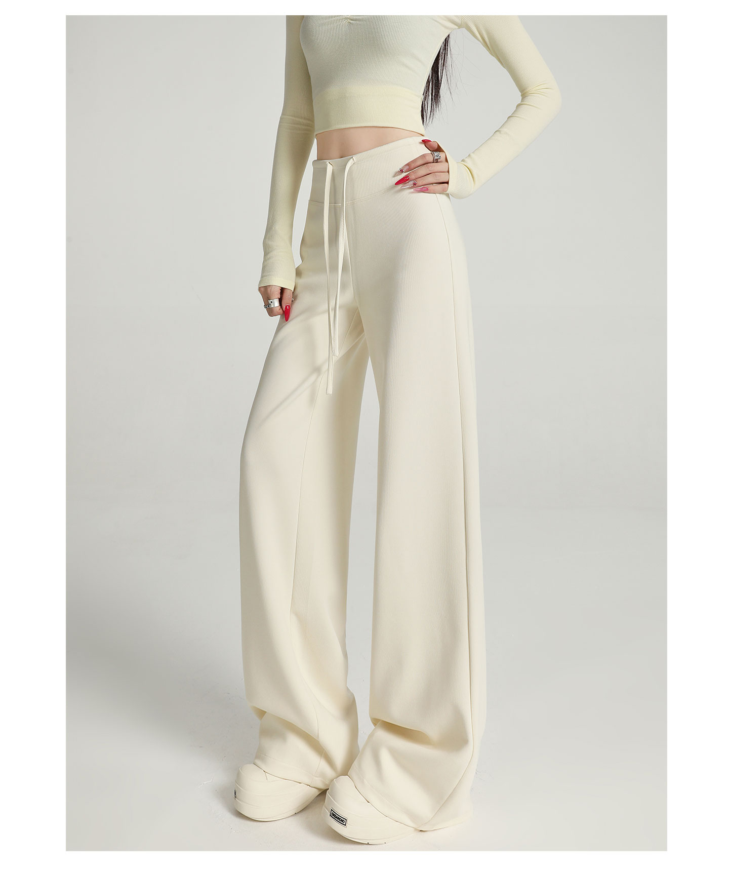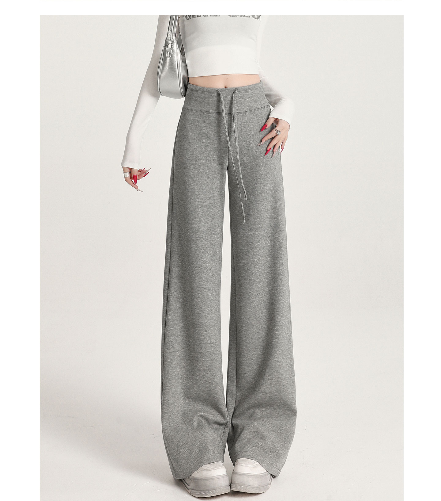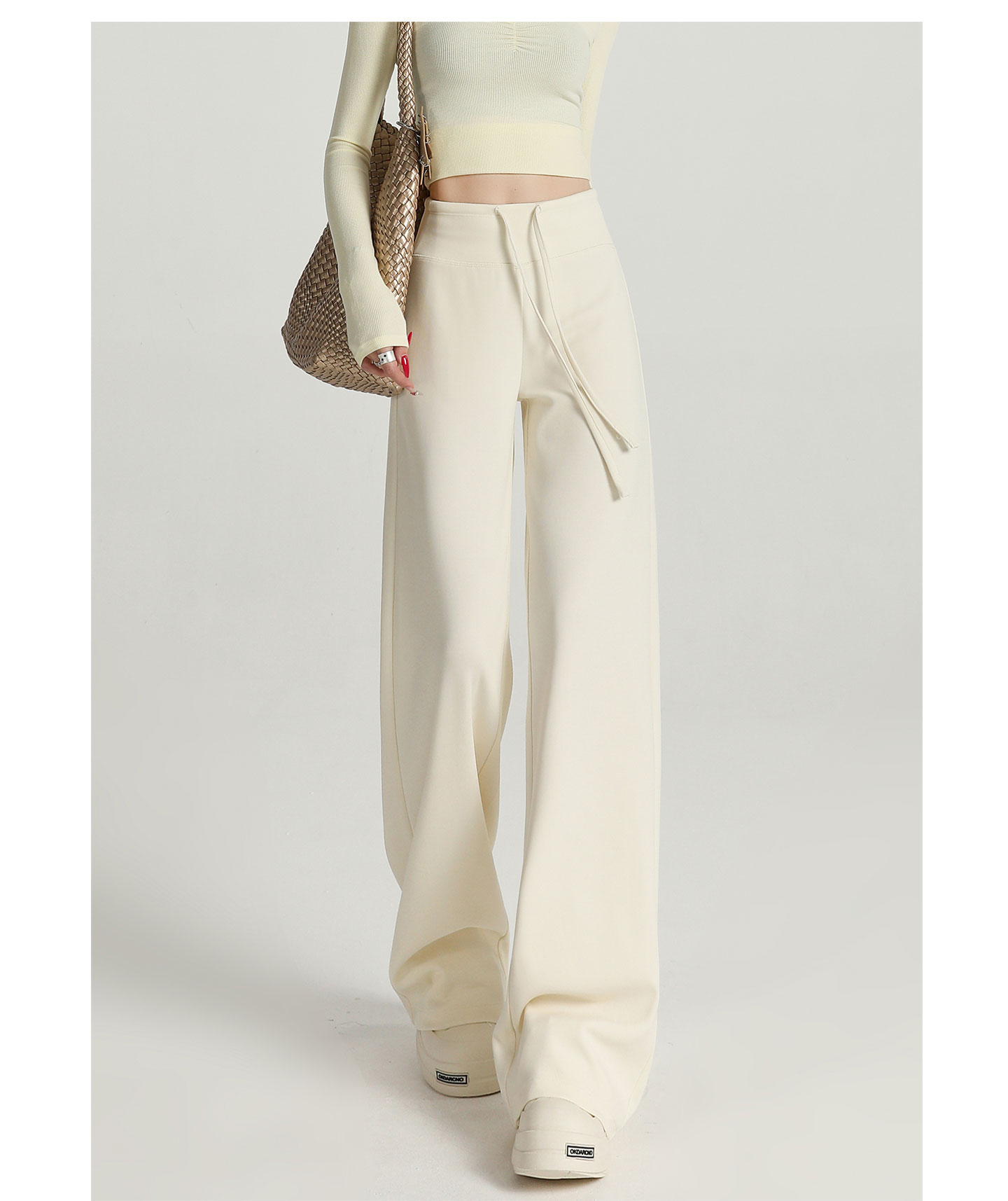 运动阔腿裤女秋季2025新款宽松直筒卫裤窄版休闲微喇瑜伽白色裤子