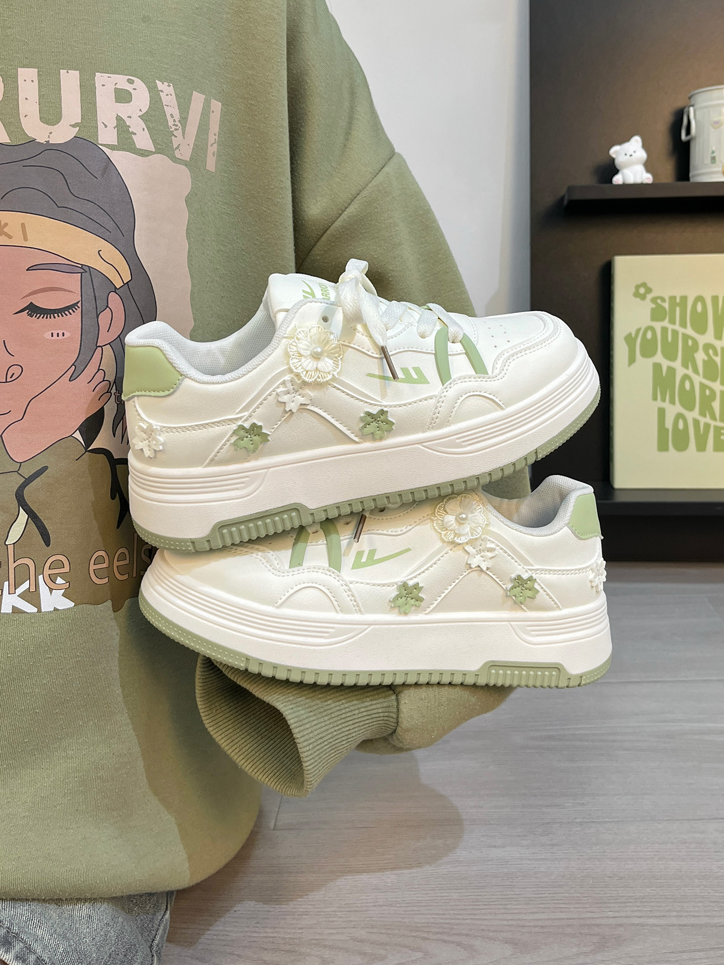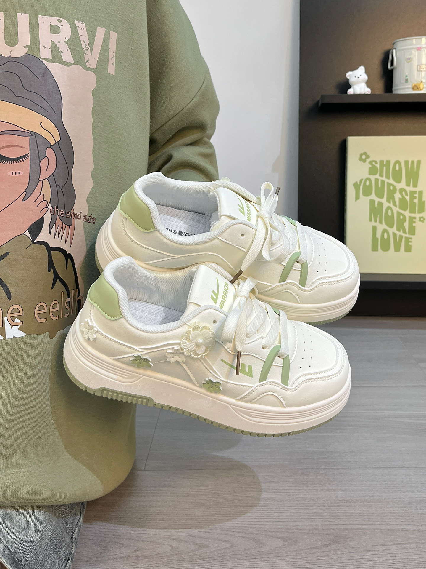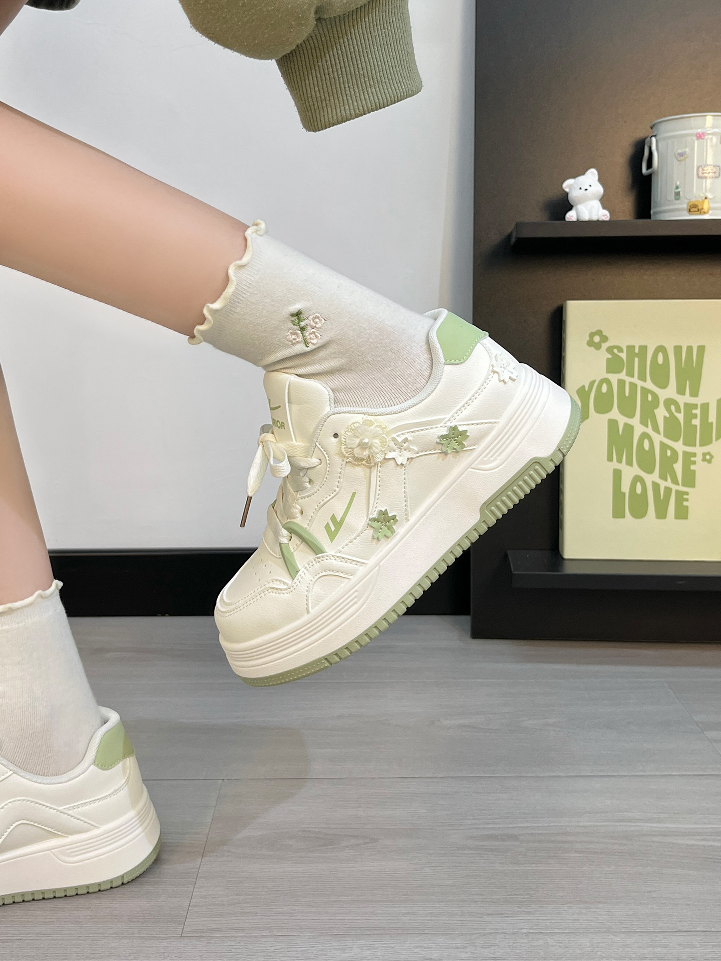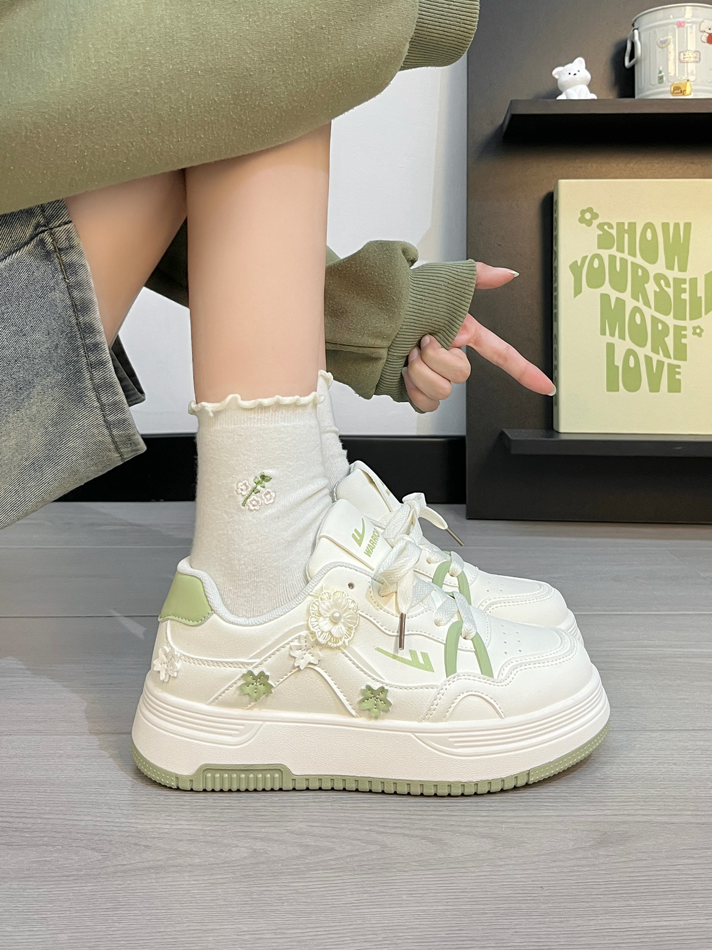 回力板鞋女款秋季2025新款爆款时尚小众设计厚底碎花休闲小白鞋子