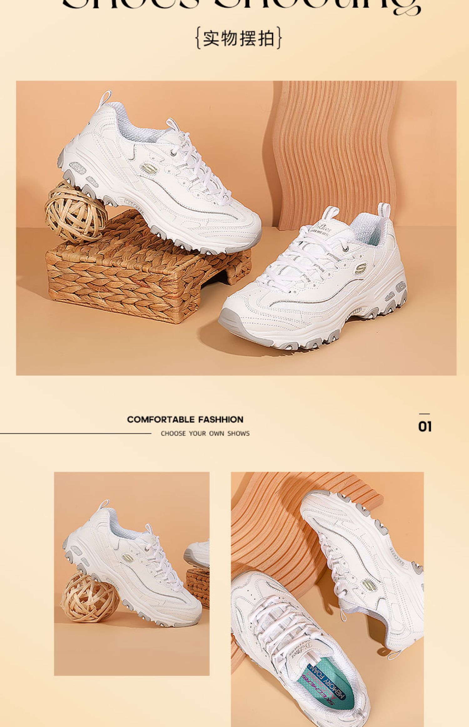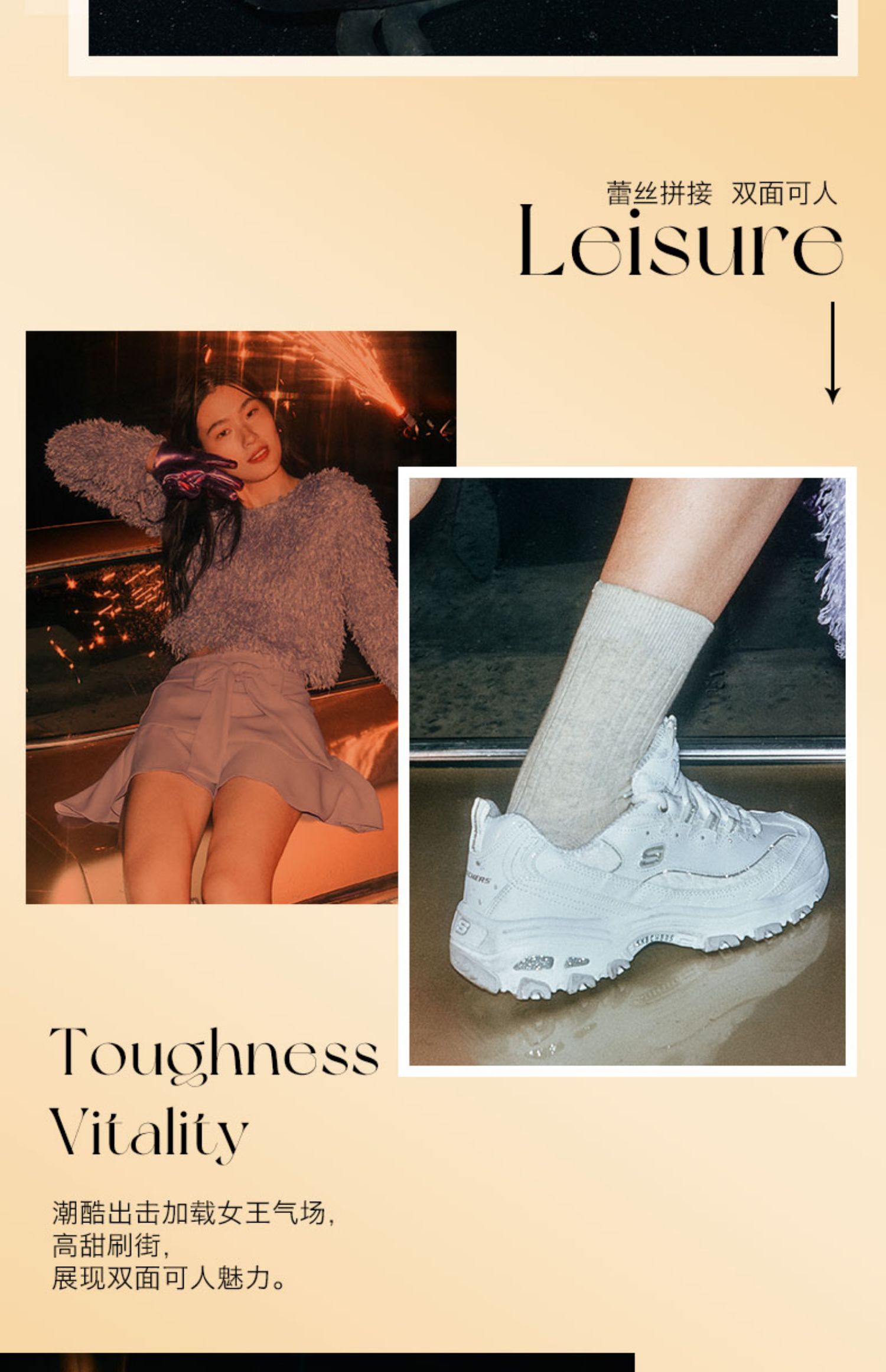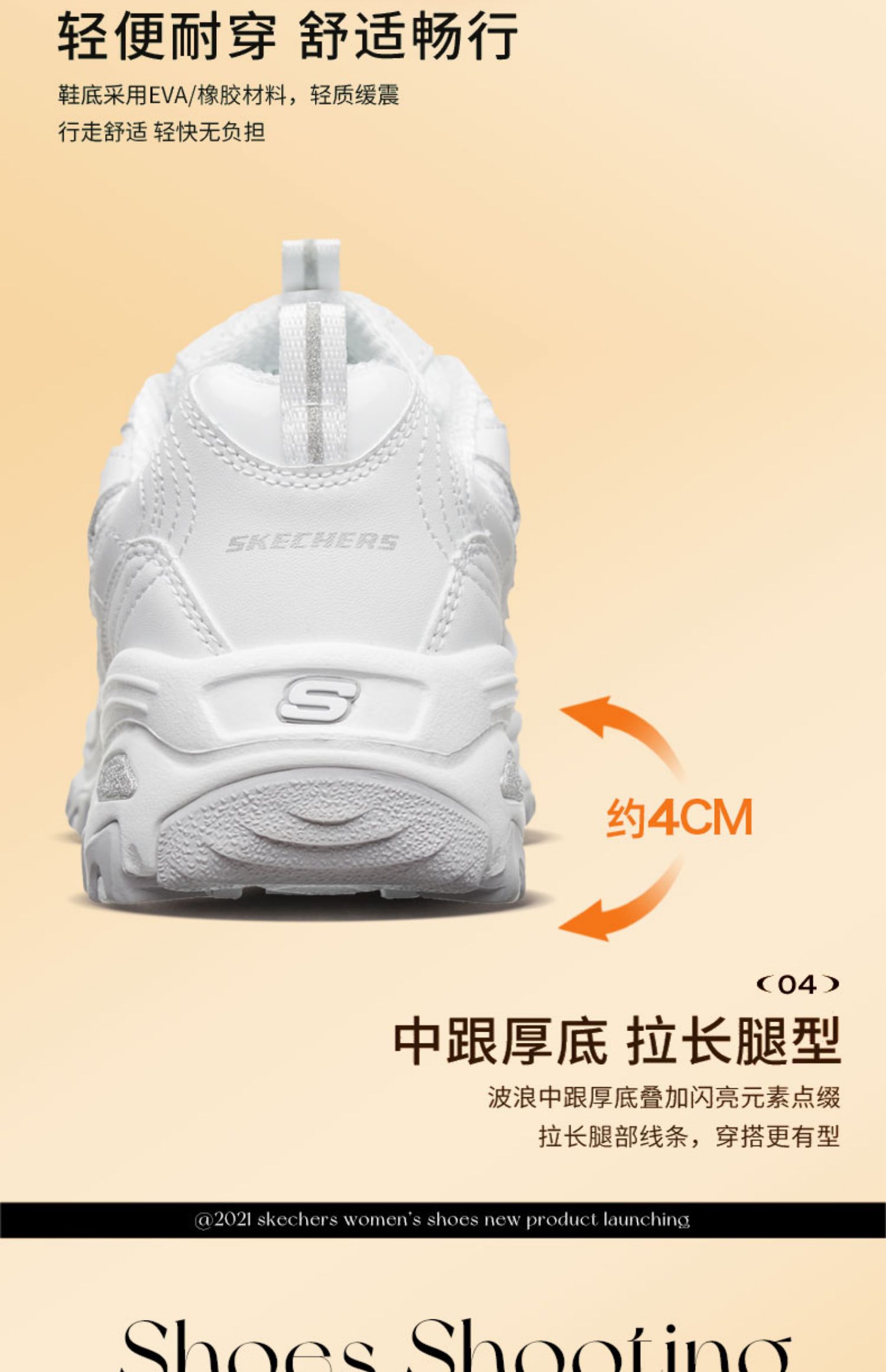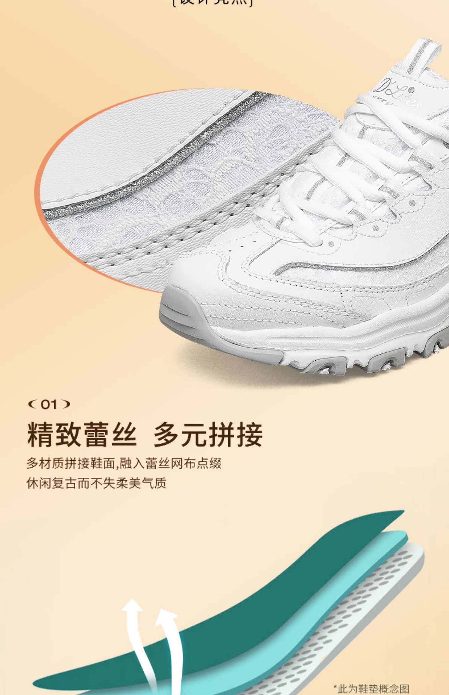 斯凯奇女鞋秋冬新款休闲百搭运动鞋熊猫鞋蕾丝熊正品小白鞋老爹鞋