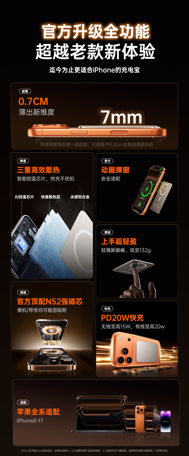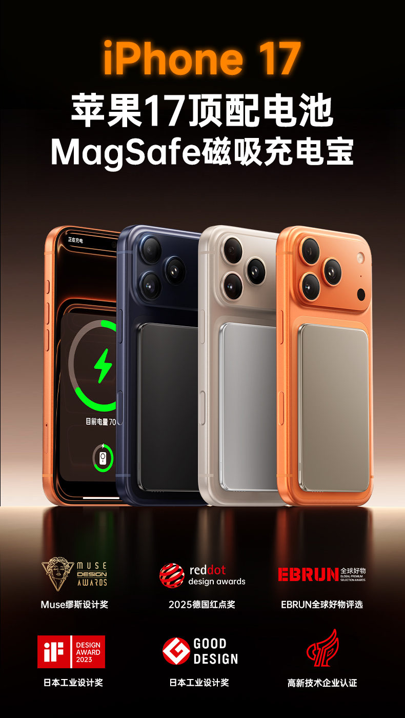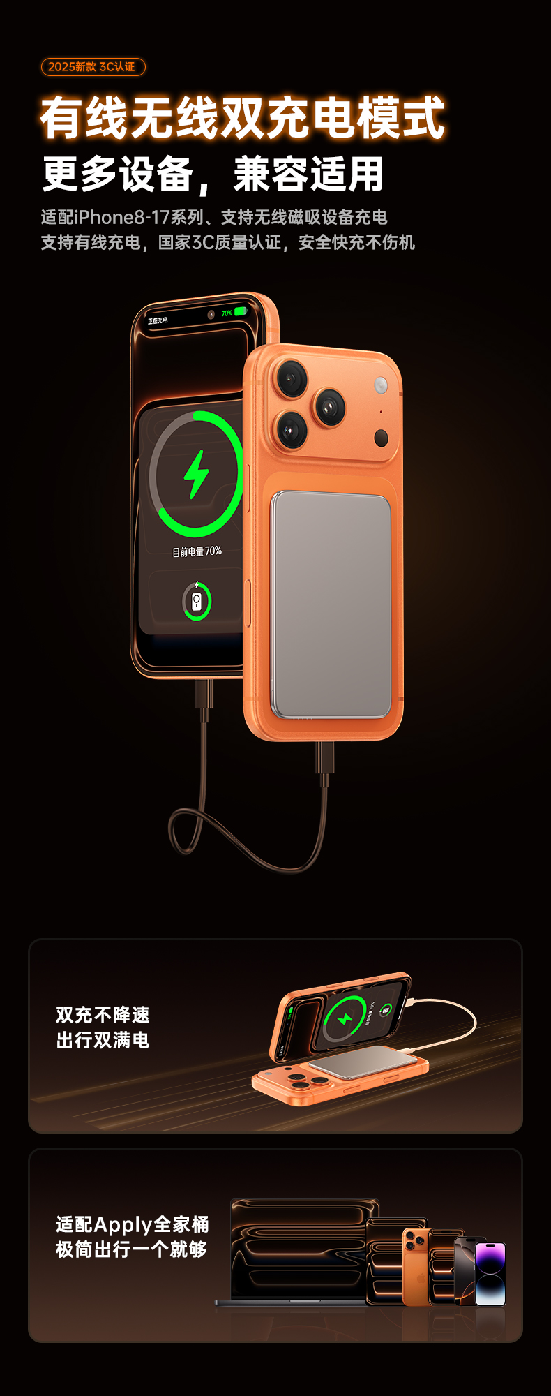 【国家3C认证可上飞机】超薄磁吸充电宝适用苹果iphone17promax官方magsafe无线快充16专用移动电源2025新款4