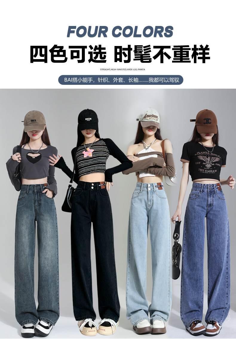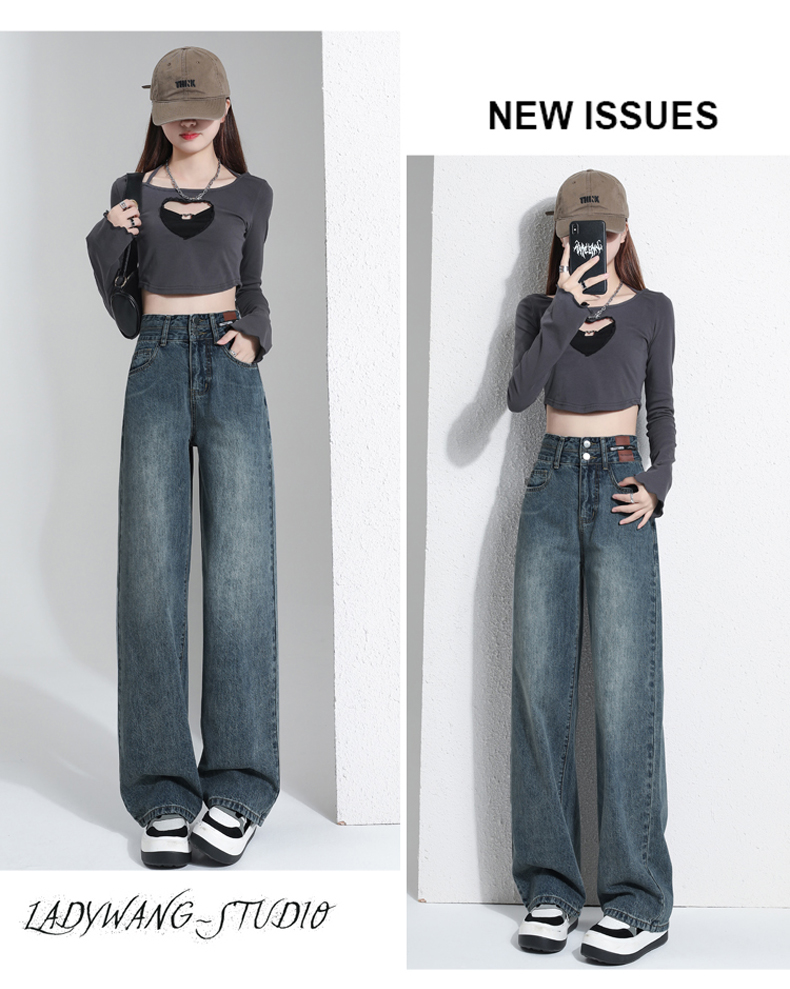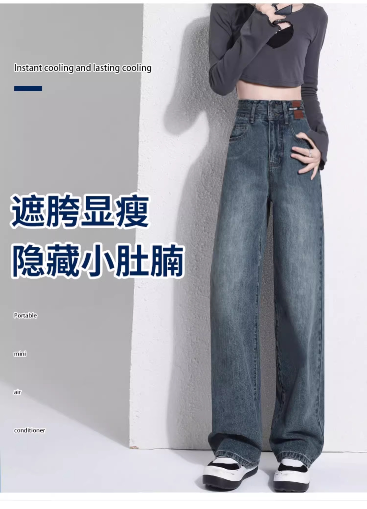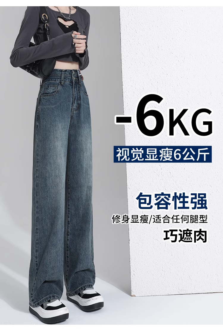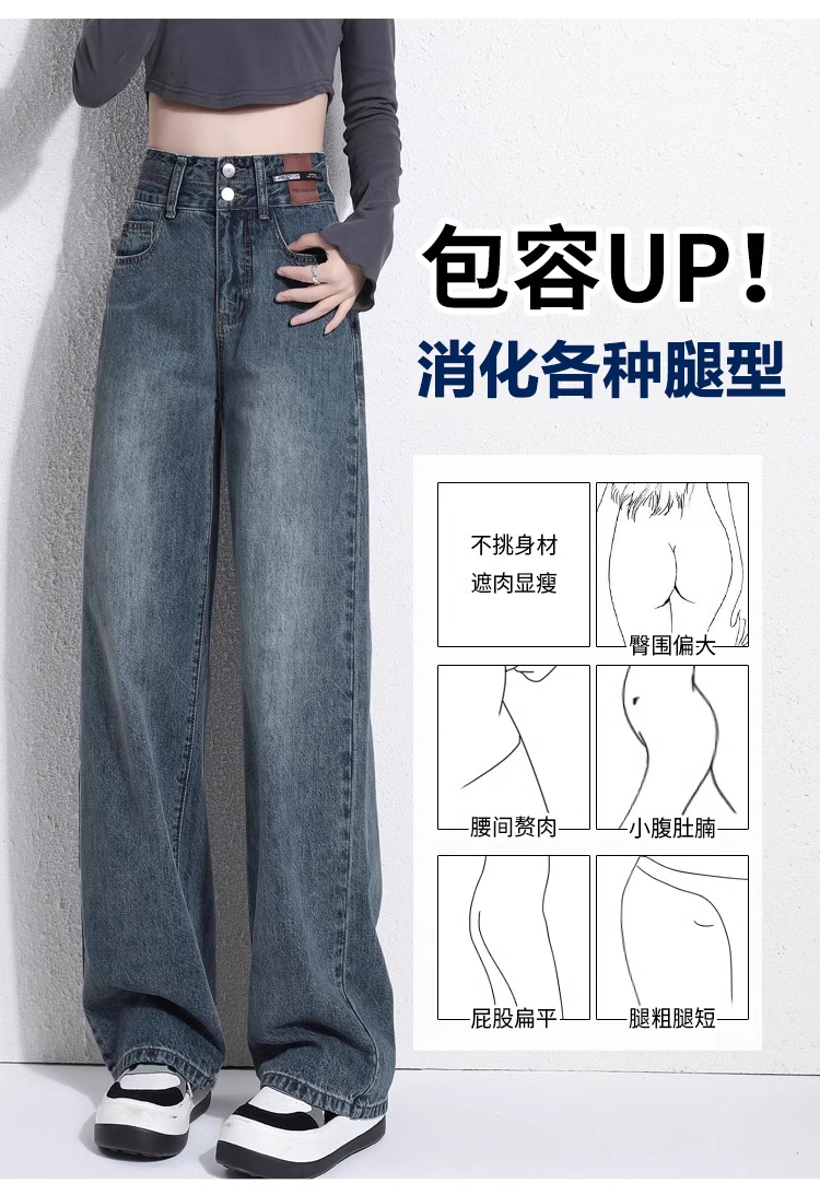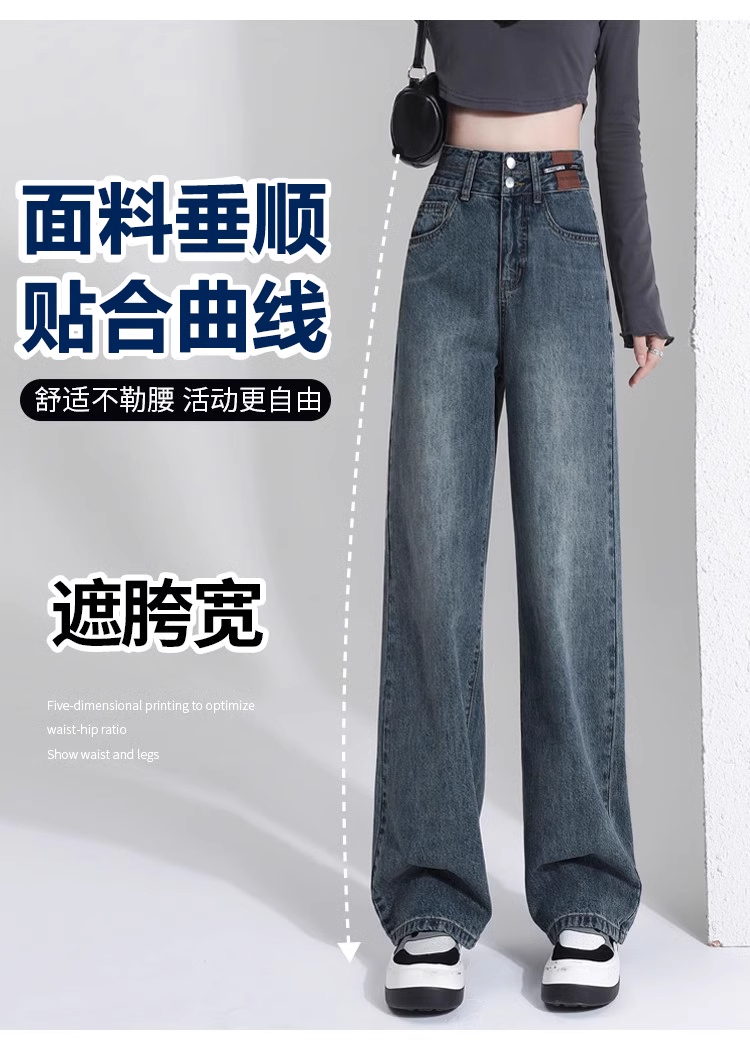 遮胯高腰阔腿牛仔裤女春秋2025新款粗腿宽胯显瘦复古窄版直筒裤子