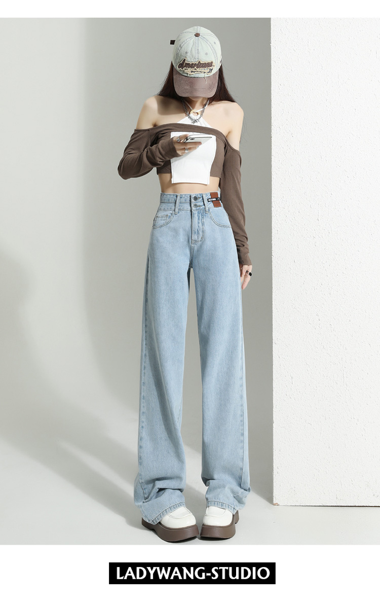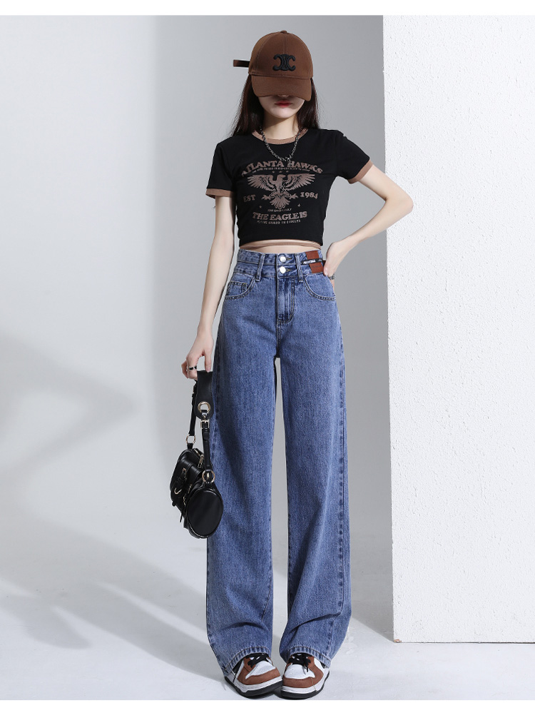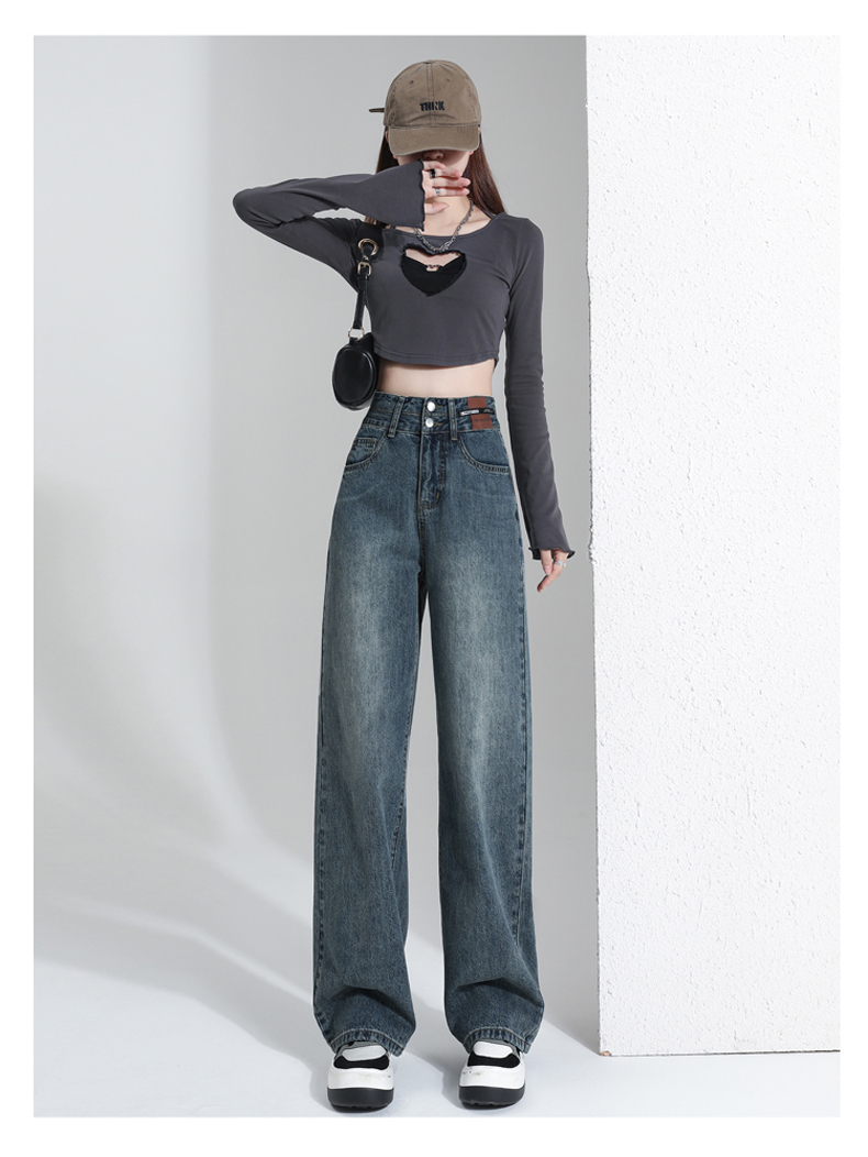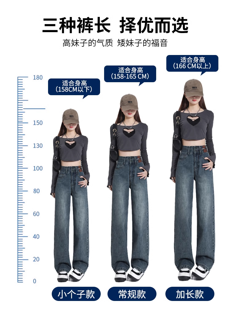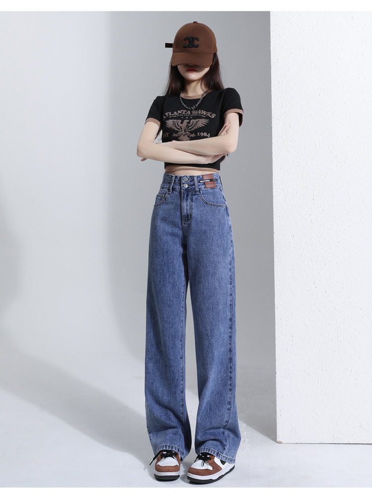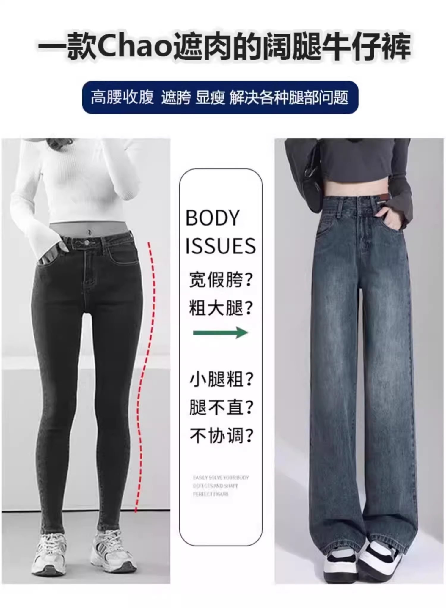 遮胯高腰阔腿牛仔裤女春秋2025新款粗腿宽胯显瘦复古窄版直筒裤子