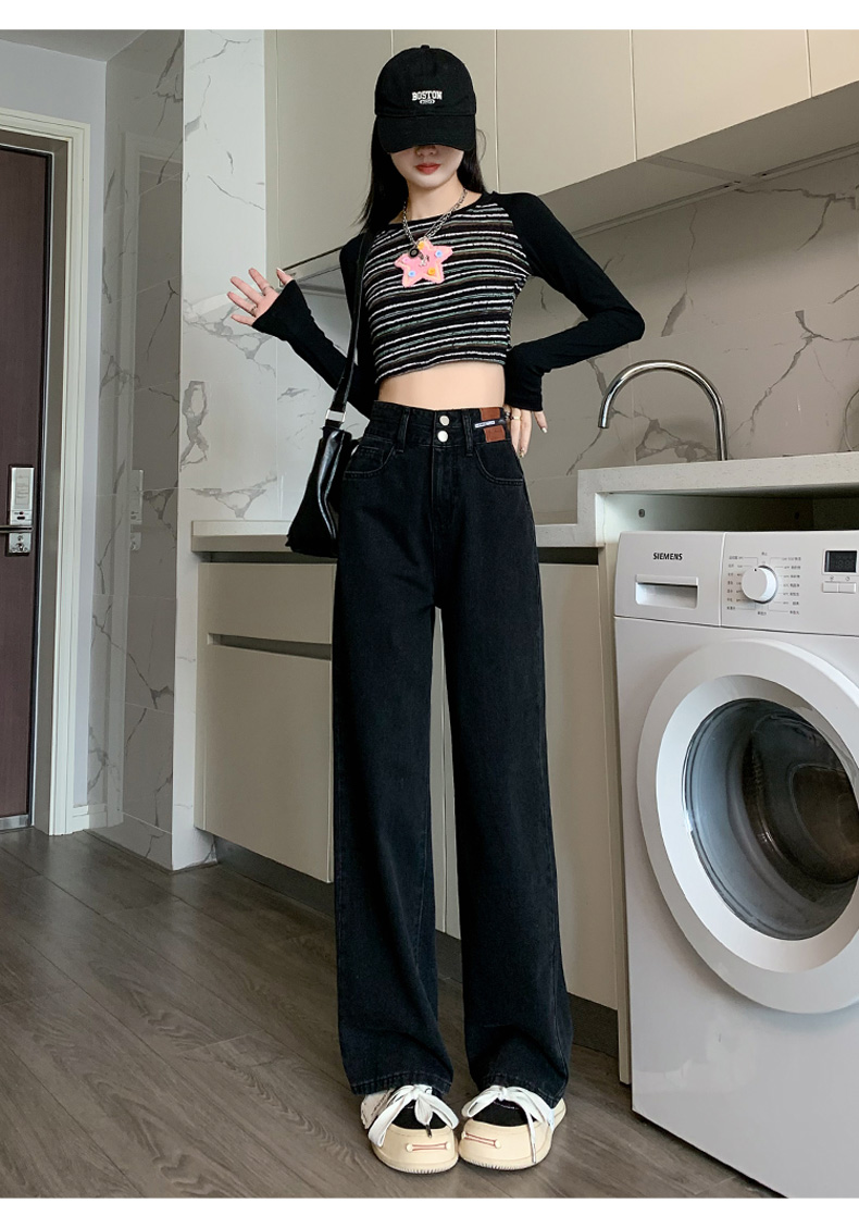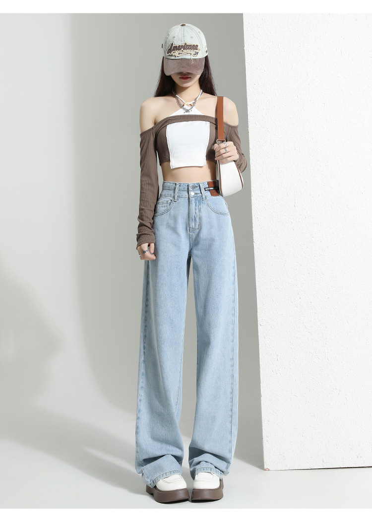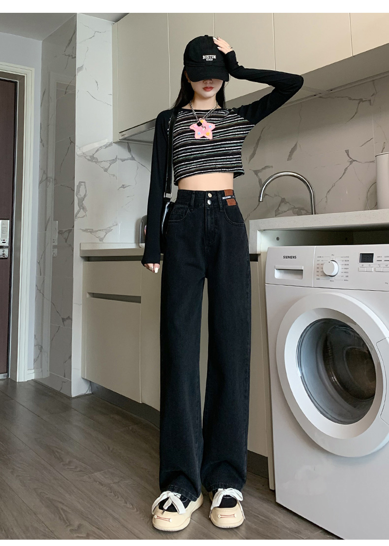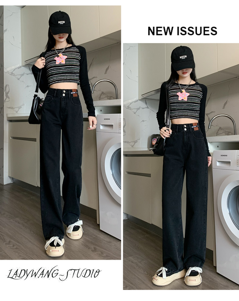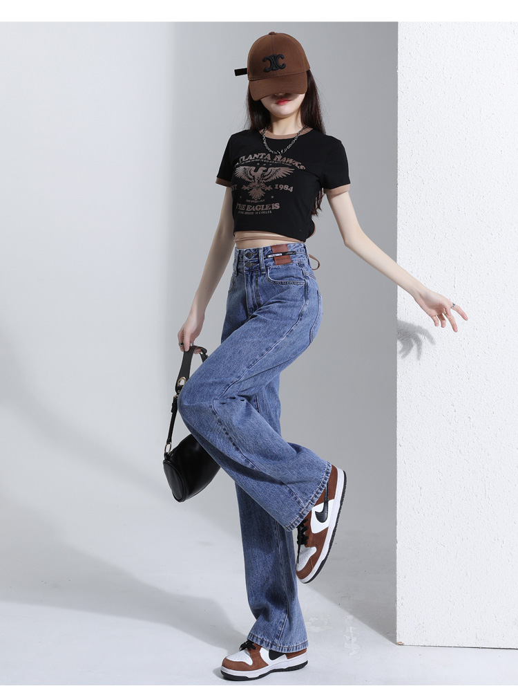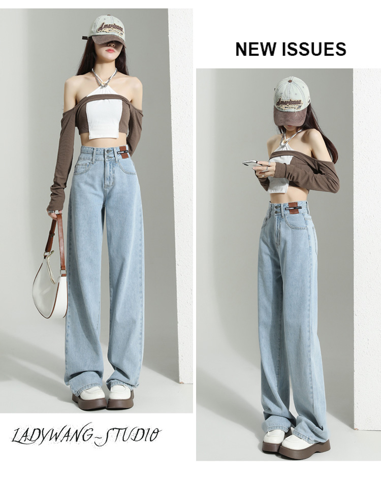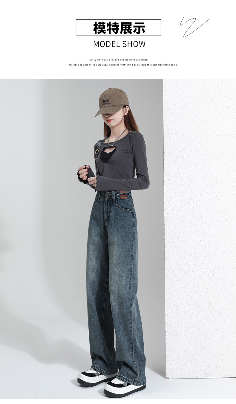 遮胯高腰阔腿牛仔裤女春秋2025新款粗腿宽胯显瘦复古窄版直筒裤子