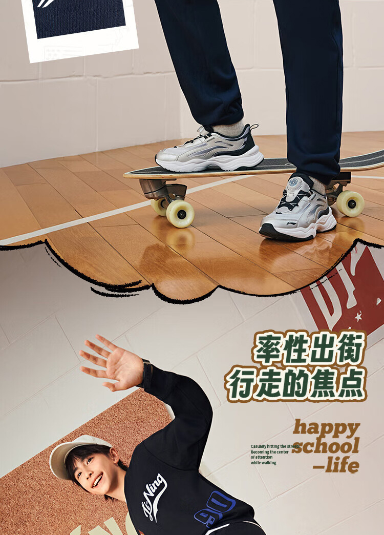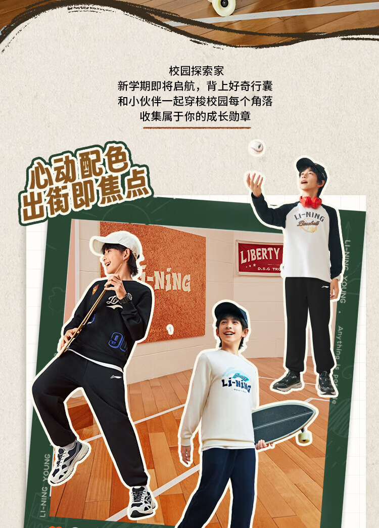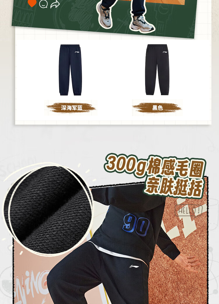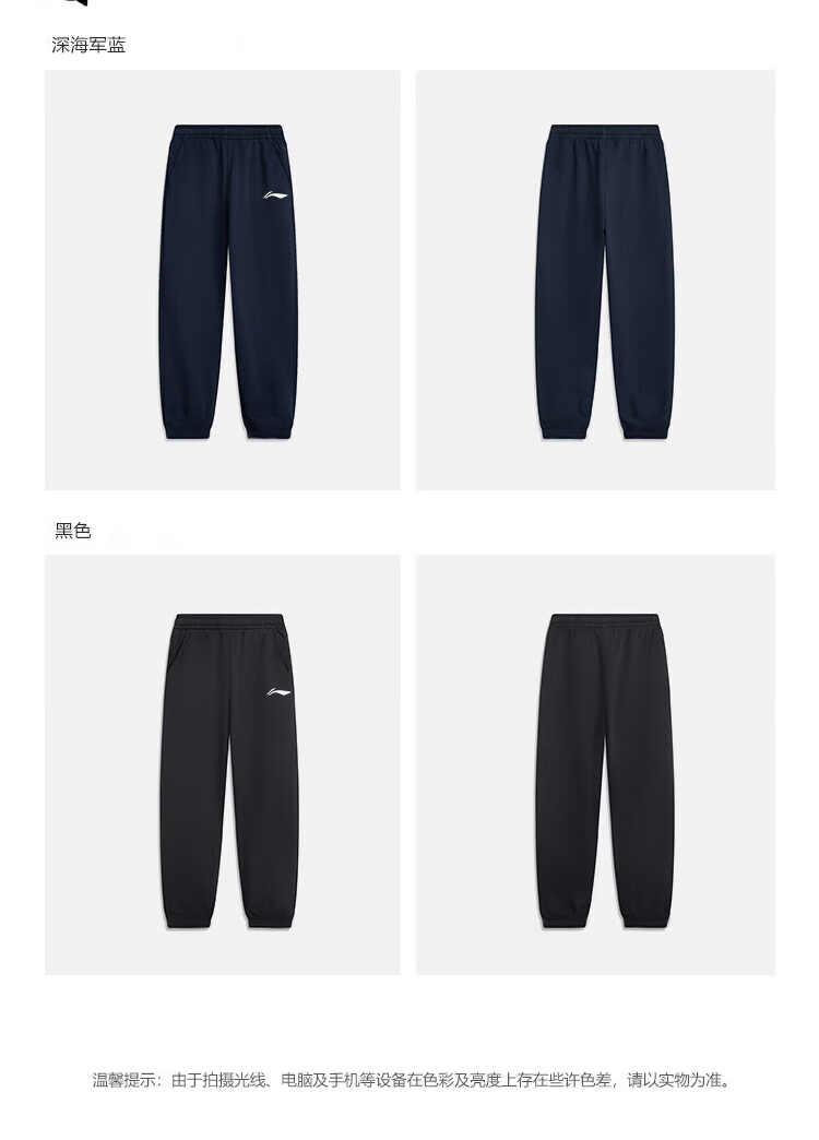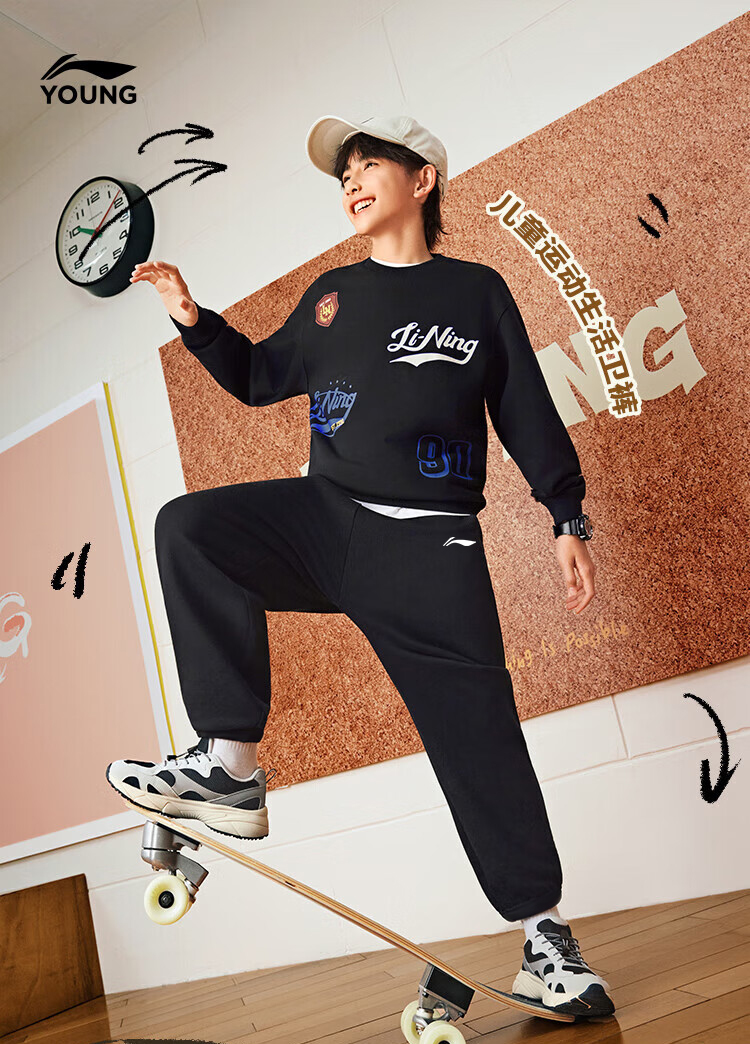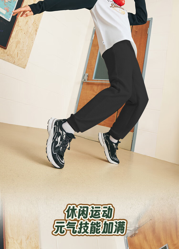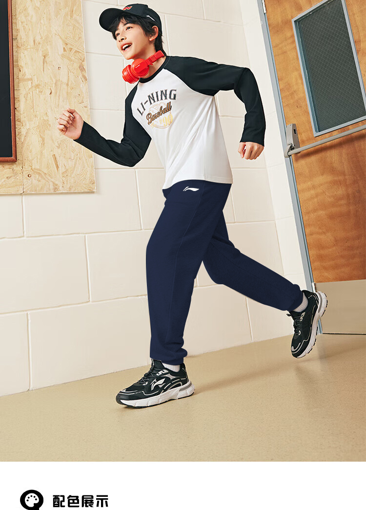 李宁童装男女大童卫裤2025秋季新款休闲透气舒适校园运动束口长裤