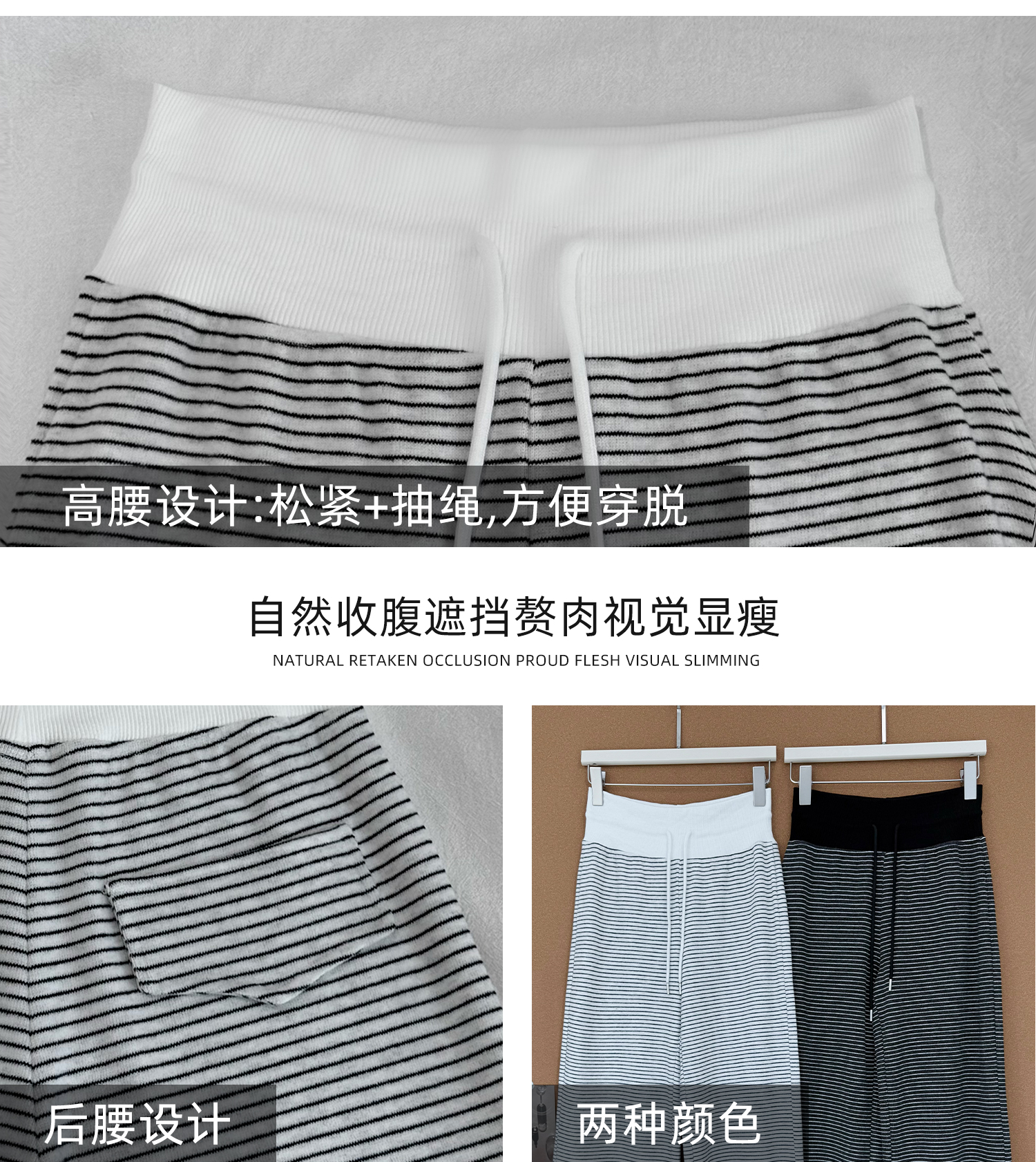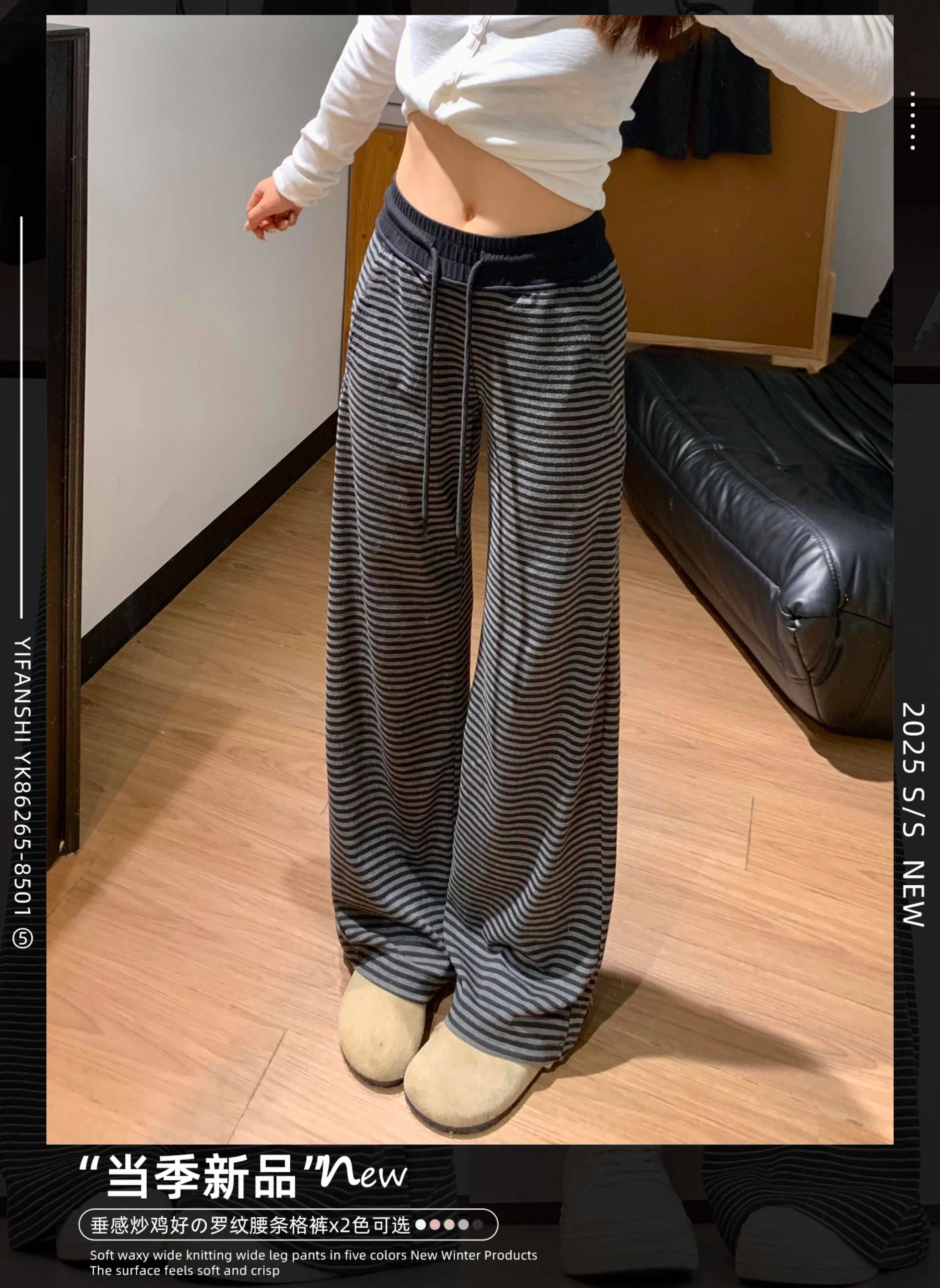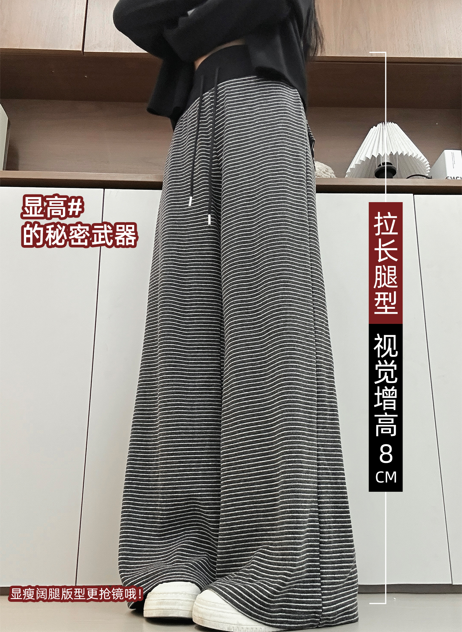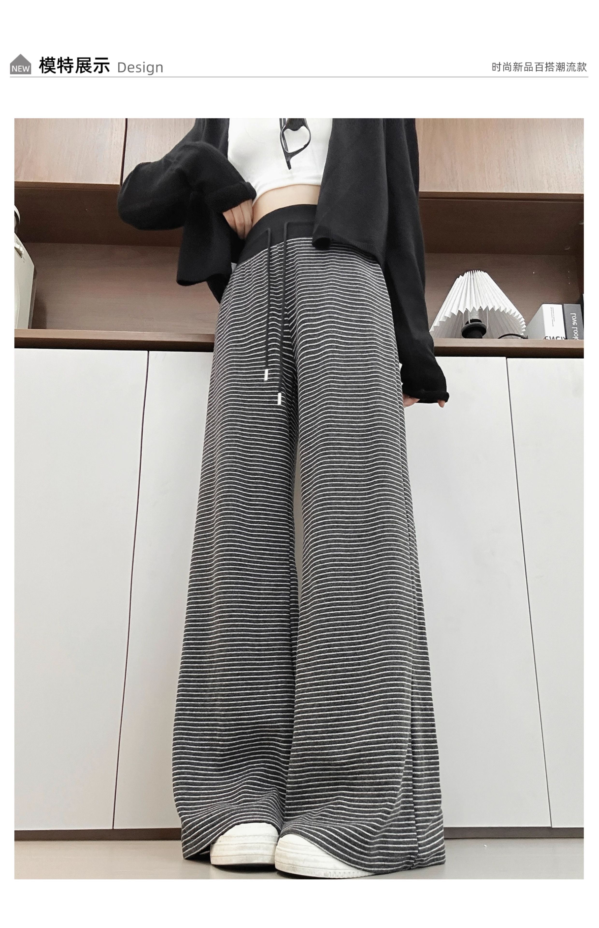灰色美式条纹阔腿裤女秋季2025新款小个子高腰显瘦垂感宽松运动裤