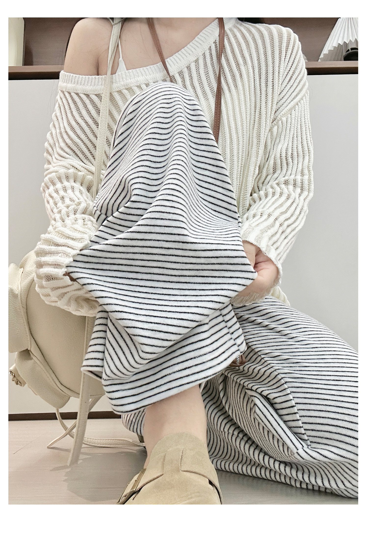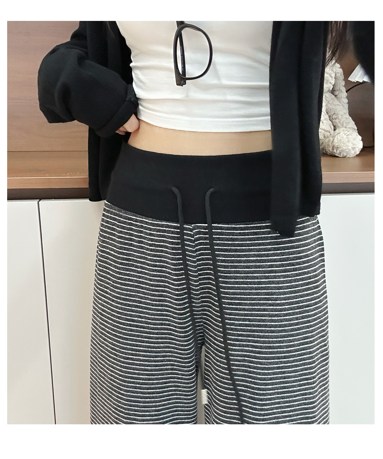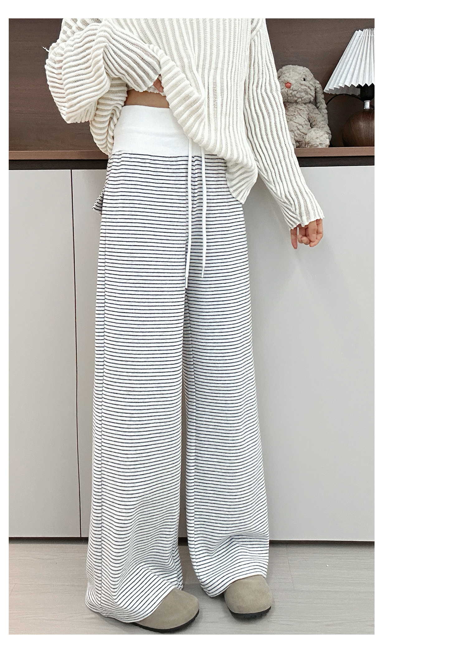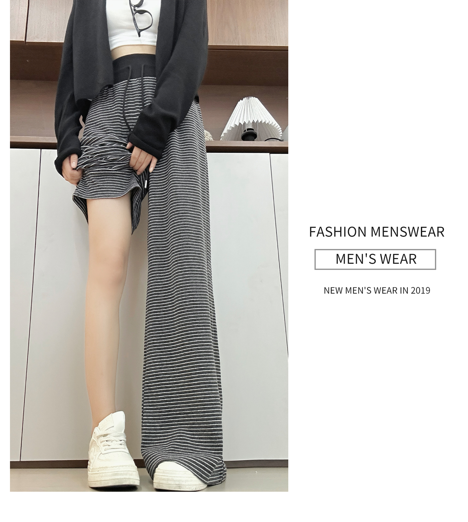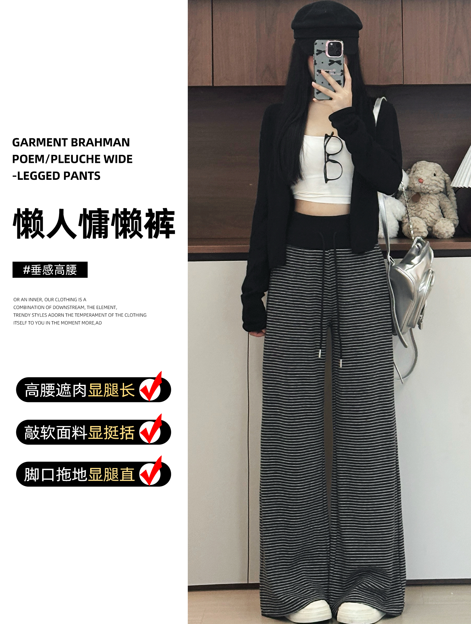 灰色美式条纹阔腿裤女秋季2025新款小个子高腰显瘦垂感宽松运动裤