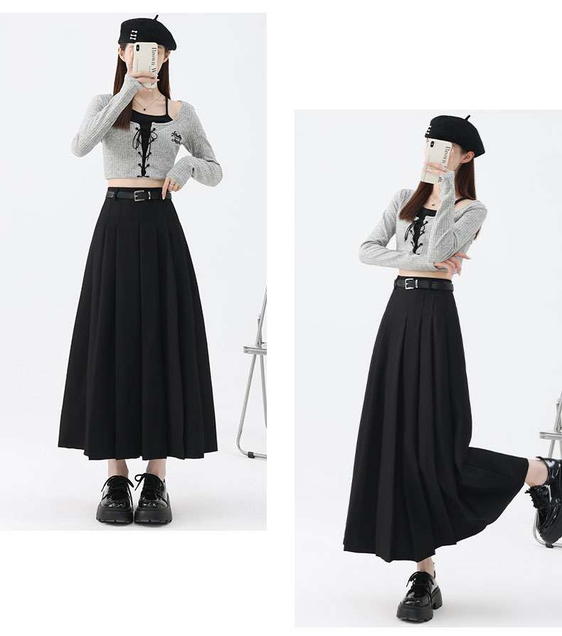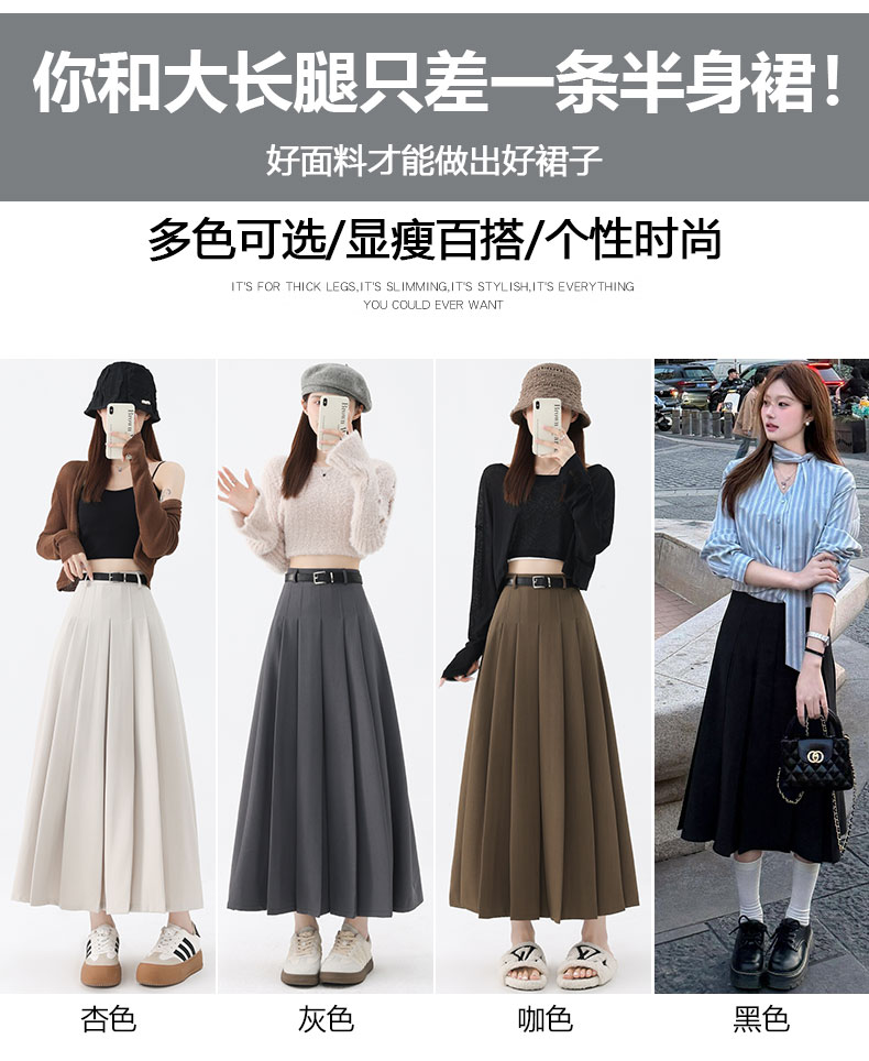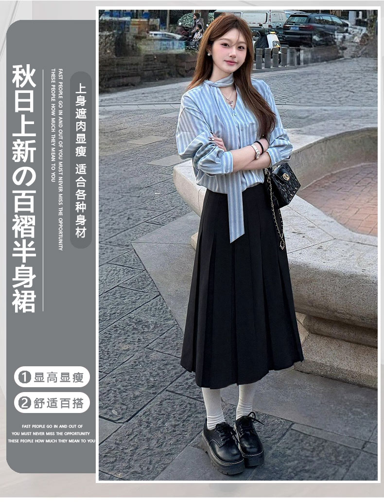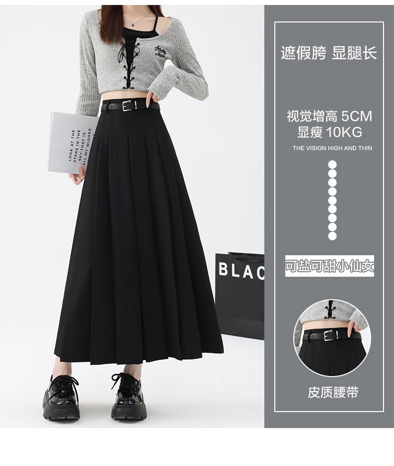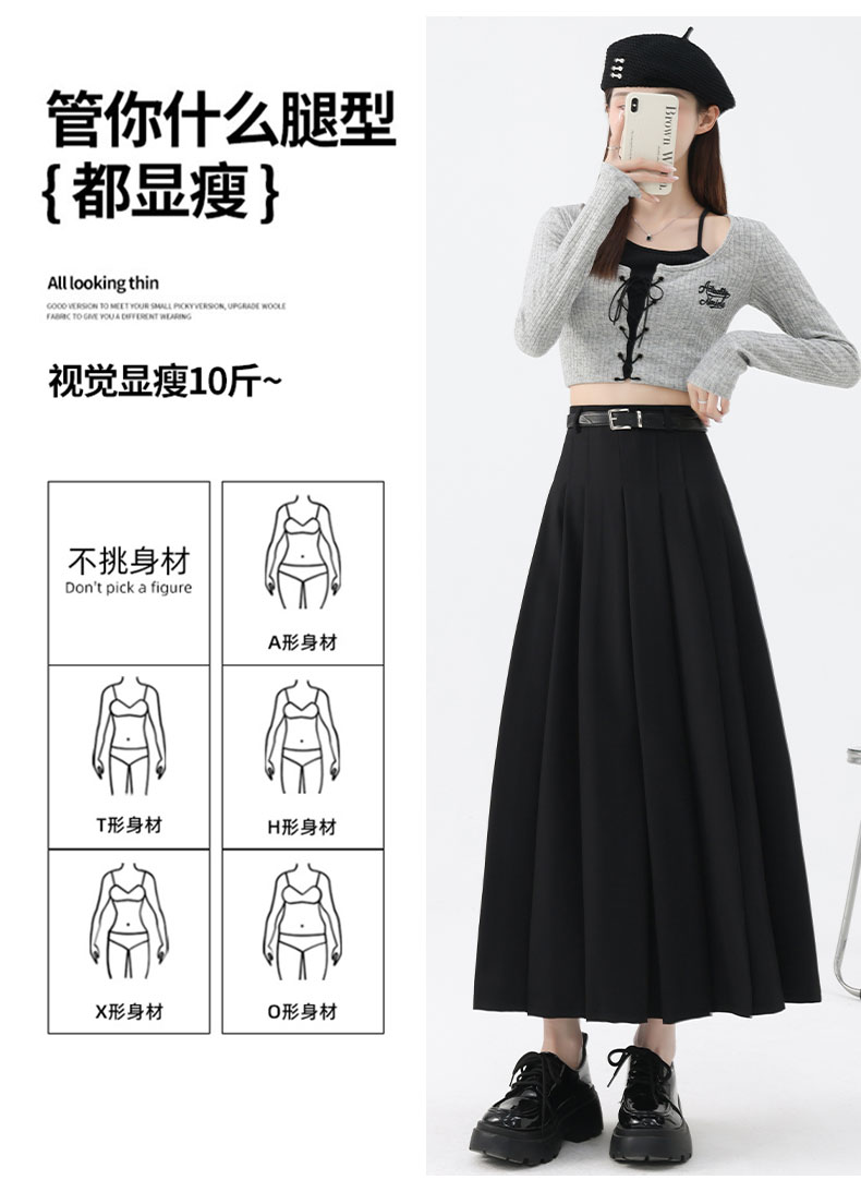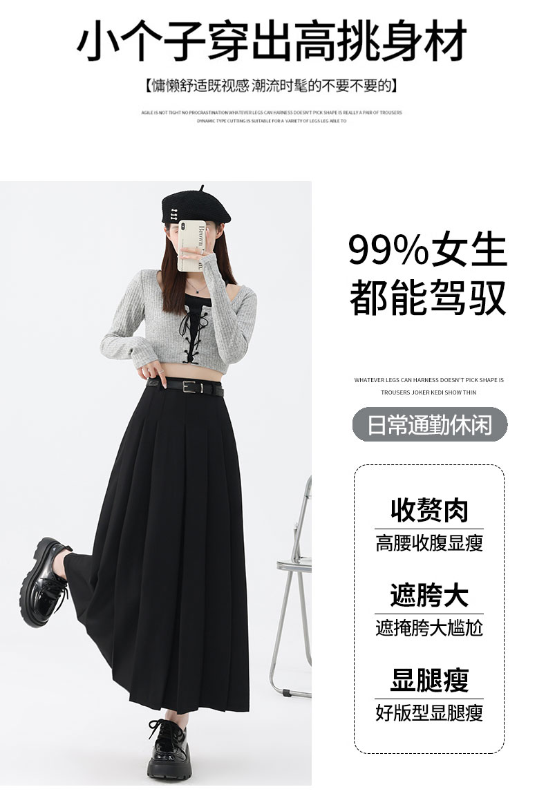 黑色西装百褶裙女秋季2025新款高腰显瘦巨好看的中长款a字半身裙