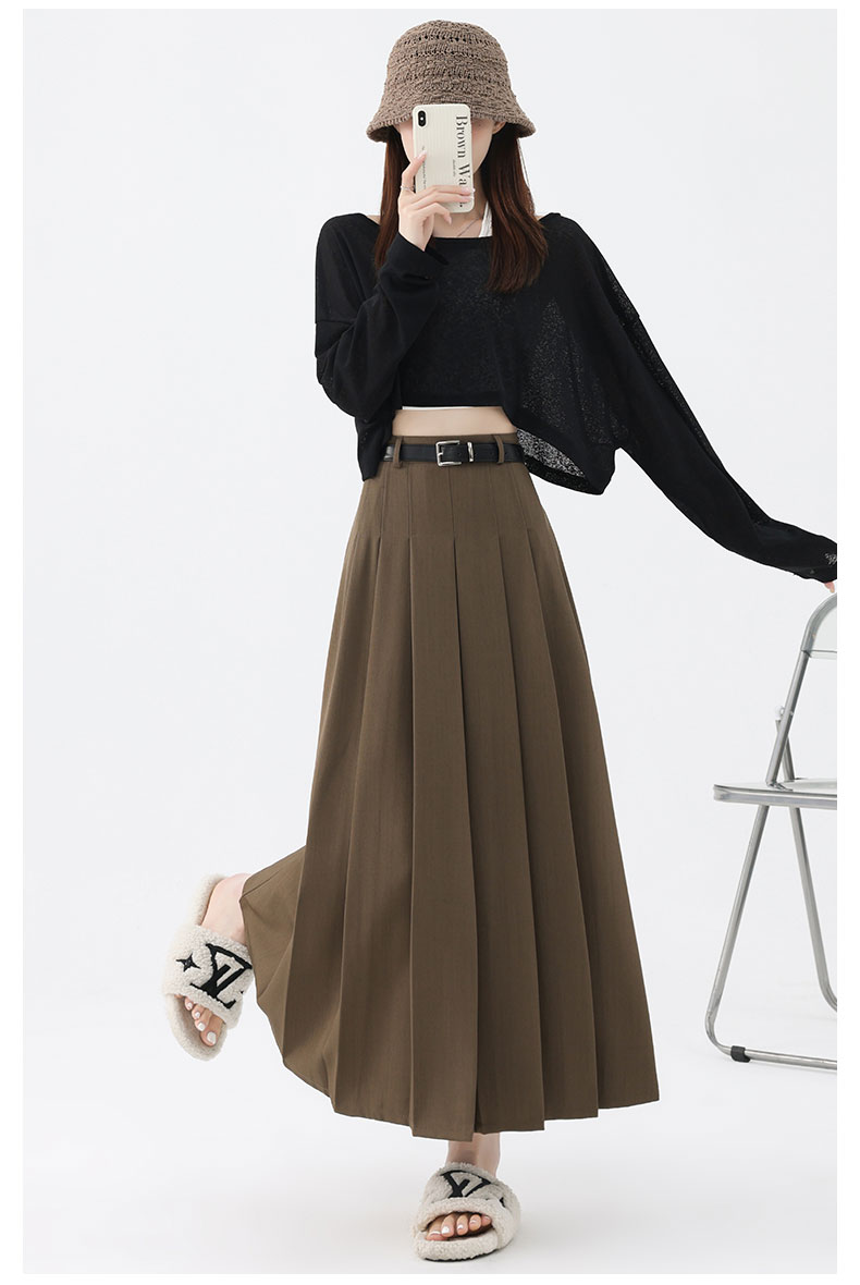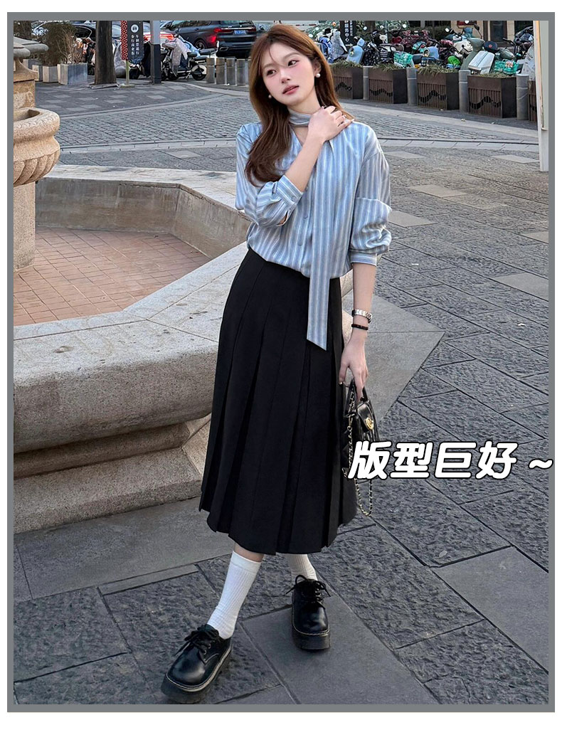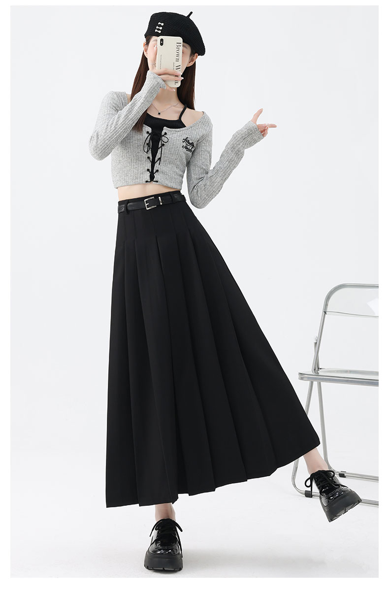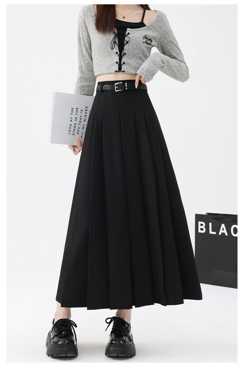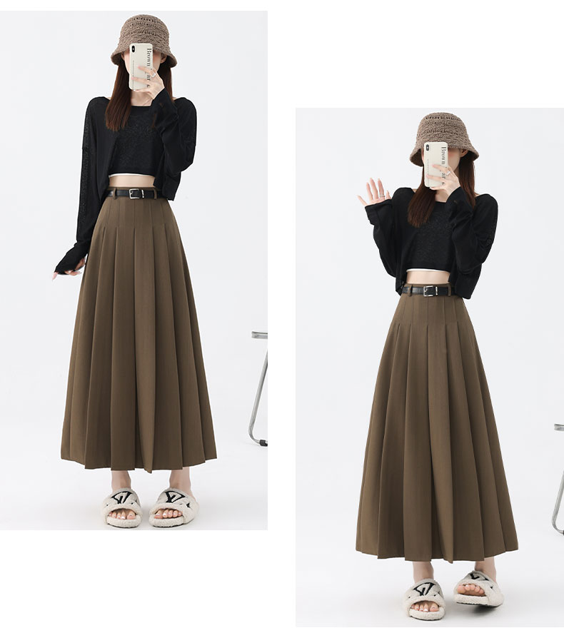 黑色西装百褶裙女秋季2025新款高腰显瘦巨好看的中长款a字半身裙