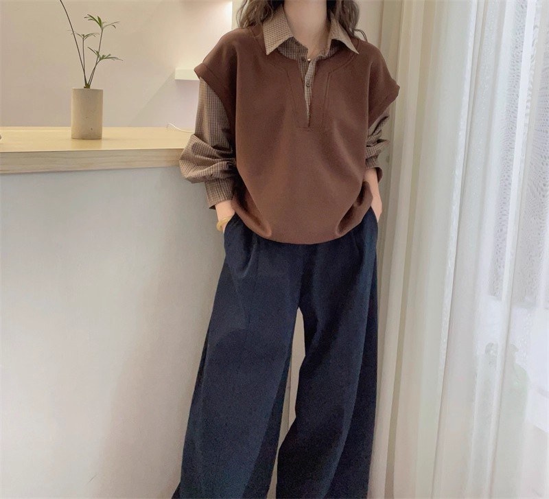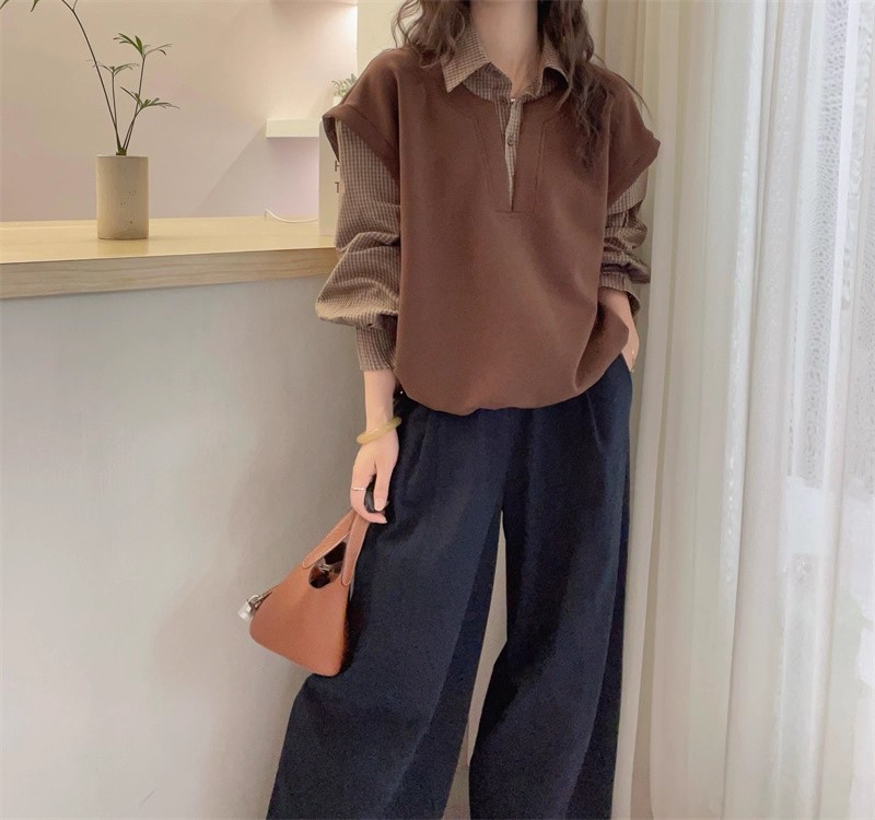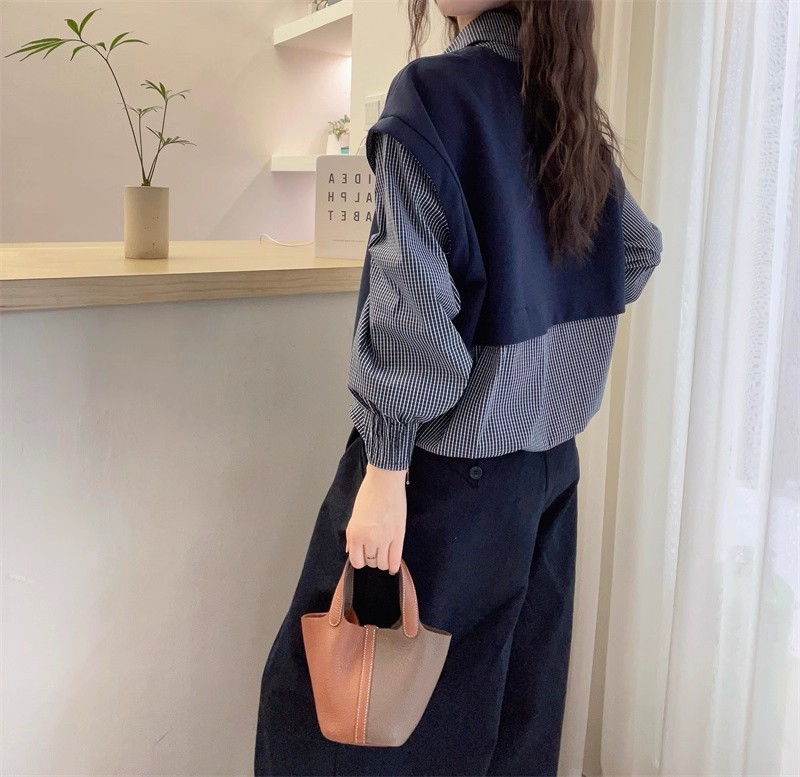 韩版宽松显瘦百搭休闲复古格子衬衫女2025秋季假两件工装长袖上衣