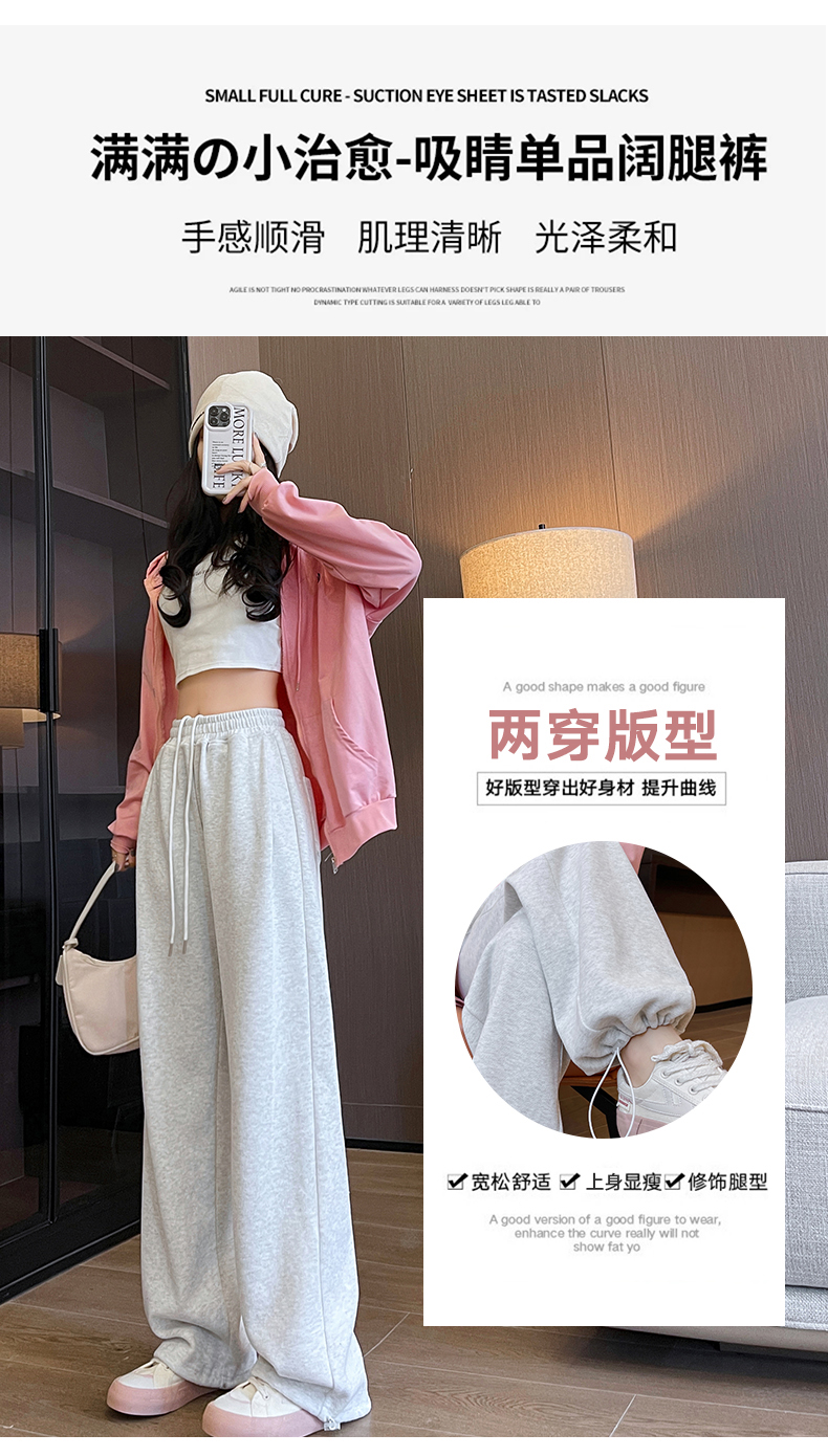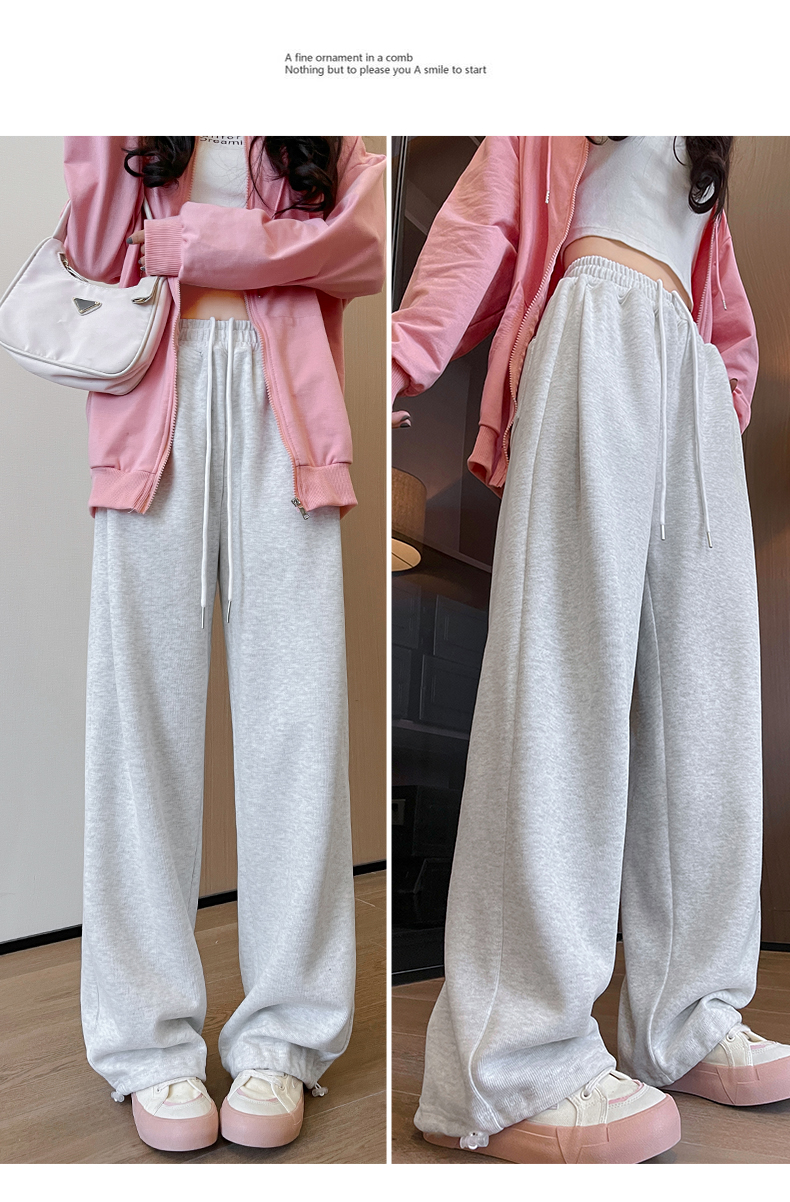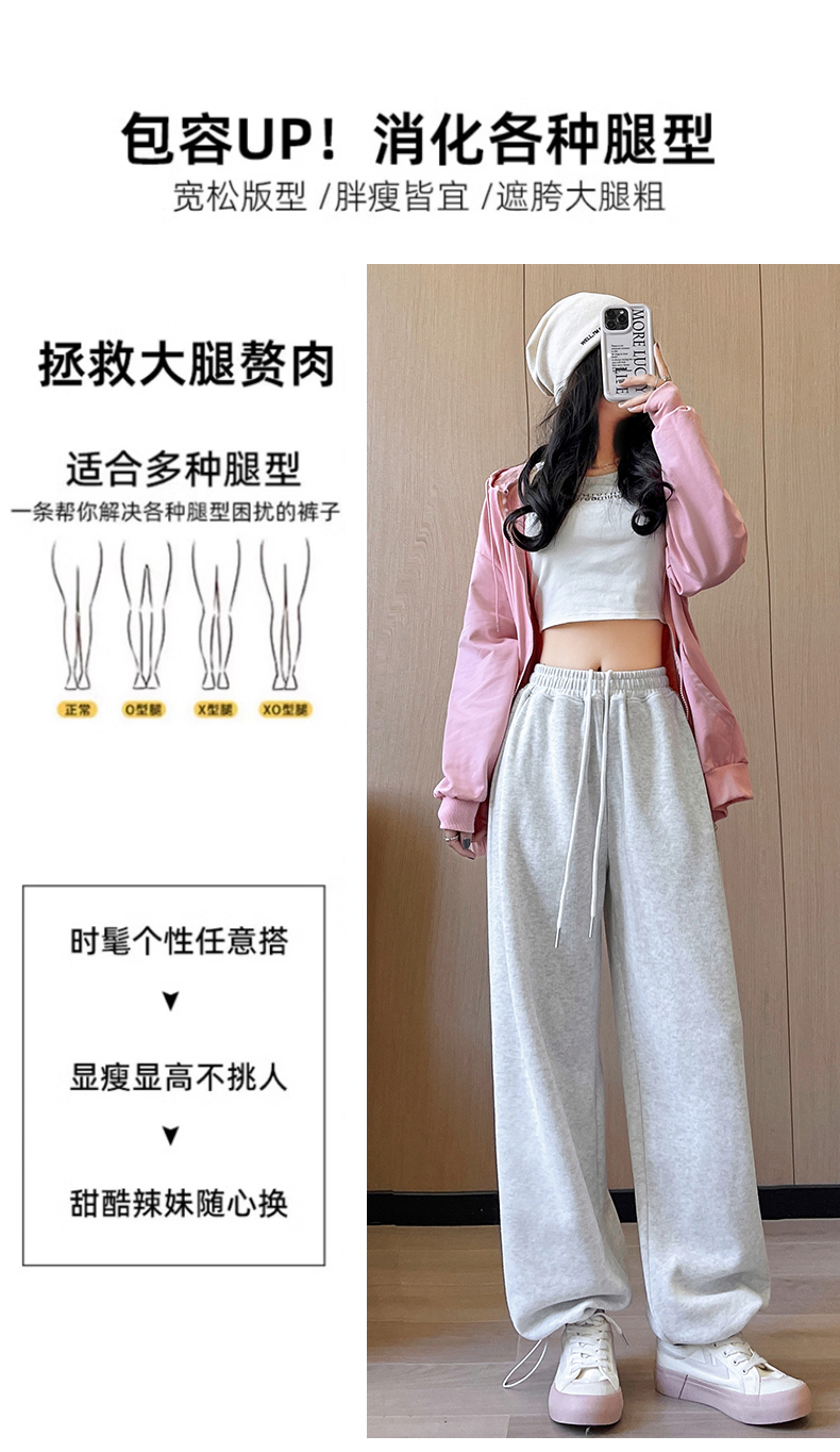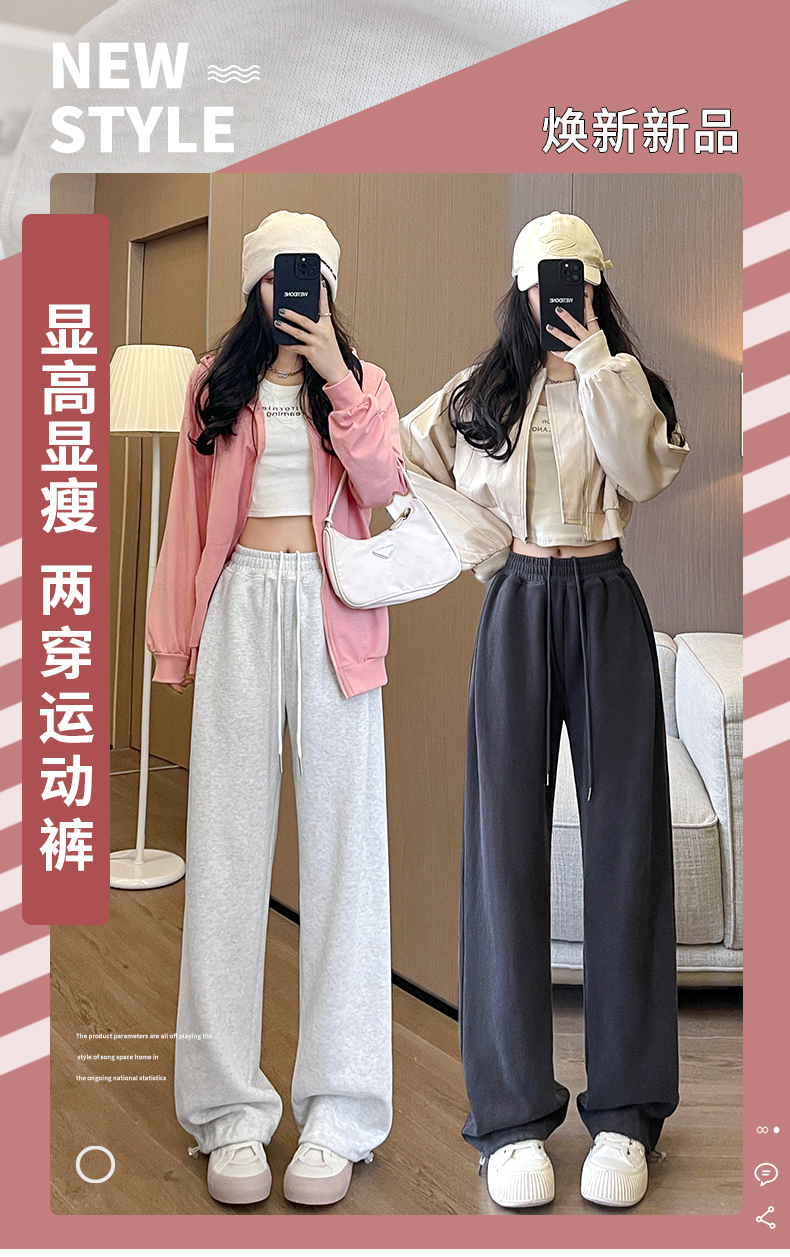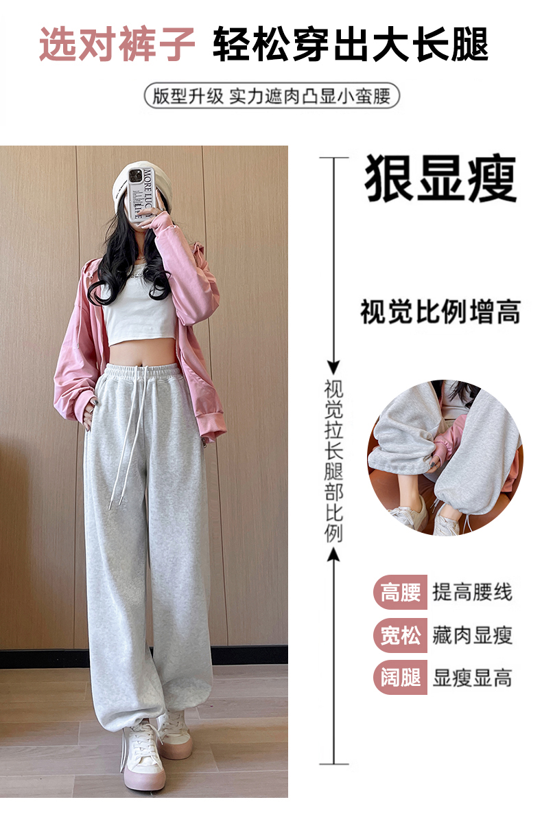运动裤女春秋2025新款高腰休闲宽松直筒阔腿裤束脚两穿白灰色卫裤