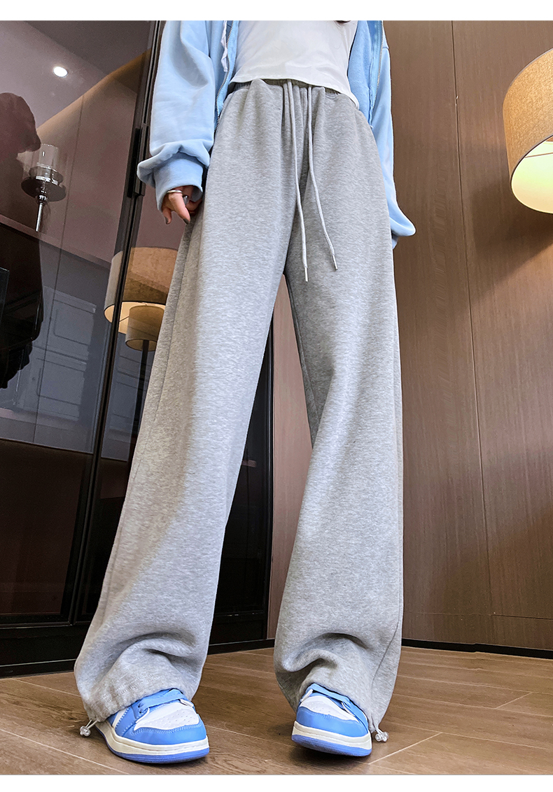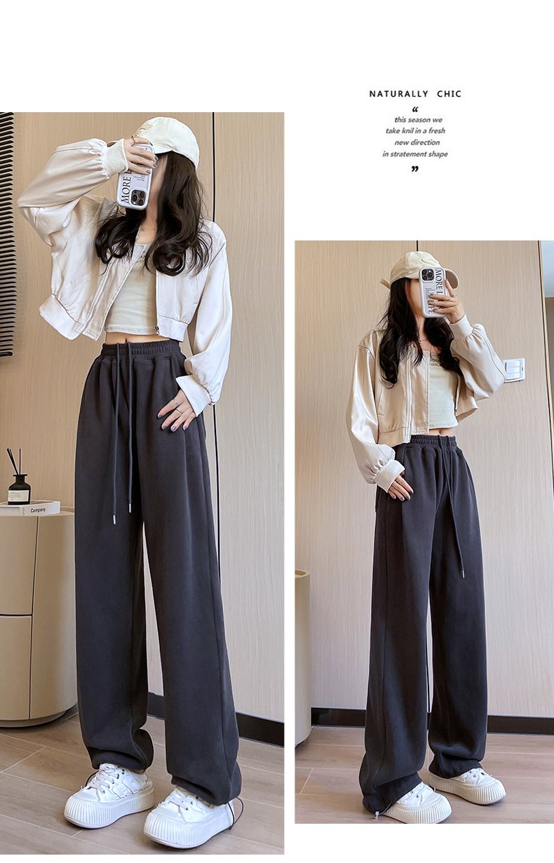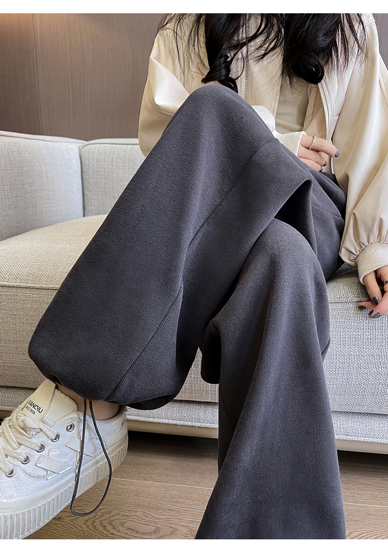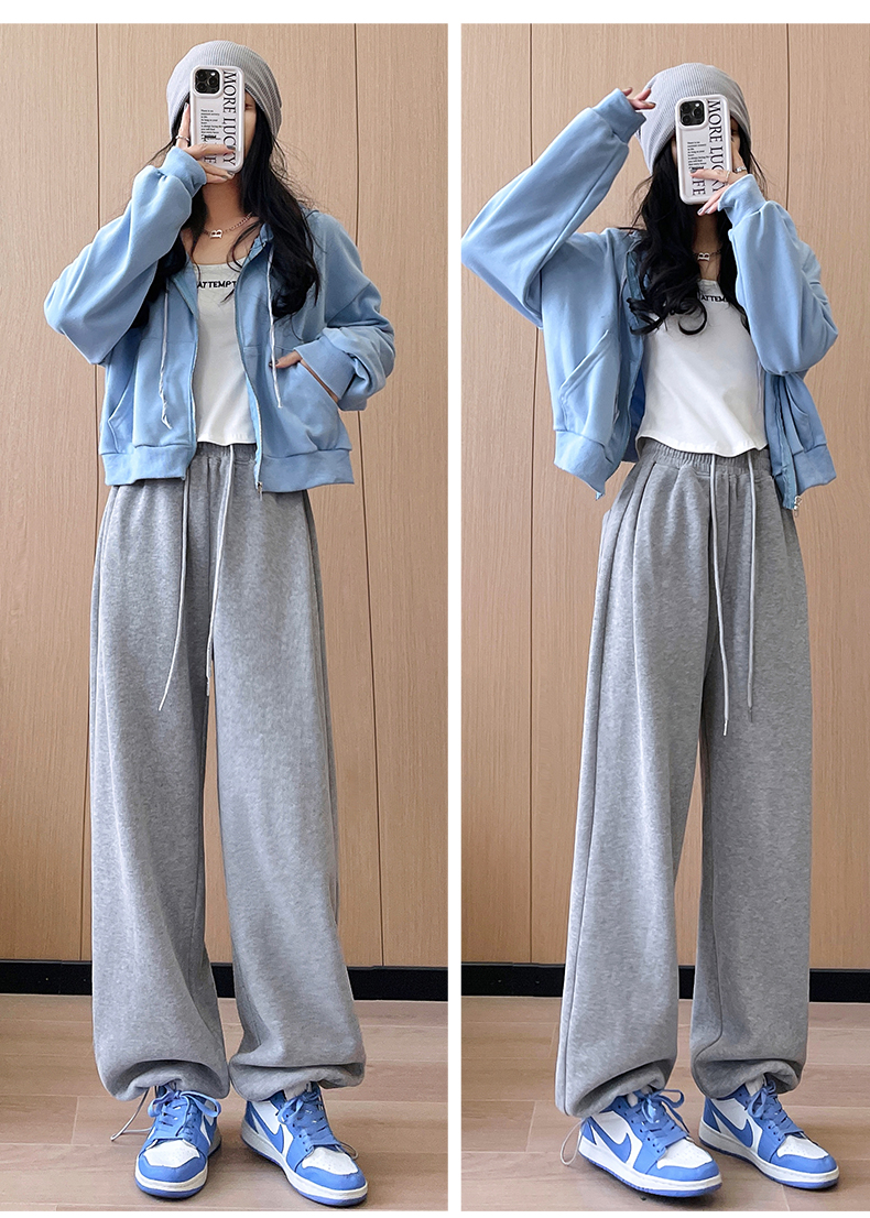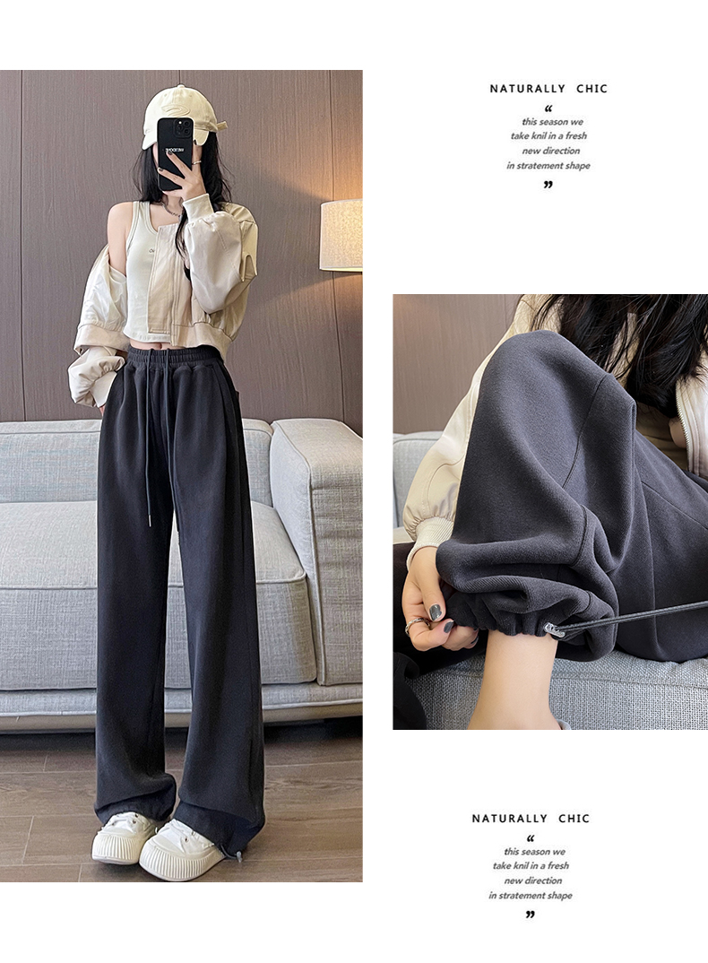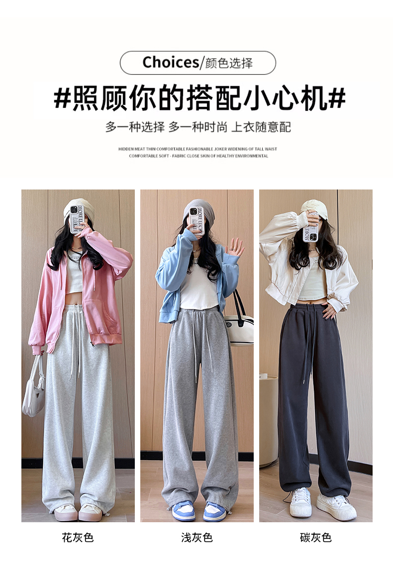 运动裤女春秋2025新款高腰休闲宽松直筒阔腿裤束脚两穿白灰色卫裤