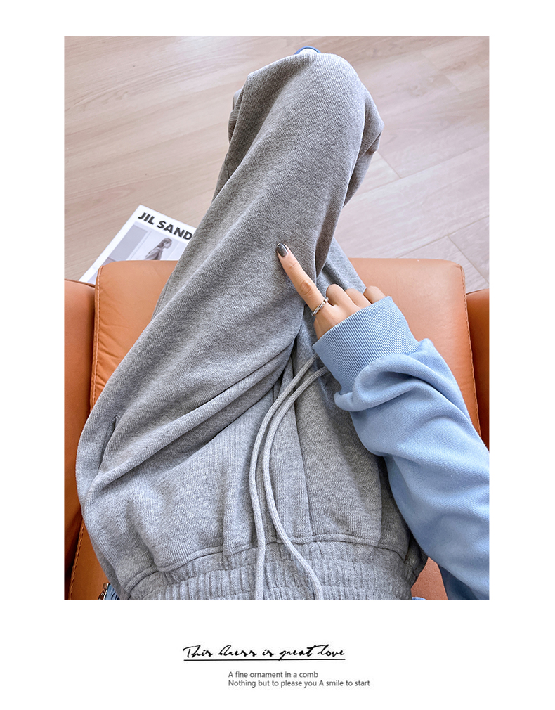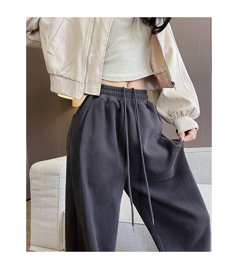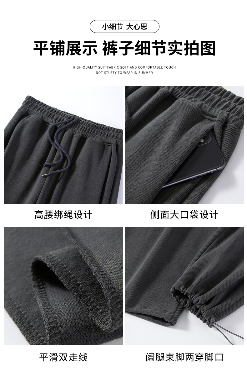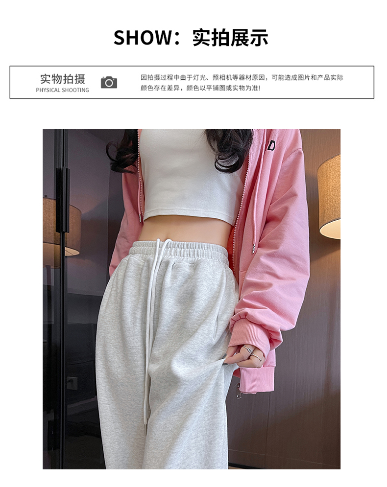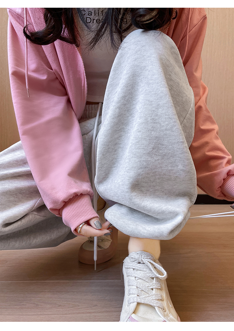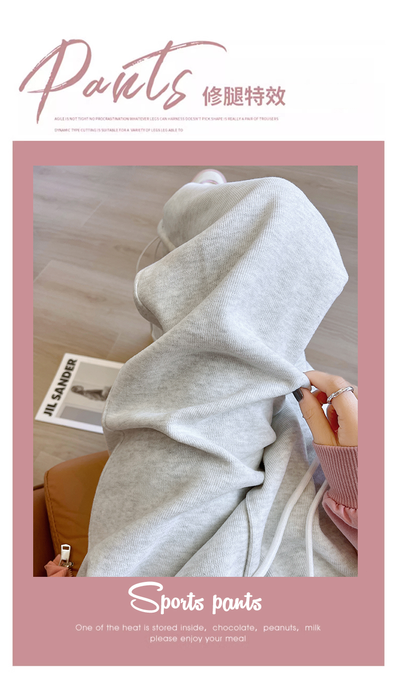 运动裤女春秋2025新款高腰休闲宽松直筒阔腿裤束脚两穿白灰色卫裤