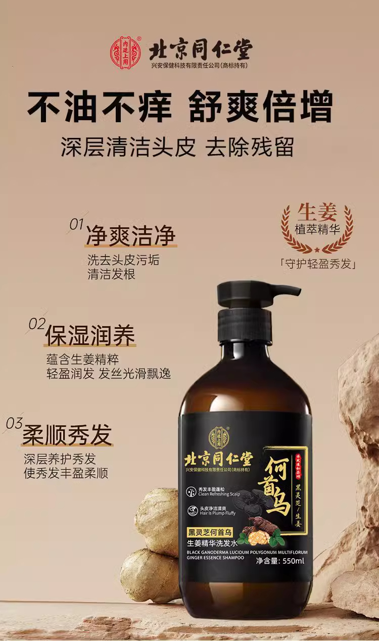 北京同仁堂何首乌生姜防脱生发育发洗发水滋养控油去屑正品洗发露