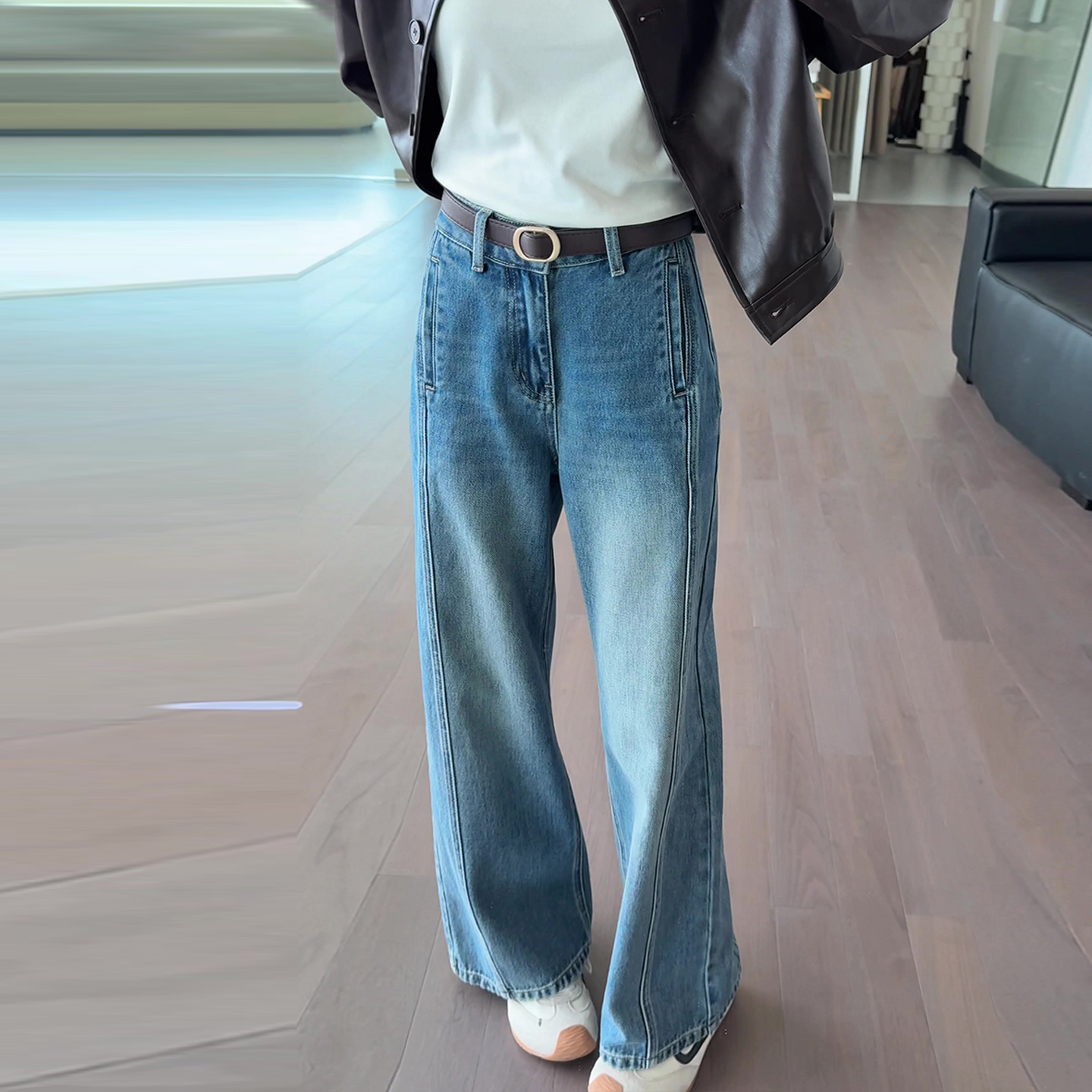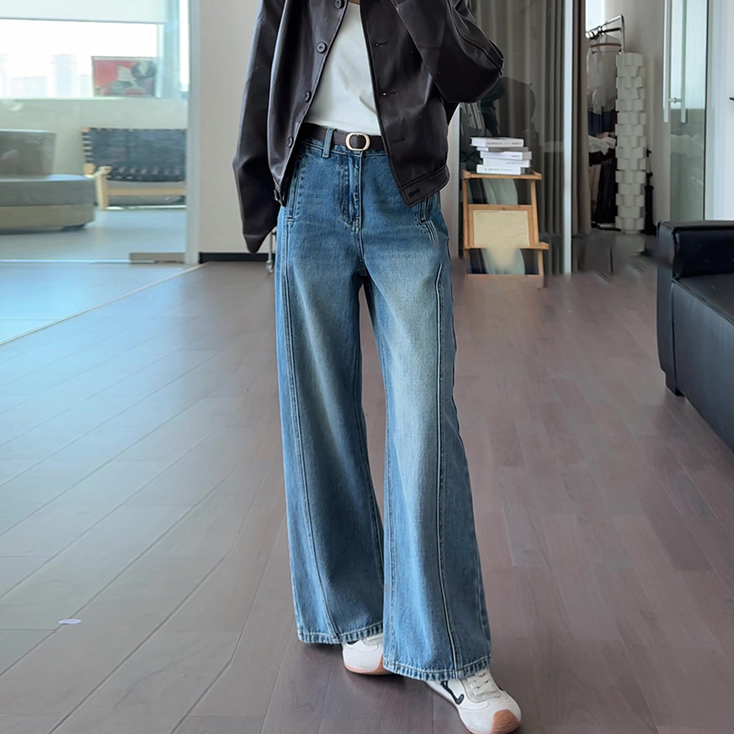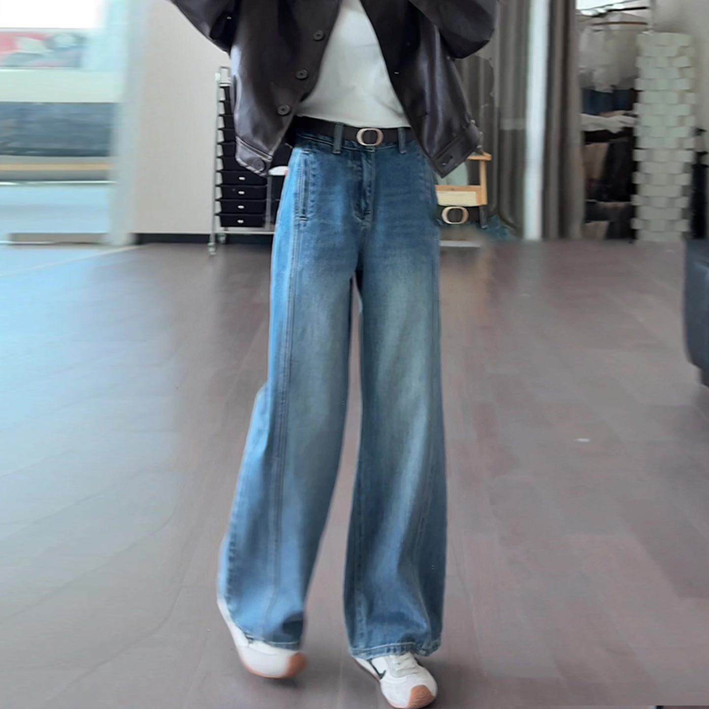 高腰窄版阔腿牛仔裤女2025秋款新款大码胖mm宽松垂感小个子直筒裤