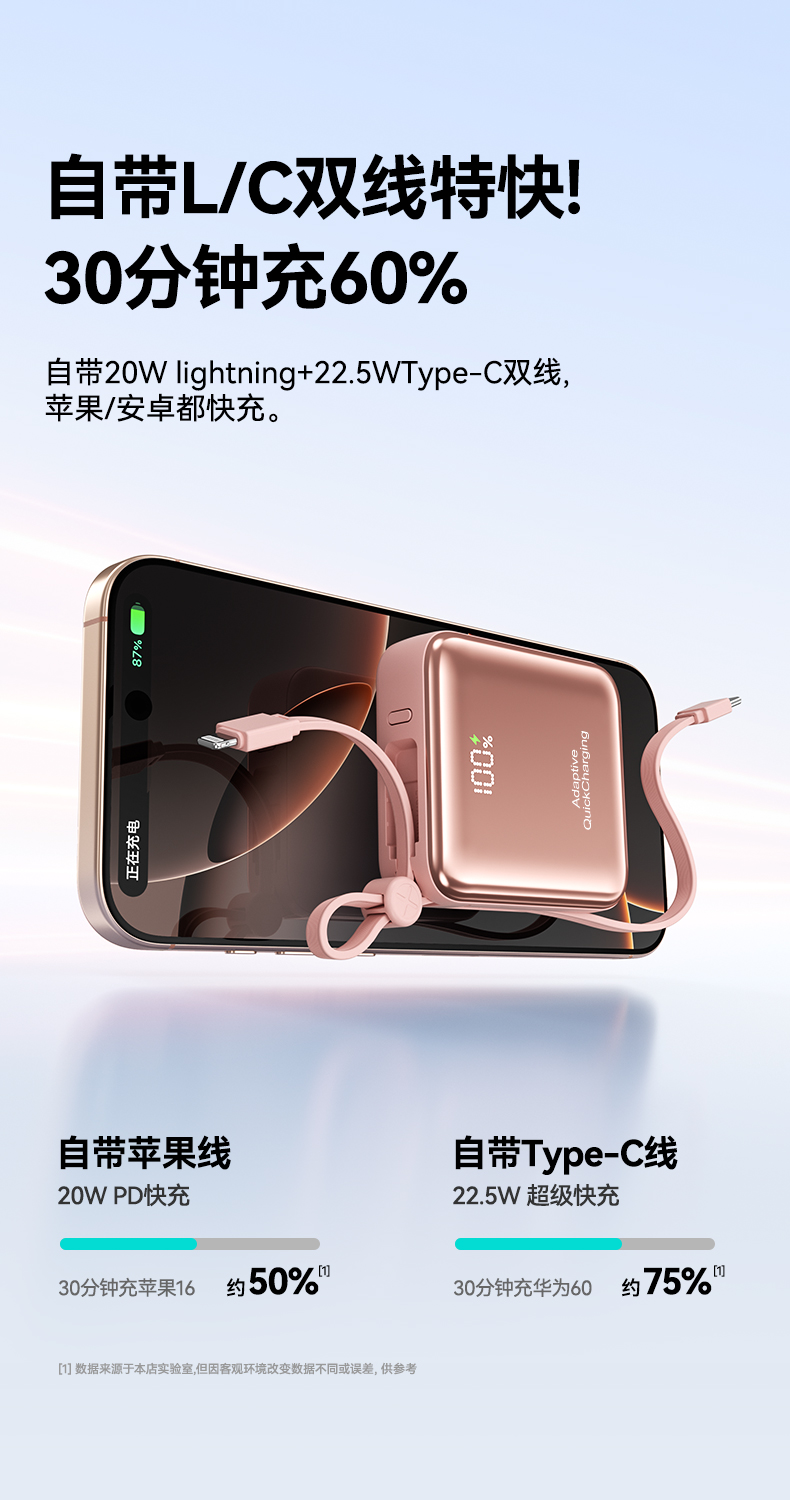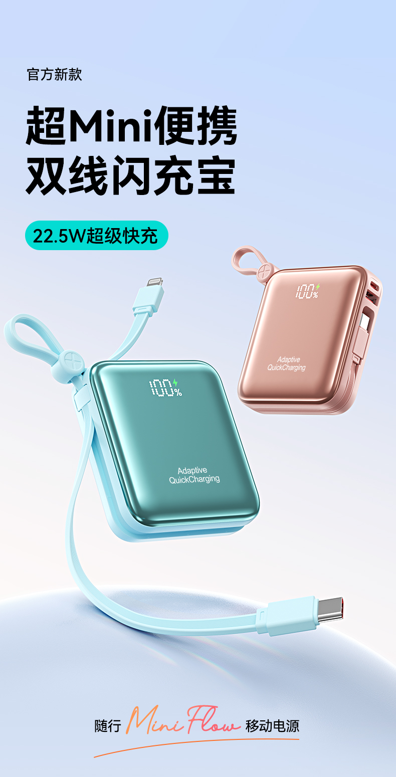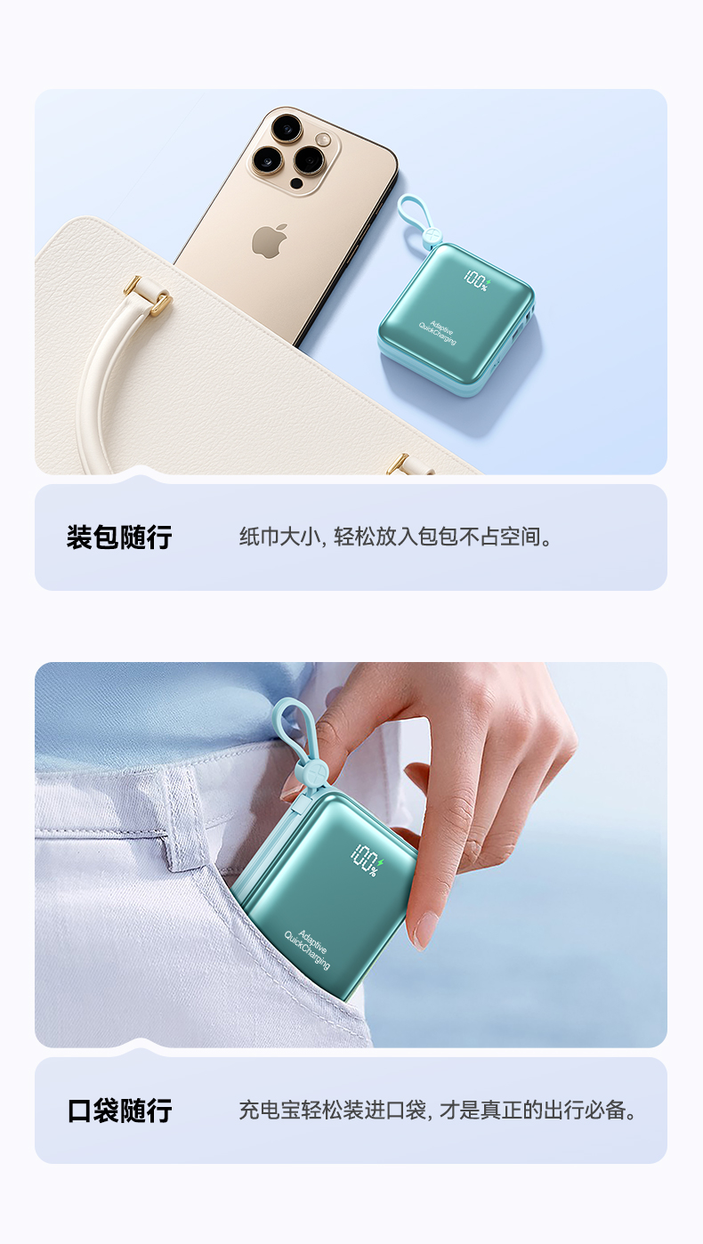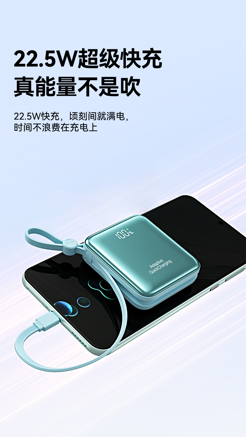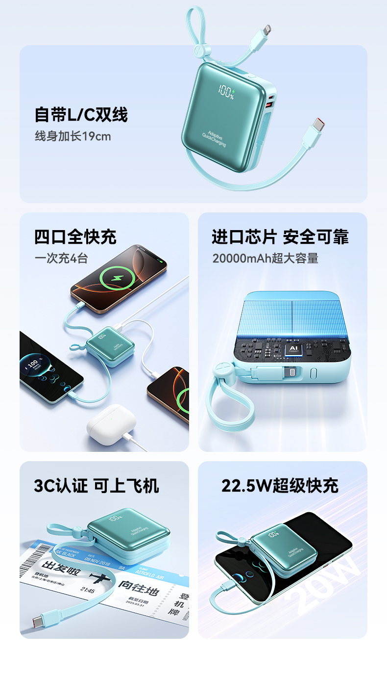 3C认证可带上飞机2025新款充电宝超级快充超大容量20000毫安自带线官方旗舰店正品超薄小巧便携适用小米华为
