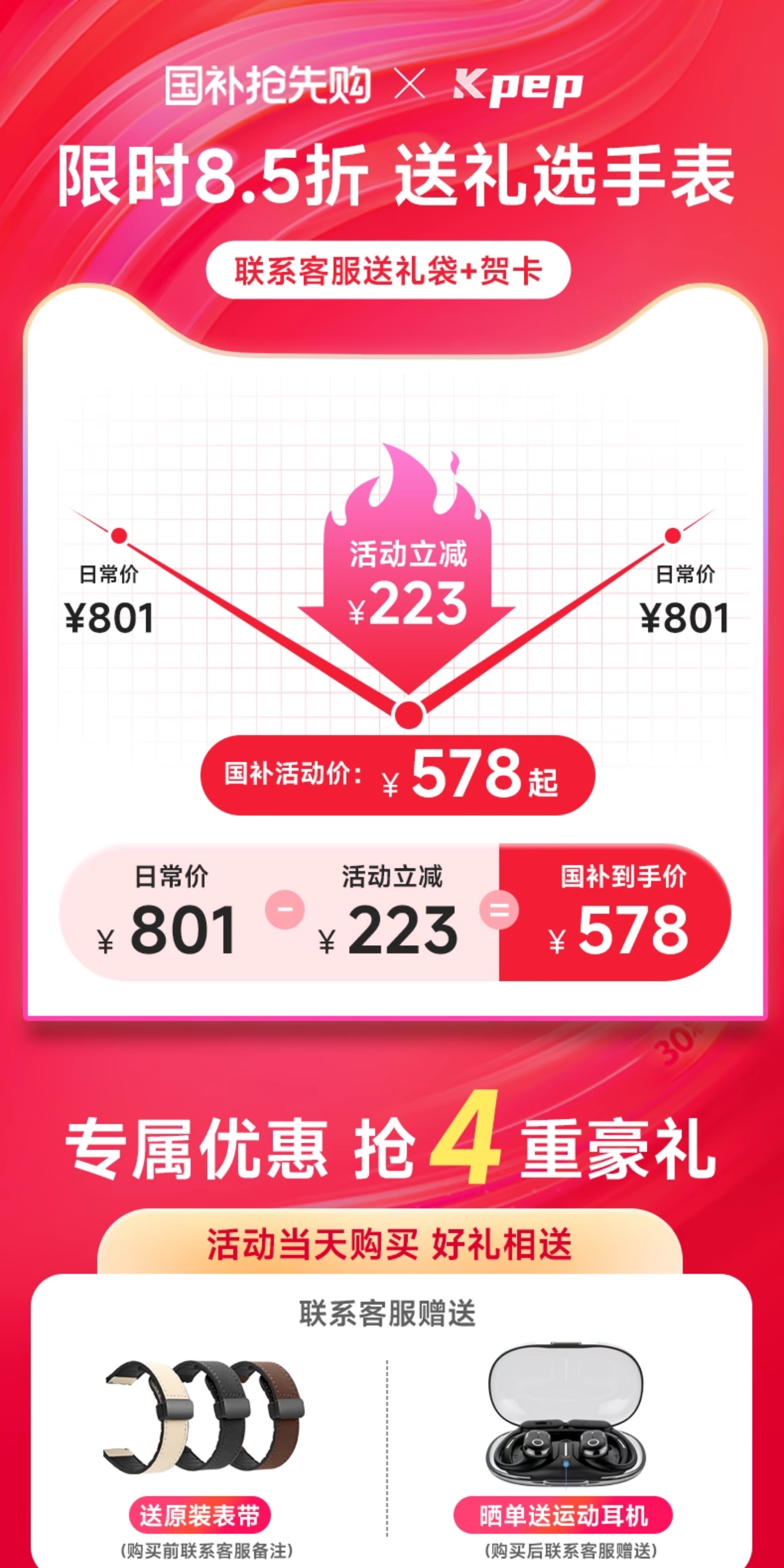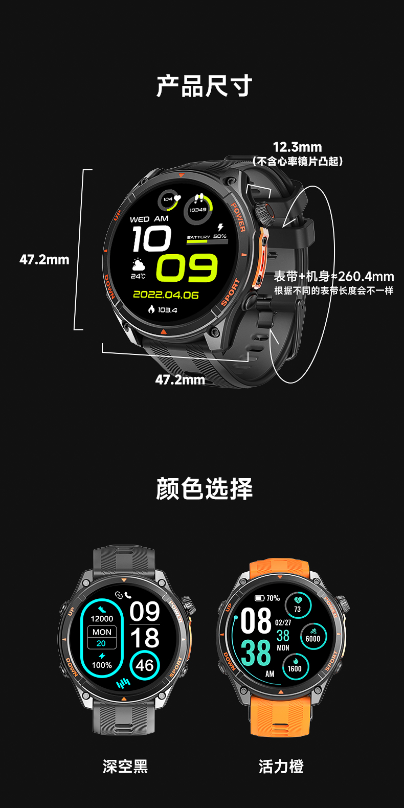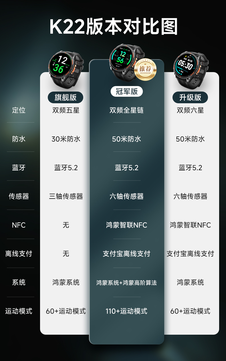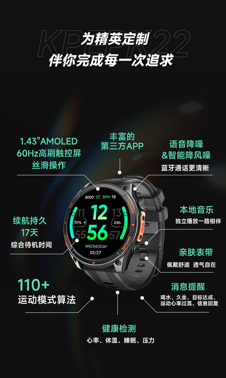 KPEP专业运动手表开源鸿蒙系统双频全星系定位实时运动轨迹5ATM防水本地音乐智能手表
