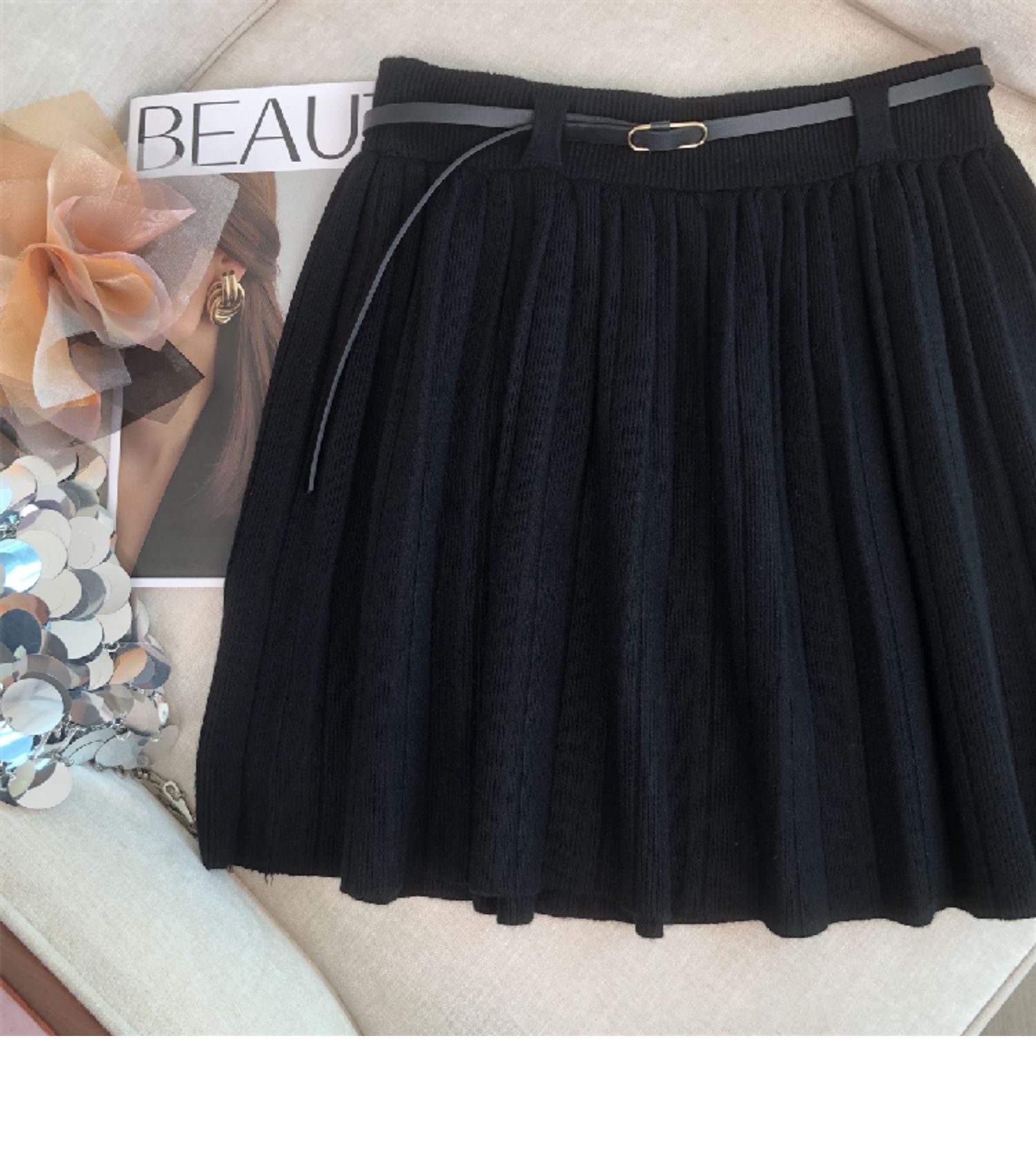广州十三行高货爆款~高腰显瘦针织百褶半身短裙子女秋冬小个子潮