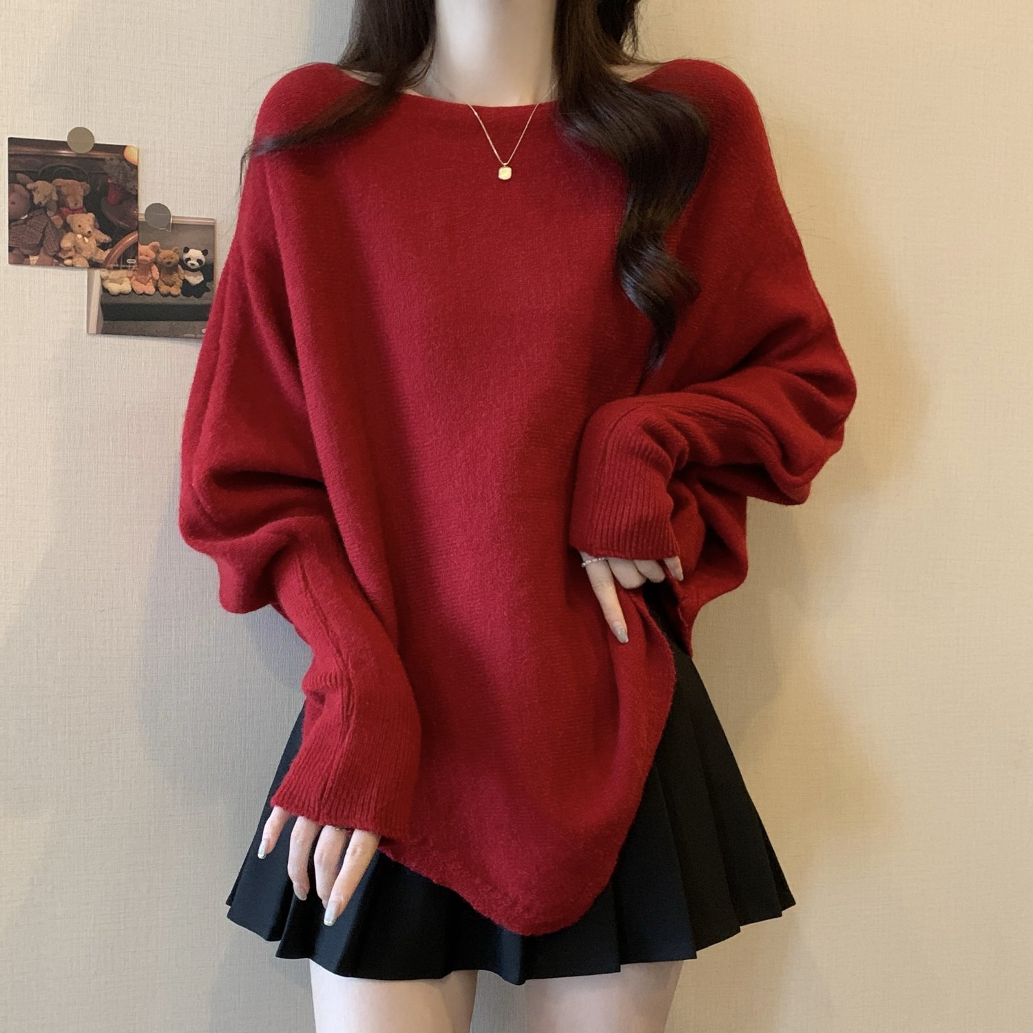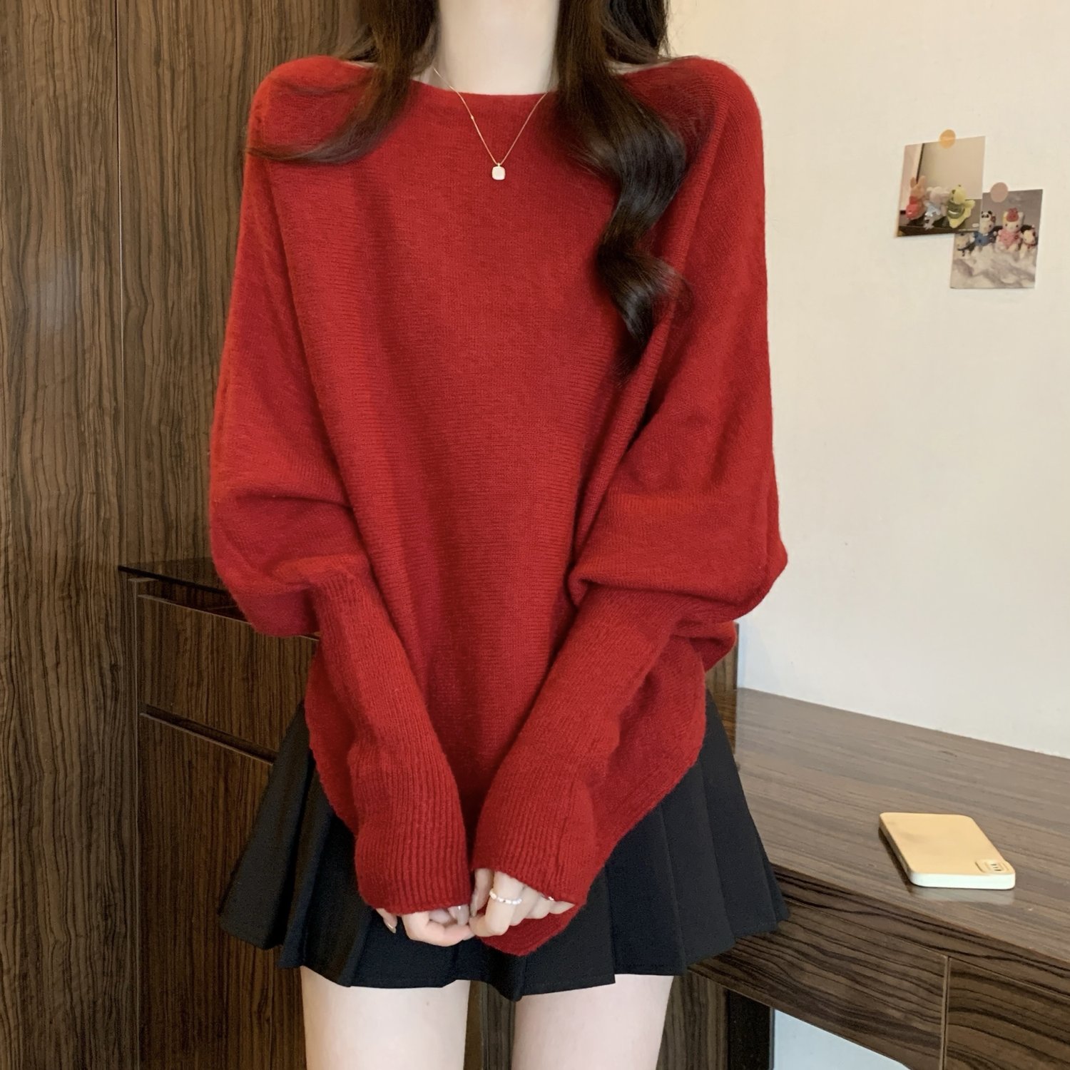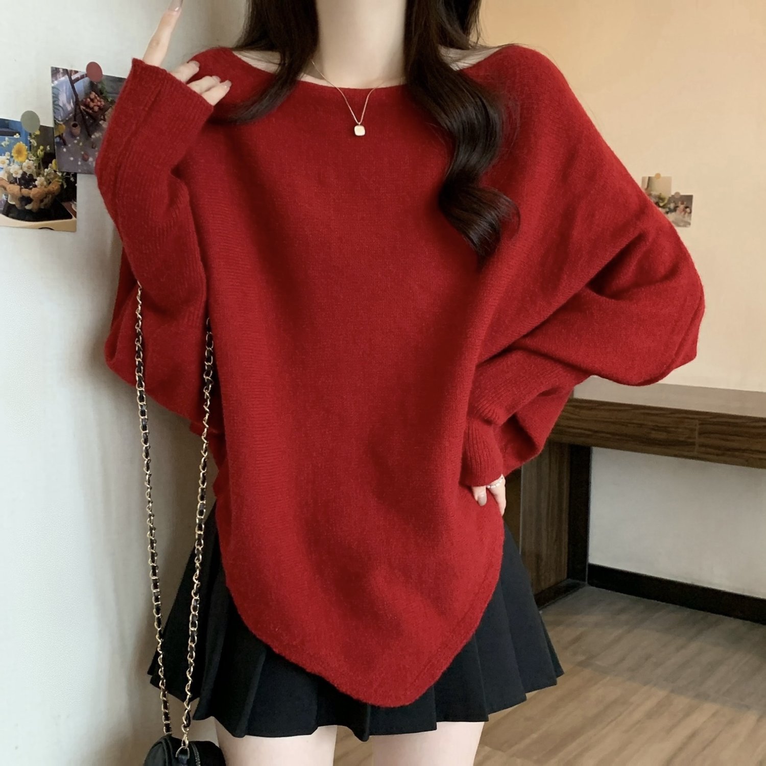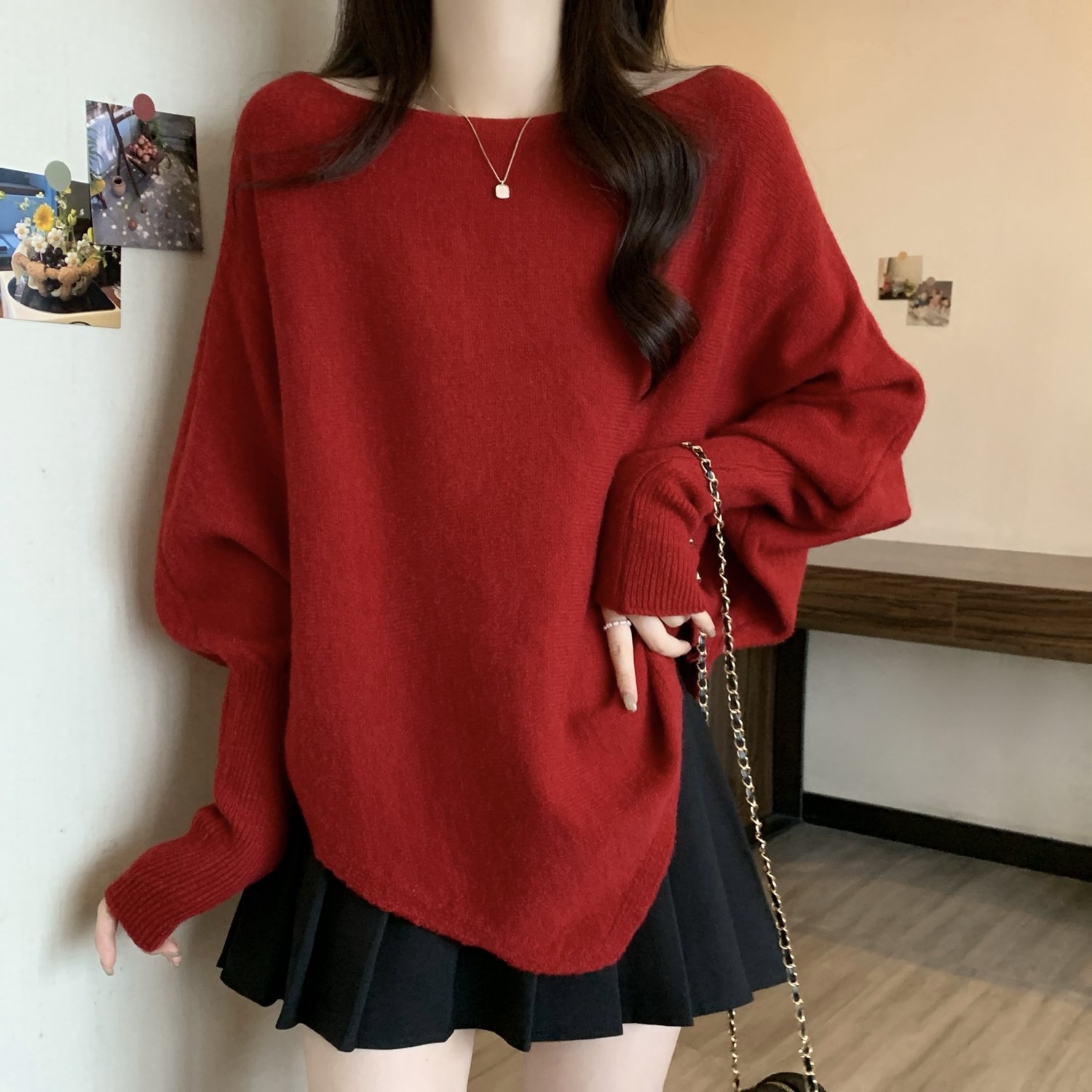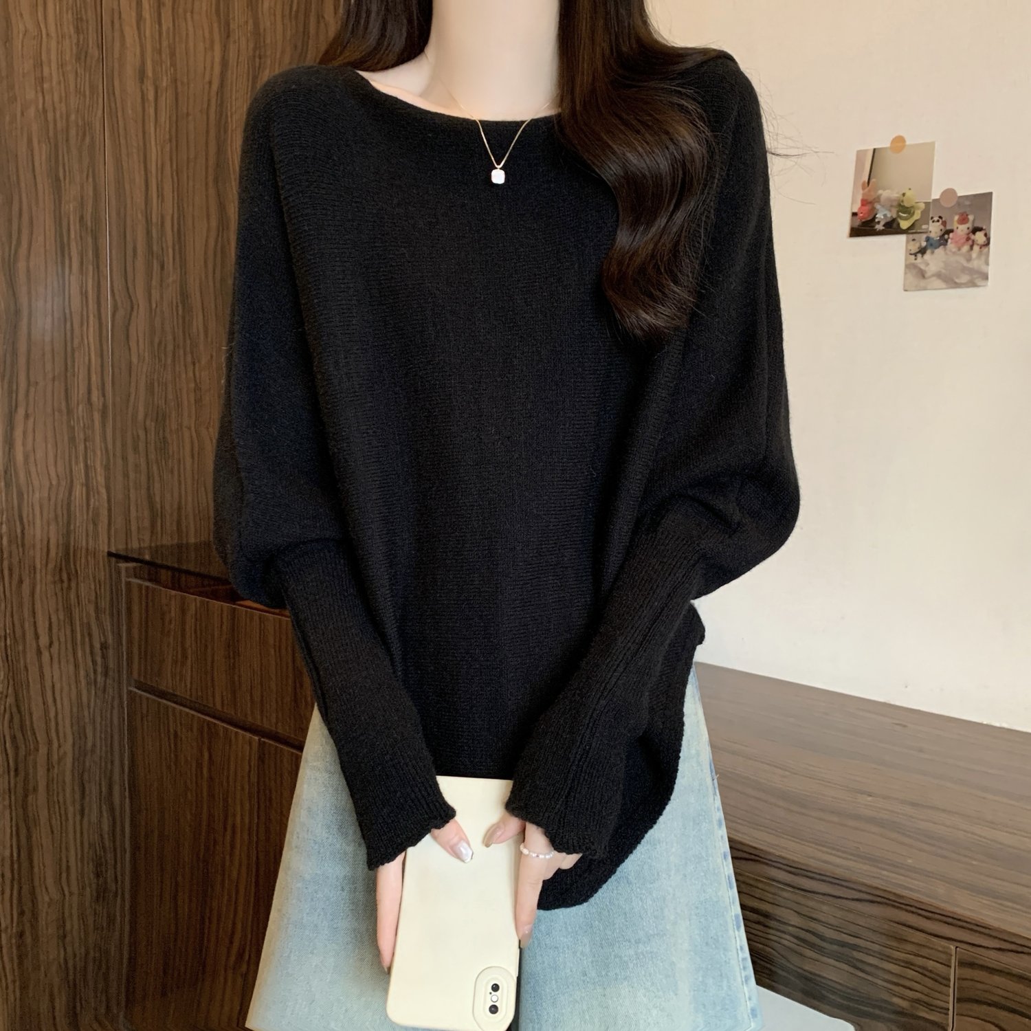 高级感格雷系穿搭灰色针织衫毛衣女秋装大码胖mm不规则蝙蝠袖上衣